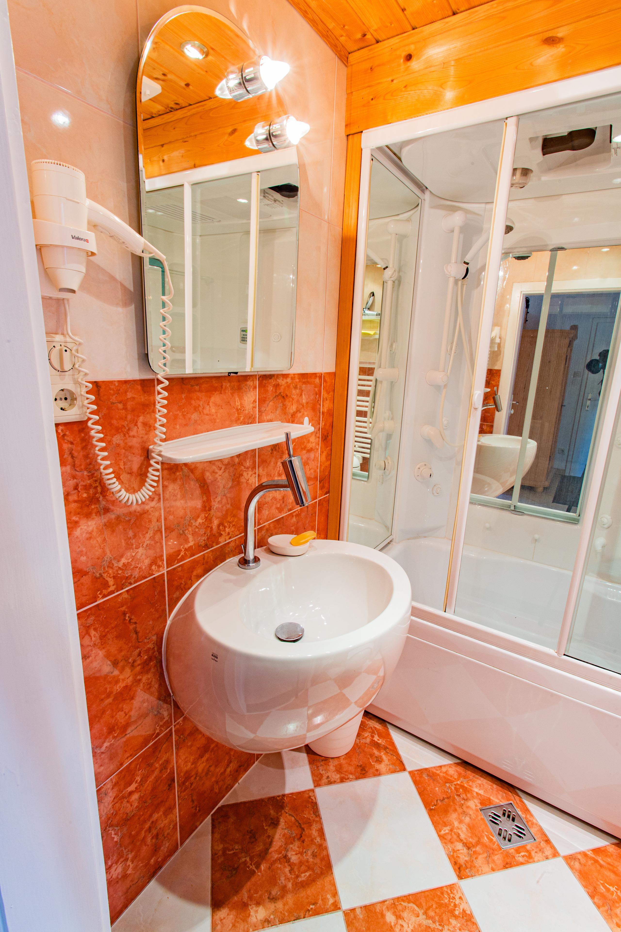 The apartment offers on approx. 45m² an eat-in kitchen with an electrically heated tiled stove, a bedroom with a four-poster bed and a single bed and a bathroom with bathtub and shower (steam shower).