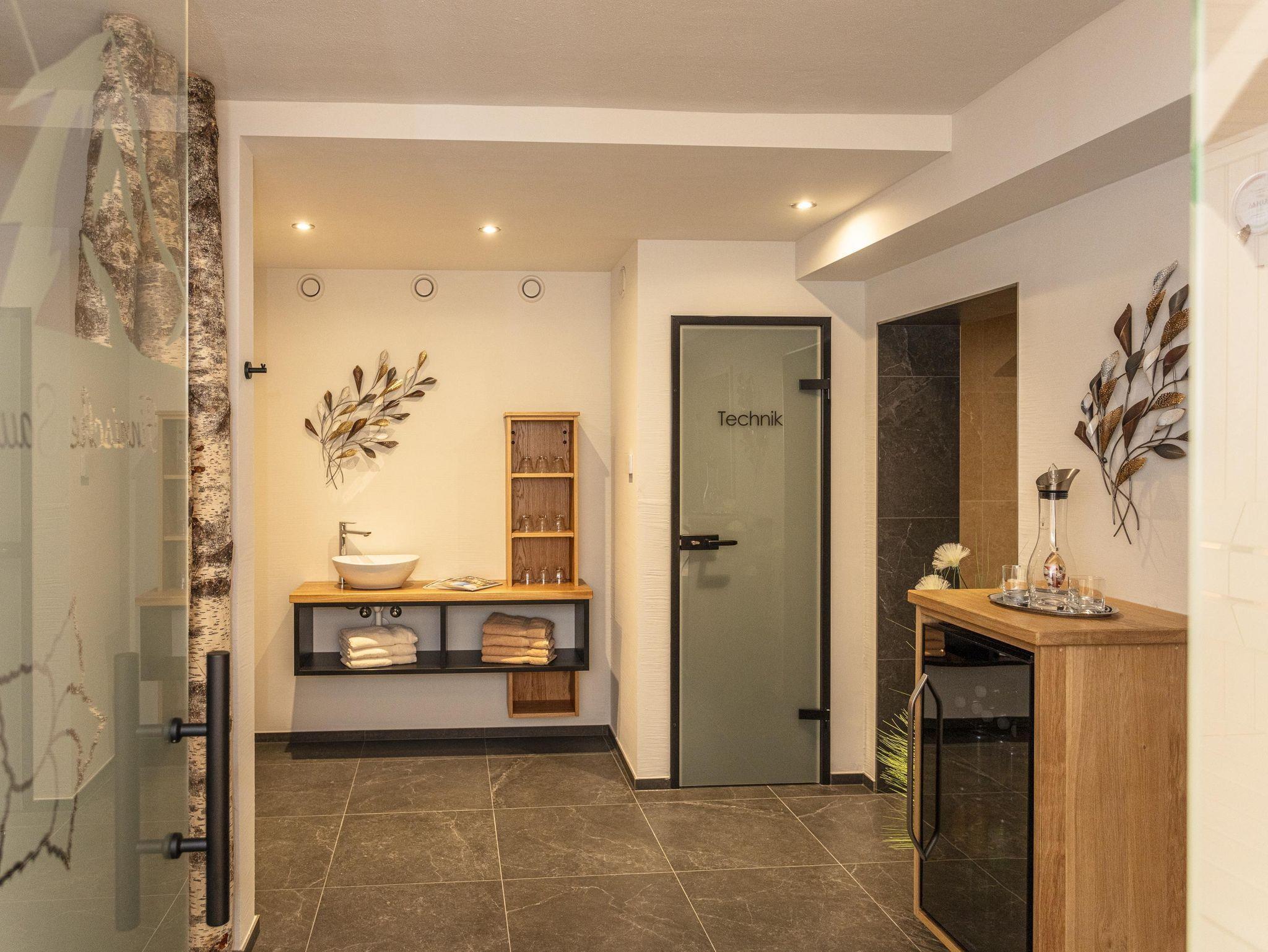 - Unser Wellnessbereich umfasst eine finnische Sauna (90°), eine Biosauna (60°) sowie einen modernen Ruheraum. Die Nutzung ist in der Zimmerbuchung inklusive.