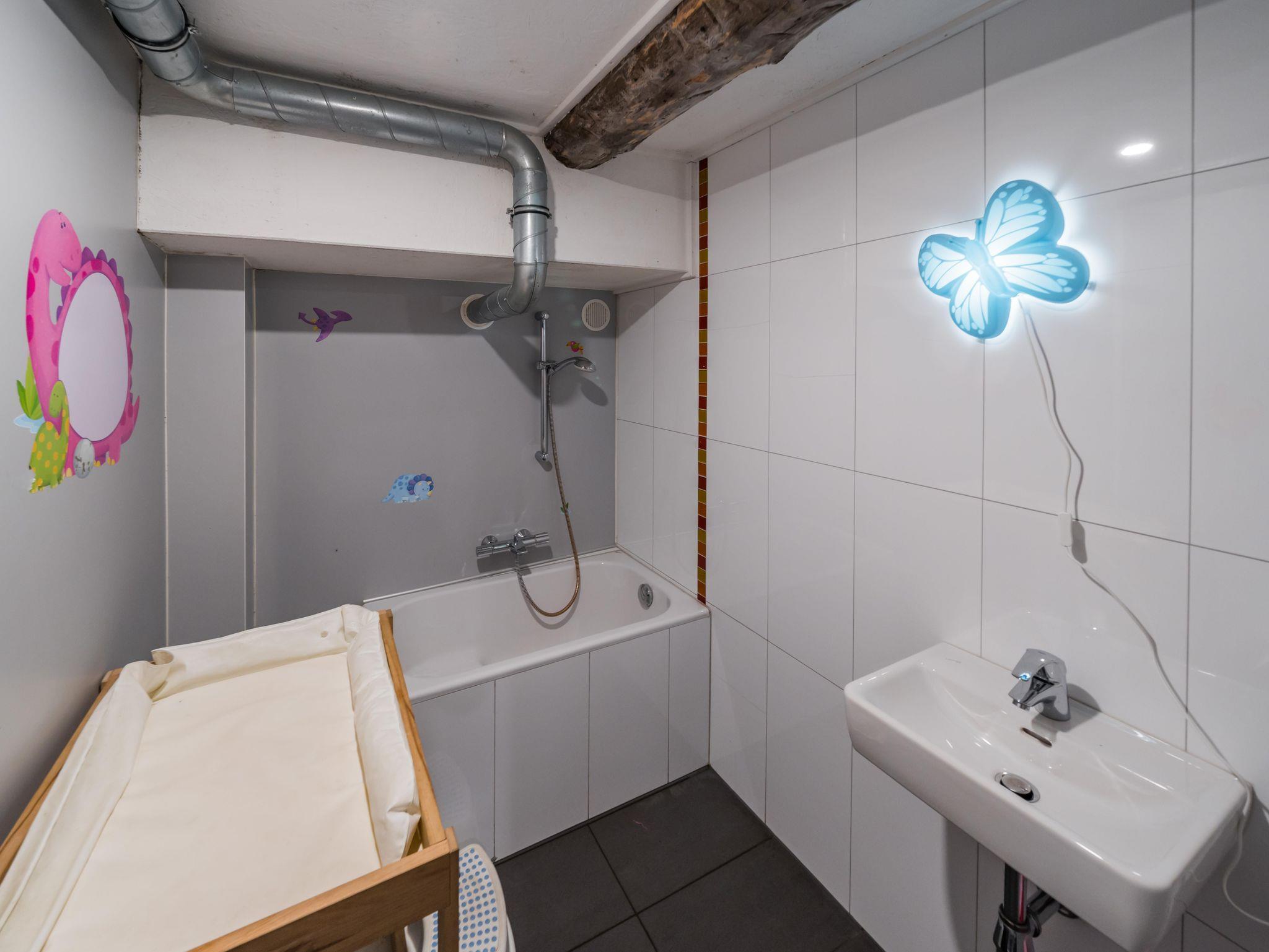Die Küche grenzt an den Wohnbereich und verfügt über eine großzügige Raumaufteilung. Selbstverständlich ist die Küche komplett ausgestattet mit zwei elektrischen Kochplatten , Kochgeschirr, Geschirr für 5 Personen, Spüle und Kühlschrank. Neben der Küche befindet sich das Bad mit Dusche und WC.