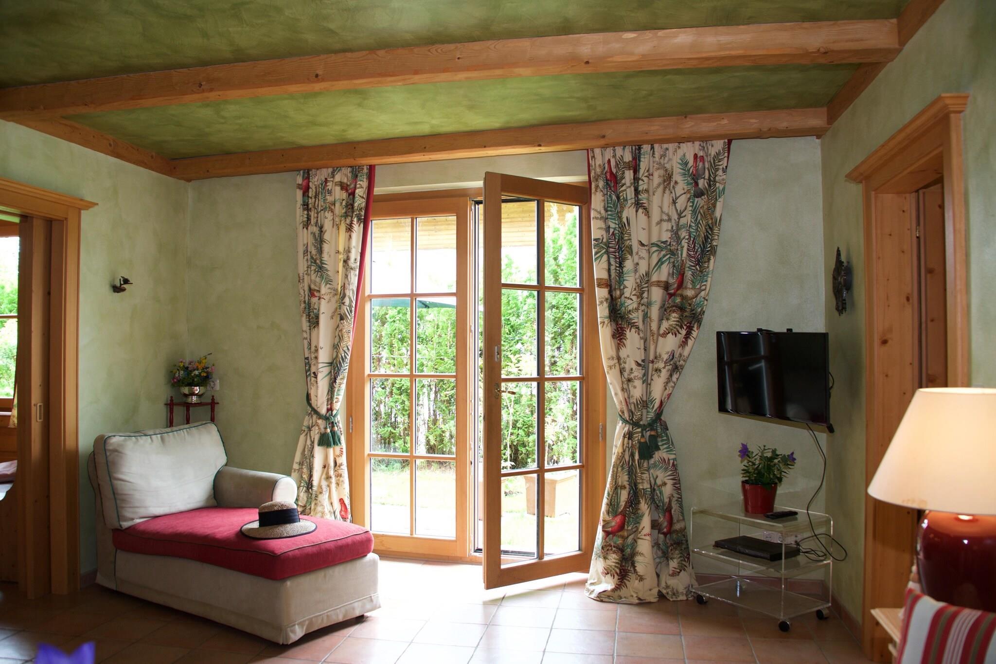 Spend a wonderful and unforgettable holiday in our luxurious flats. The perfect location of the flat house, in Reith bei Kitzbühel, guarantees peace and relaxation on the one hand and favourable connections to Kitzbühel and the surrounding ski areas on the other. Our flats can be rented all year round. Sunbathing terrace surrounded by greenery, close to the forest, Reith bei Kitzbühel, best execution, Our flat house is located near the edge of a forest, in the middle of a beautiful landscape. From our garden you have a fantastic view of the Tyrolean mountains Hahnenkamm, Kitzbüheler Horn, and the Wilder Kaiser. The perfect location, in Reith bei Kitzbühel, guarantees peace and relaxation on the one hand and a favourable connection to Kitzbühel and the surrounding ski areas on the other. Flat 2 is 115 m² in size and is suitable for 5 to 6 people. It has 2 beautiful bedrooms. A pull-out double sofa bed provides space for a total of 6 people. The flat also offers a large living room with a fully equipped kitchen and 2 bathrooms. There is also an in-house sauna, washing machine and tumble dryer. (Sauna for Top 2 and Top 3 shared use) PARKING: the parking place for this apartment is opposite the house (see house rules) The tenants have free use of the flat terrace and the terrace furniture. The terrace offers a wonderful view of the Kitzbühel Alps and the famous Kitzbüheler Horn. In the immediate vicinity are: the mountain railway (4 km), leisure facilities such as outdoor swimming pools (6 km), the Schwarzsee lake resort (4 km), a golf course (3 km), a riding stable and a tennis court (1 km) as well as supermarkets and restaurants (1.5 km). Due to its favourable location, the diversity of the landscape and the originally preserved village character, the small village of Reith with its 1,717 inhabitants is a recognised neighbour to the town of Kitzbühel and a popular destination for guests looking for peace and relaxation, but who do not want to miss out on the wide range of infrastructural facilities in the top region of Kitzbühel. In summer, the Schwarzsee and Gieringer Weiher lakes, the "Kitzbühel-Schwarzsee-Reith" golf course, hiking and biking opportunities in Bichlach and much more are a valuable addition. It is therefore also ideal for golfers and bikers. Well-kept restaurants offer Tyrolean cuisine and international specialities and are a popular attraction for guests from the whole region. We look forward to welcoming you.