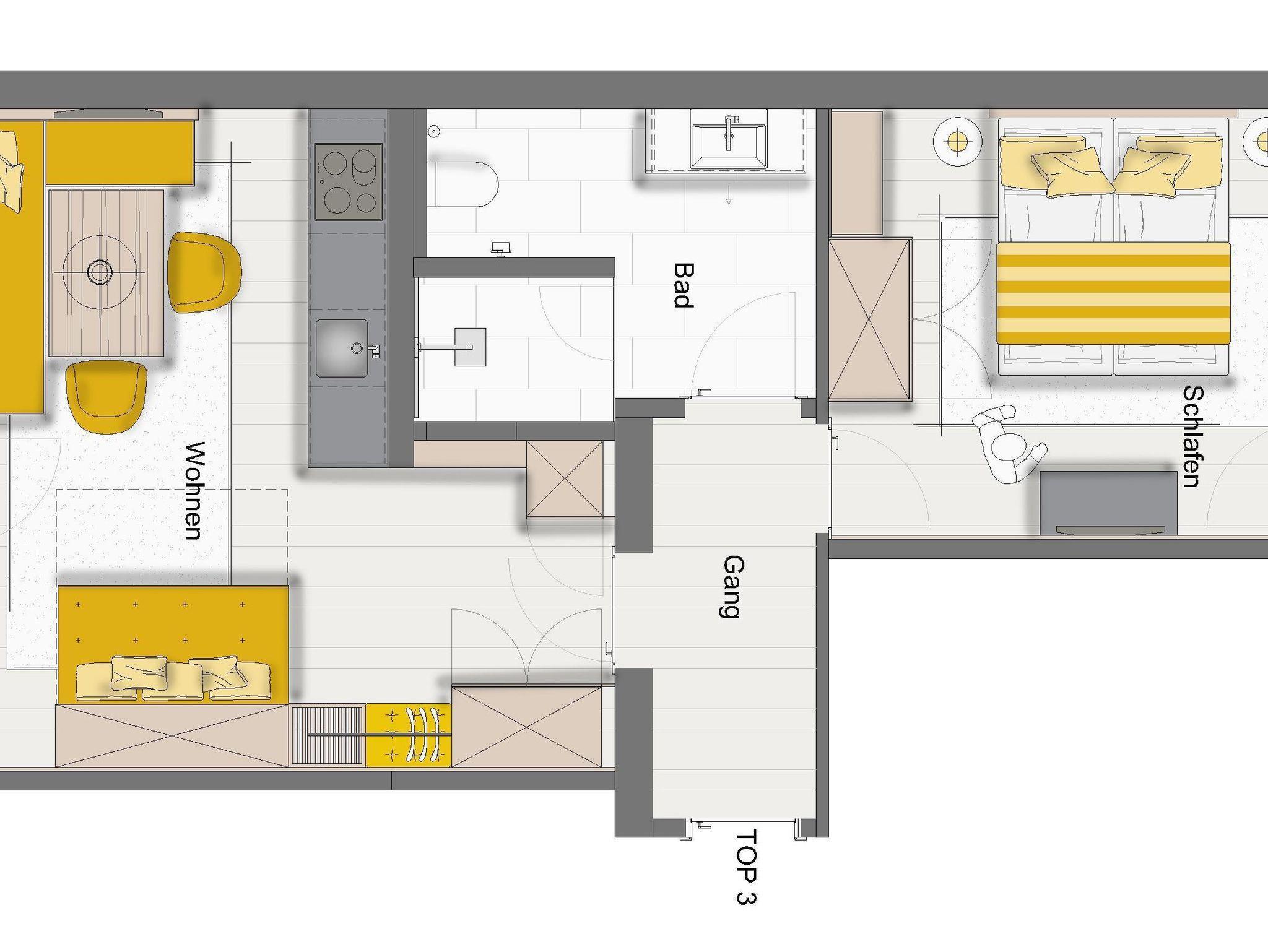 Die südseitige Ferienwohnung Rofanspitz im das Luggi wurde im Herbst 2021 komplett renoviert. Sie befindet sich im zweiten Stock (mit Aufzug) und besteht aus einem Wohnschlafraum mit Küche, einem Doppelzimmer, Dusche/WC und ist mit Kabel-TV und Balkon ausgestattet. Sie ist ca. 42m² groß und bietet Platz für bis zu vier Personen.