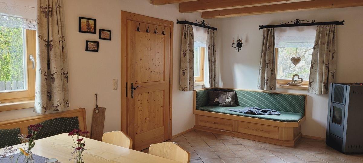 Im Erdgeschoss lädt der gemütliche Wohnraum mit Kaminofen zu behaglichen Abenden ein. Die Küche ist mit Ceranfeld, Backofen, Kühlschrank mit Gefrierfach, Kaffeemaschine und Mikrowelle ausgestattet und bietet alles für die Selbstversorgung.