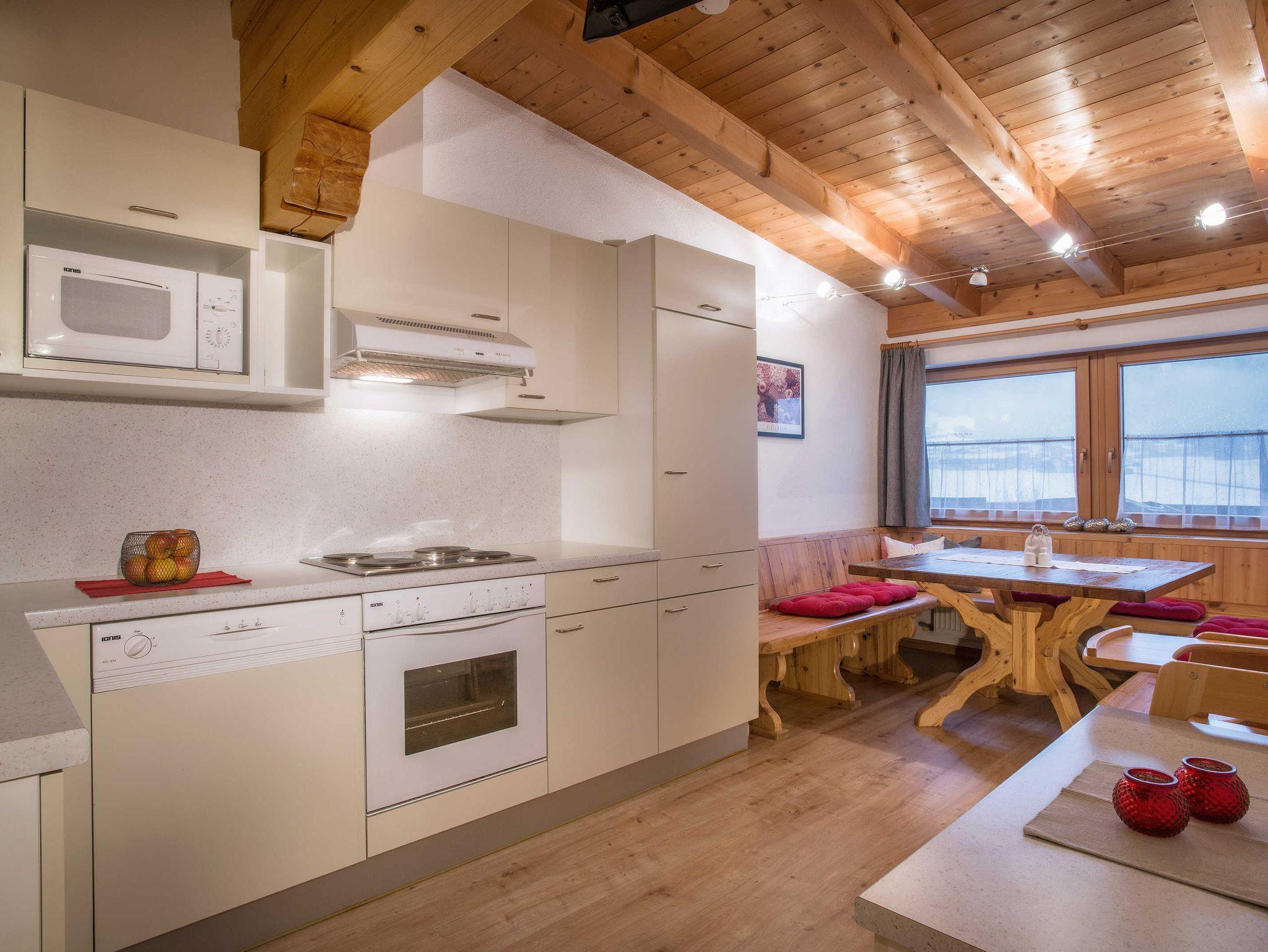 • vollausgestattete Küche mit Sitzecke und Fernseher mit SAT-TV sowie Backofen, Mikrowelle, Wasserkocher, Dunstabzug, Elektroherd, Geschirrausstattung, Geschirrspülmaschine, Kaffeemaschine, Kühlschrank, Tisch-/Küchenwäsche