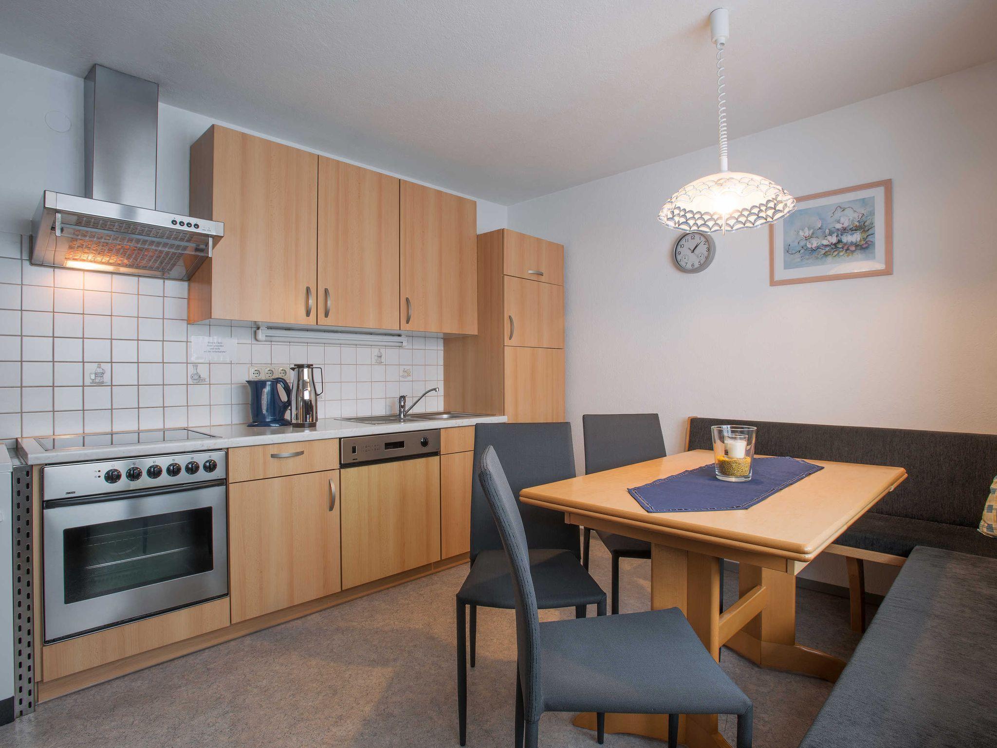• vollausgestattete Küche mit Backofen, Mikrowelle, Dunstabzug, Elektroherd, Geschirrausstattung, Geschirrspülmaschine, Kaffeemaschine (Filter), Kühlschrank, Tisch-/Küchenwäche sowie Esstisch