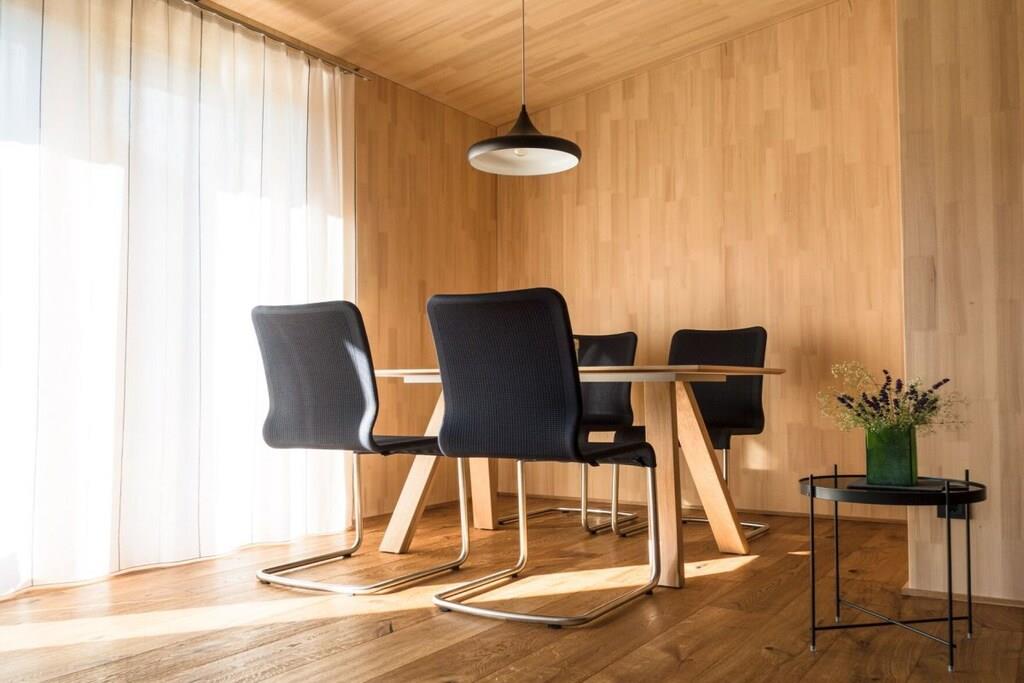 Kælderetage: (Køkken(mikrobølgeovn), soveværelse(, , dobbeltseng, varme), soveværelse(, , dobbeltseng, varme), Børneværelse(, køjeseng, varme), badeværelse(, toilet, bruser, bruser, håndvask, varme)) , , , entre(, varme), Stue(, Fjernsyn, varme), guest toilet(, toilet, håndvask, varme), carport, Internetadgang, Internetadgang, skistøvlevarmere, terrasse(, havemøbler, solstole), terrasse(, havemøbler, solstole), tørreskab