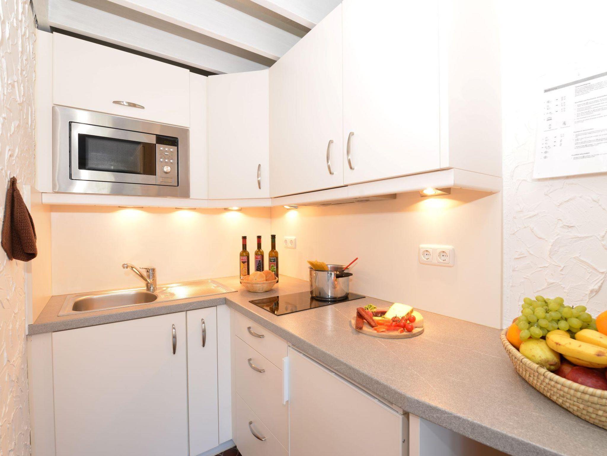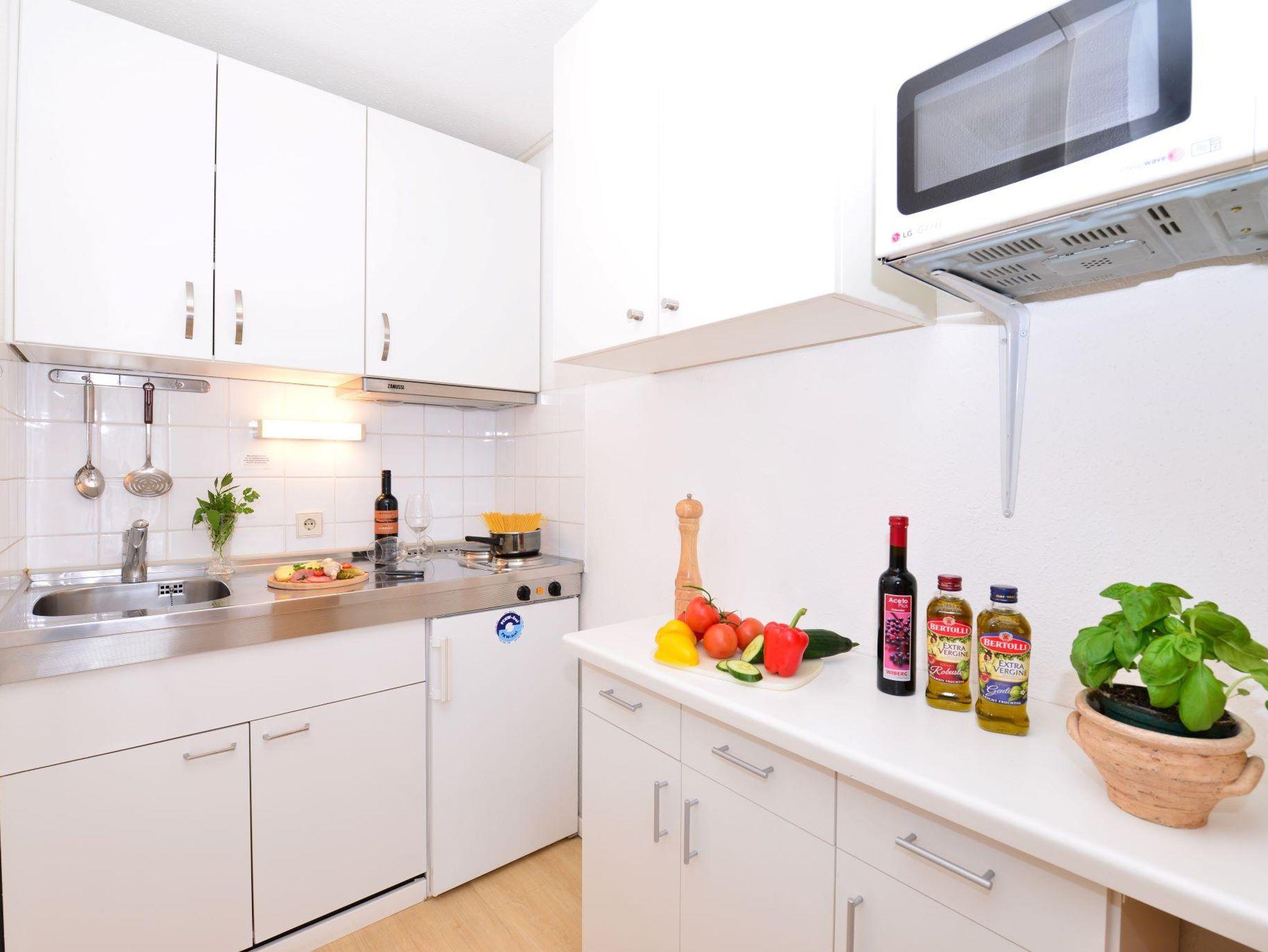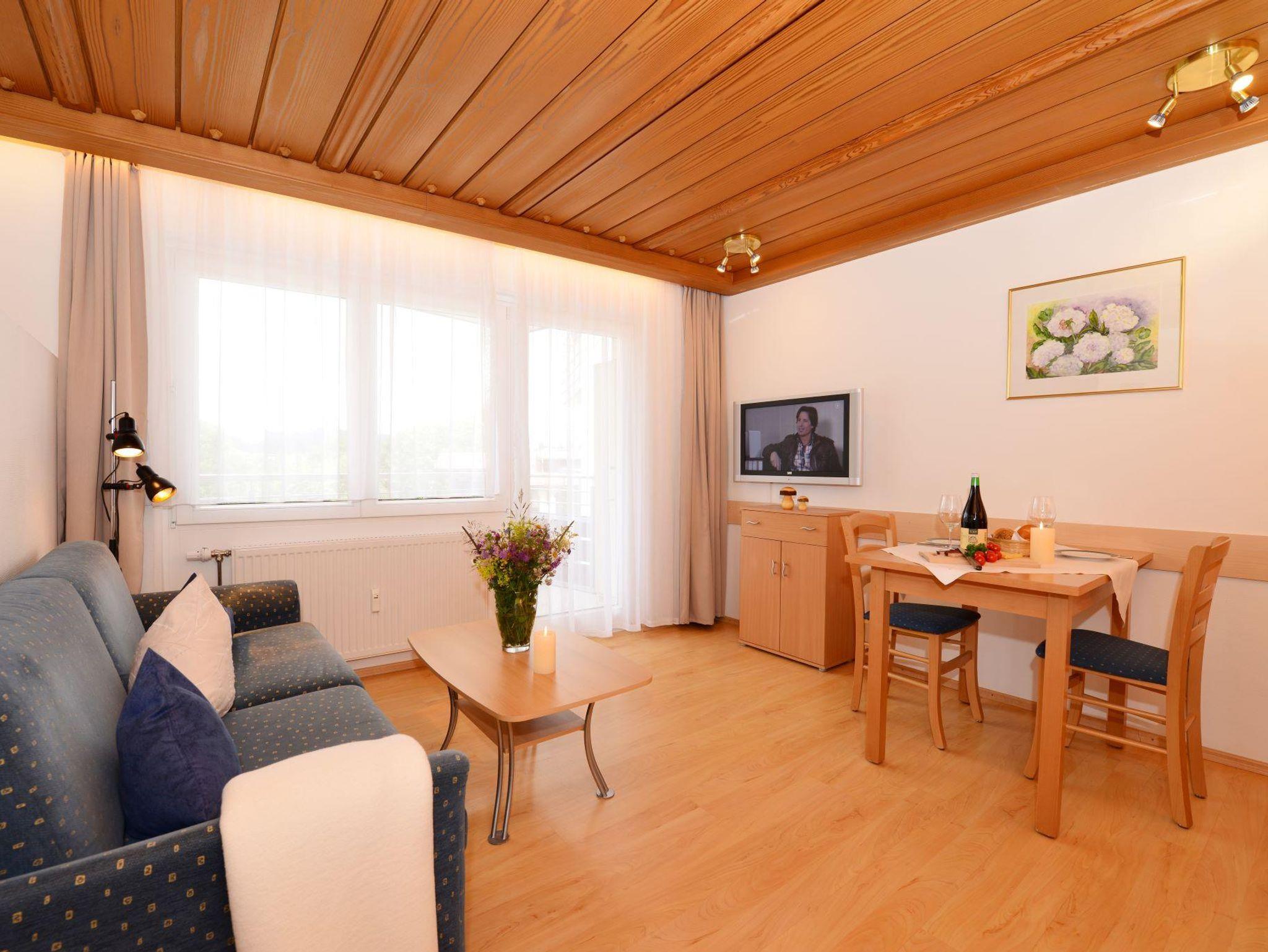 Wohnlich eingerichtetes 2-Raum Appartement für 2-4 Personen mit Doppelbett im Schlafzimmer und einer weiteren Schlafmöglichkeit für 2 Personen im Wohnbereich in Form von Schrankbett oder Schlafsofa. Das Appartement verfügt über eine Kochnische, einen privaten Balkon, ein Bad mit Dusche oder Wanne und Flatscreen-TV. Von Mai bis November ist das Bergbahnticket inklusive.