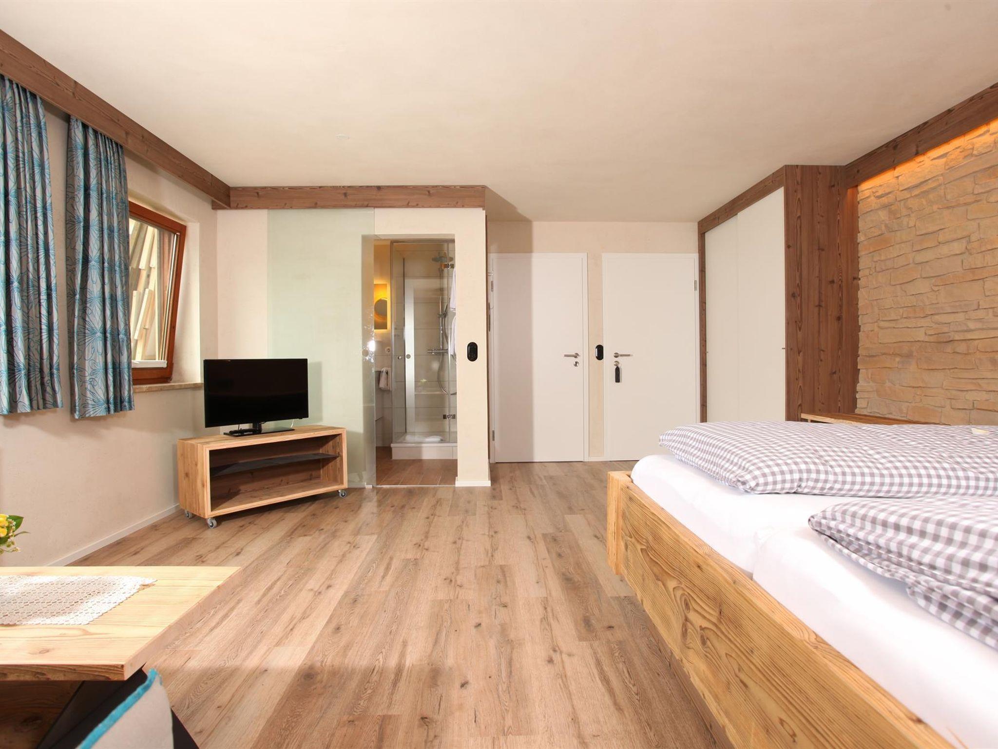 Doppelzimmer „Ifenblick“ für bis max. 4 Personen.Das Ifenblick verbindet die Tradition der Alpen mit modernem Design!Ein hochwertiges Doppelbett vom heimischen Schreiner,gemütliche Schlafcouch für 2 Personen,Flatscreen SAT-TV,WLAN,Safe,Radio,Wasserkocher, Kühlschrank,Designerlampen,Designvinylboden,Südwestterrasse mit beeindruckendem Bergblick auf die Kleinwalsertaler Alpenwelt,Bad mit Dusche+Regendusche/WC mit Hotelfön, Größe 34 m²- mit Verbindungstüre optional für Familien zubuchbar.