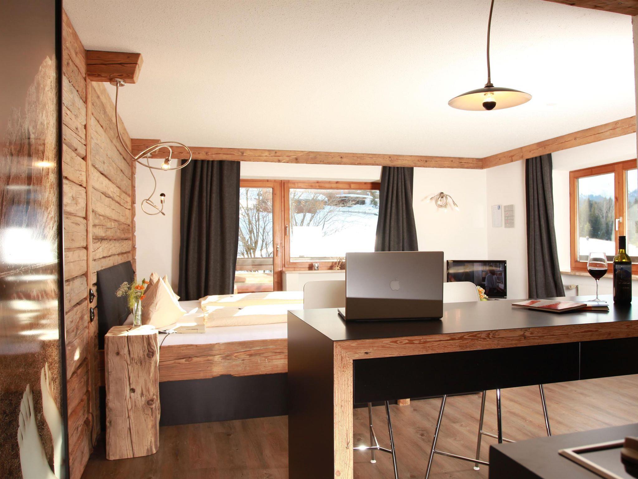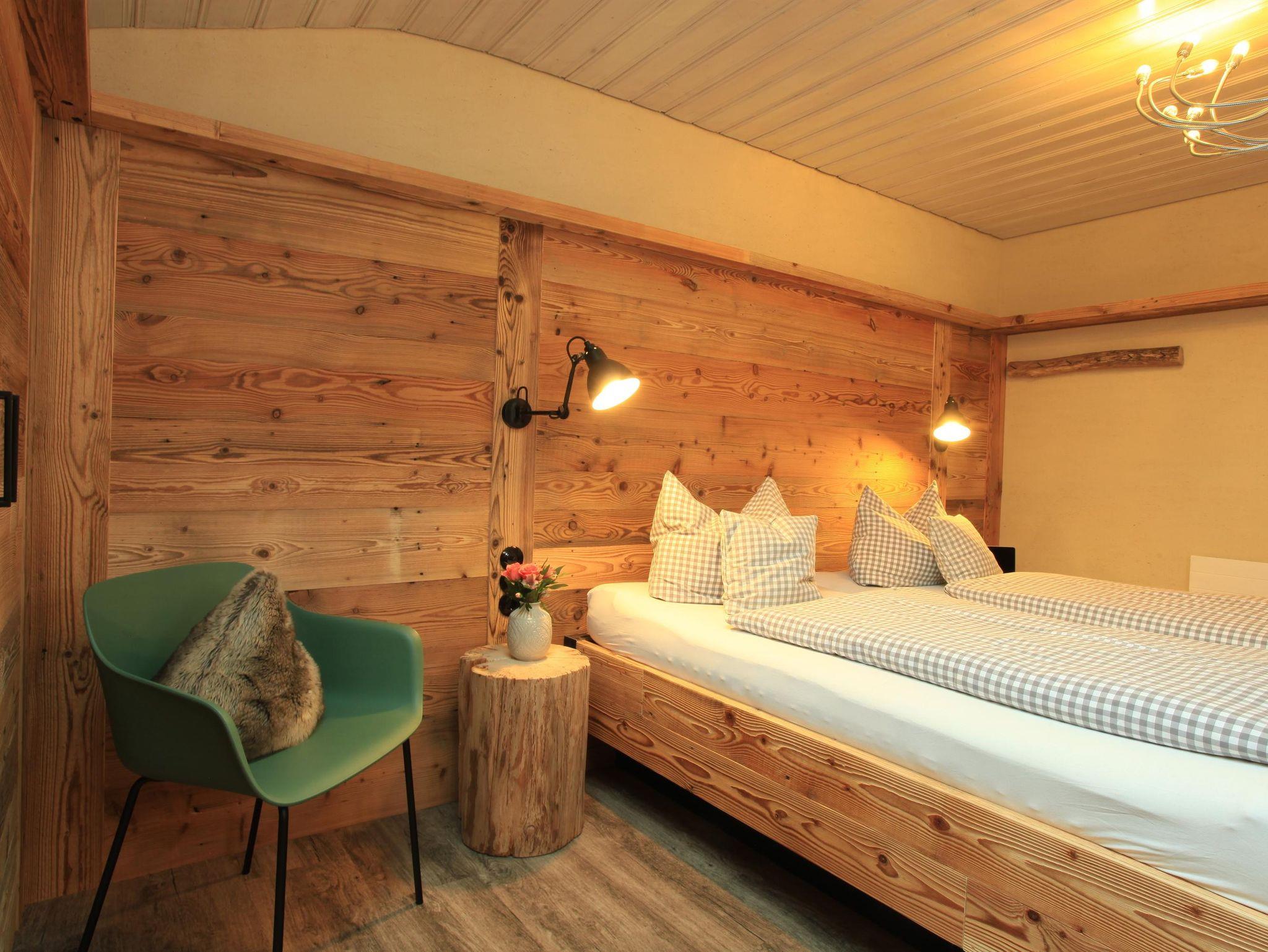 Doppelzimmer „Ifenblick“ für bis max. 3 Personen.Das Ifenblick verbindet die Tradition der Alpen mit modernem Design!Ein hochwertiges Doppelbett vom heimischen Schreiner,gemütliche Sitzlounge,Flatscreen SAT-TV,W-LAN,Safe,Radiowecker, Wasserkocher,Kühlschrank,Designerlampen,Designvinylboden,Südwestterrasse mit beeindruckendem Bergblick auf die Kleinwalsertaler Alpenwelt,Bad mit Dusche + Regendusche/WC mit Hotelfön, Größe 30 m² - mit Verbindungstüre optional für Familien zubuchbar.