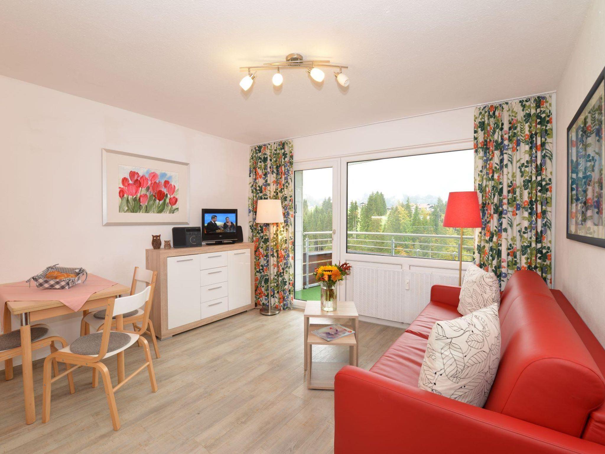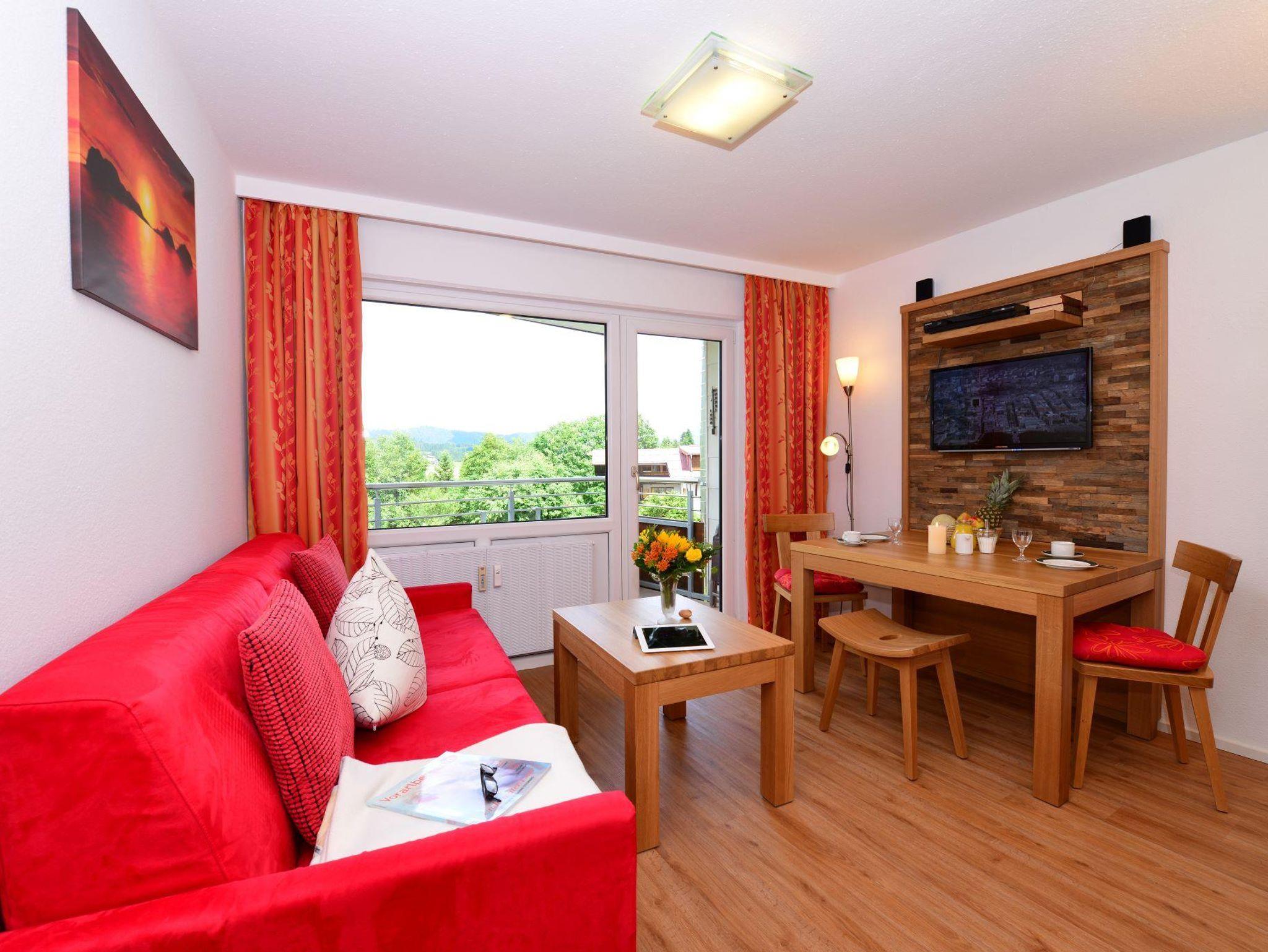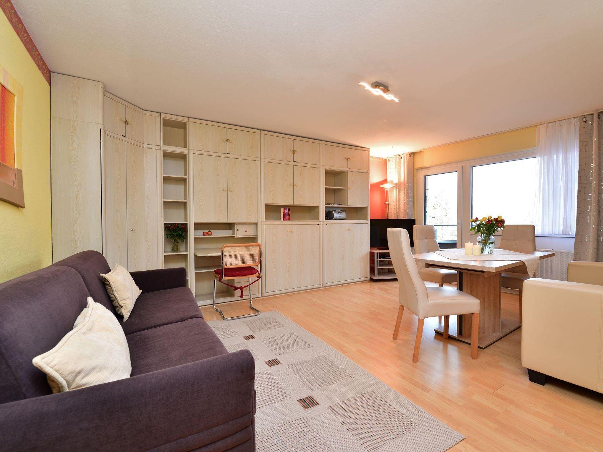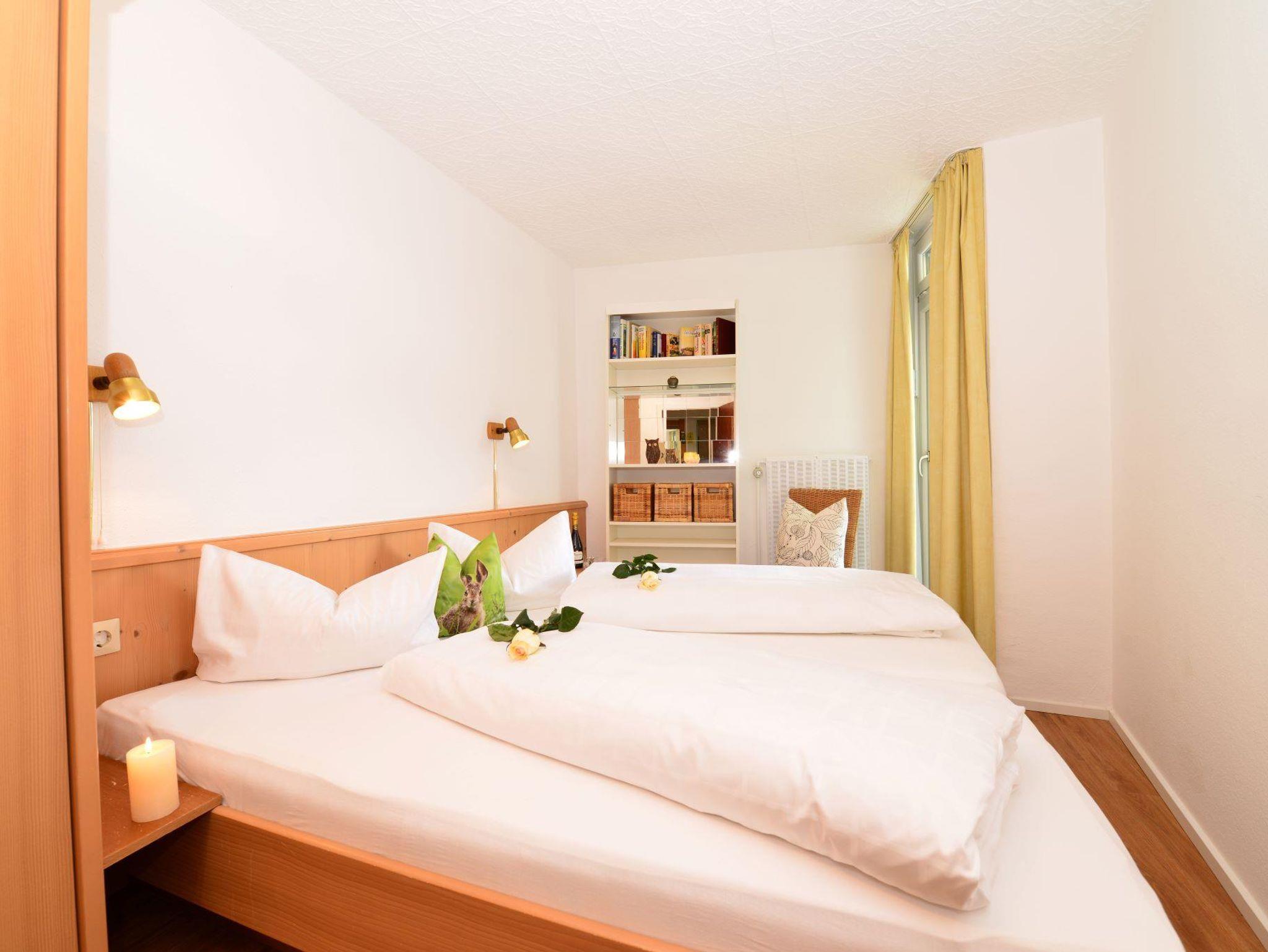 Komfortables 2-Raum Appartement für 2-4 Personen mit Doppelbett im Schlafzimmer und einer weiteren Schlafmöglichkeit für 2 Personen im Wohnbereich in Form von Schrankbett oder Schlafsofa. Das Appartement verfügt über eine Kochnische, einen privaten Balkon, ein Bad mit Dusche oder Wanne und Flatscreen-TV. Von Mai bis November ist das Bergbahnticket inklusive.