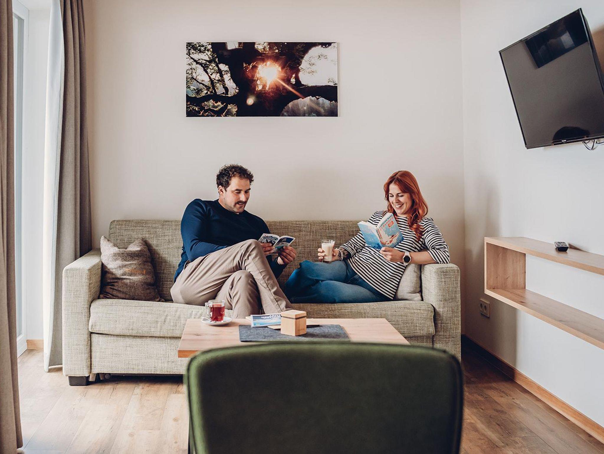 • Wohnzimmer mit ausziehbarer Schlafcouch und Sat-TV