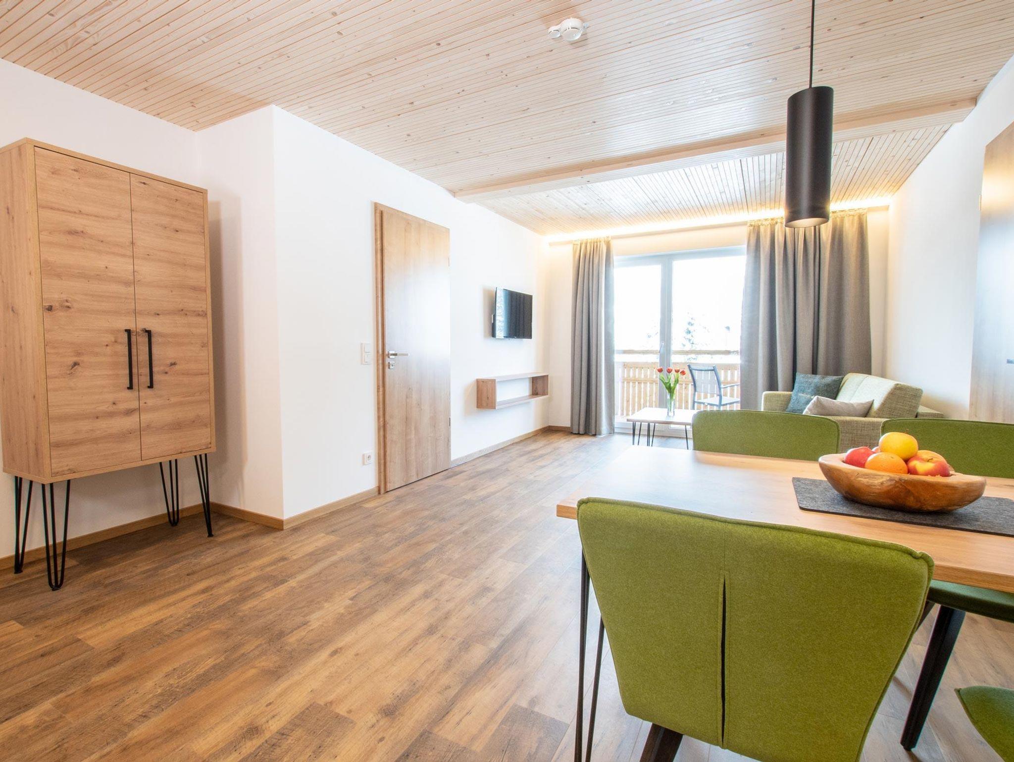 Die Moorbirke-Chalets sorgen mit warmen Farben für eine gemütliche Atmosphäre. Auf dem Balkon kann man den Blick über die Kakenköpfe und den Osterberg schweifen lassen.