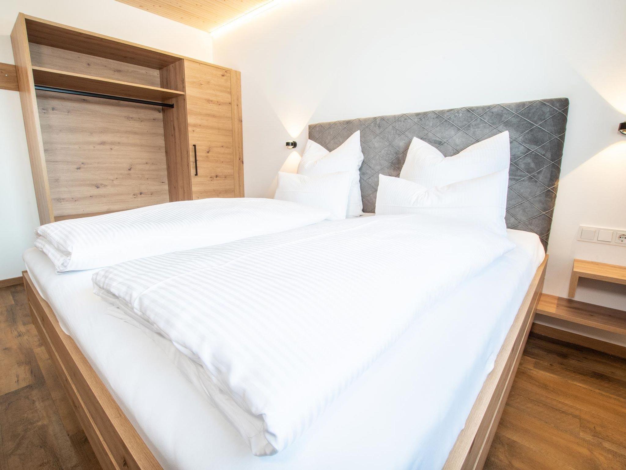 • Schlafzimmer mit Doppelbett und Sat-TV