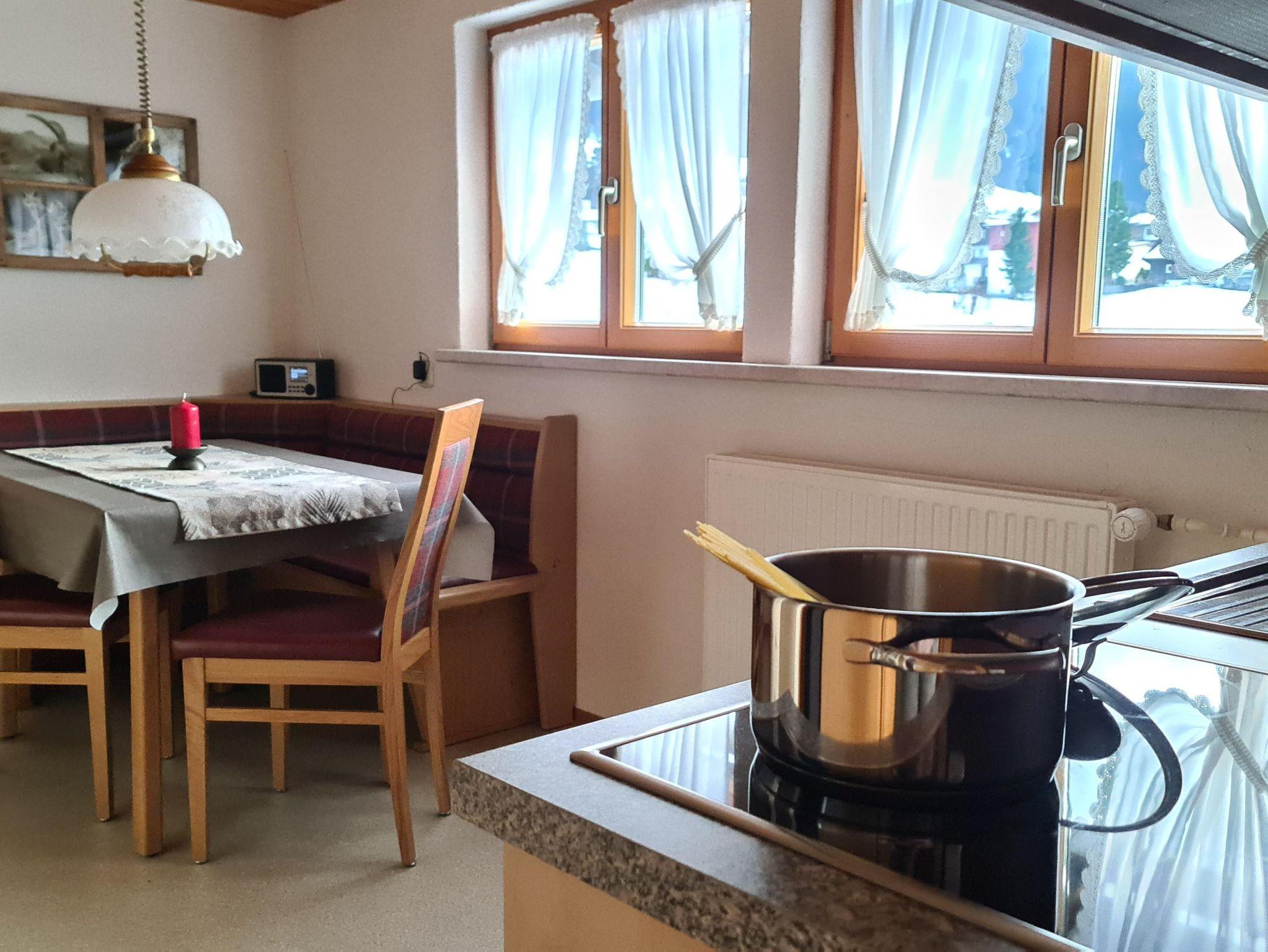 mit Bad/Dusche und WC und einer Küchenzeile, Essecke mit dem schönsten Blick auf das Kleinwalsertal.