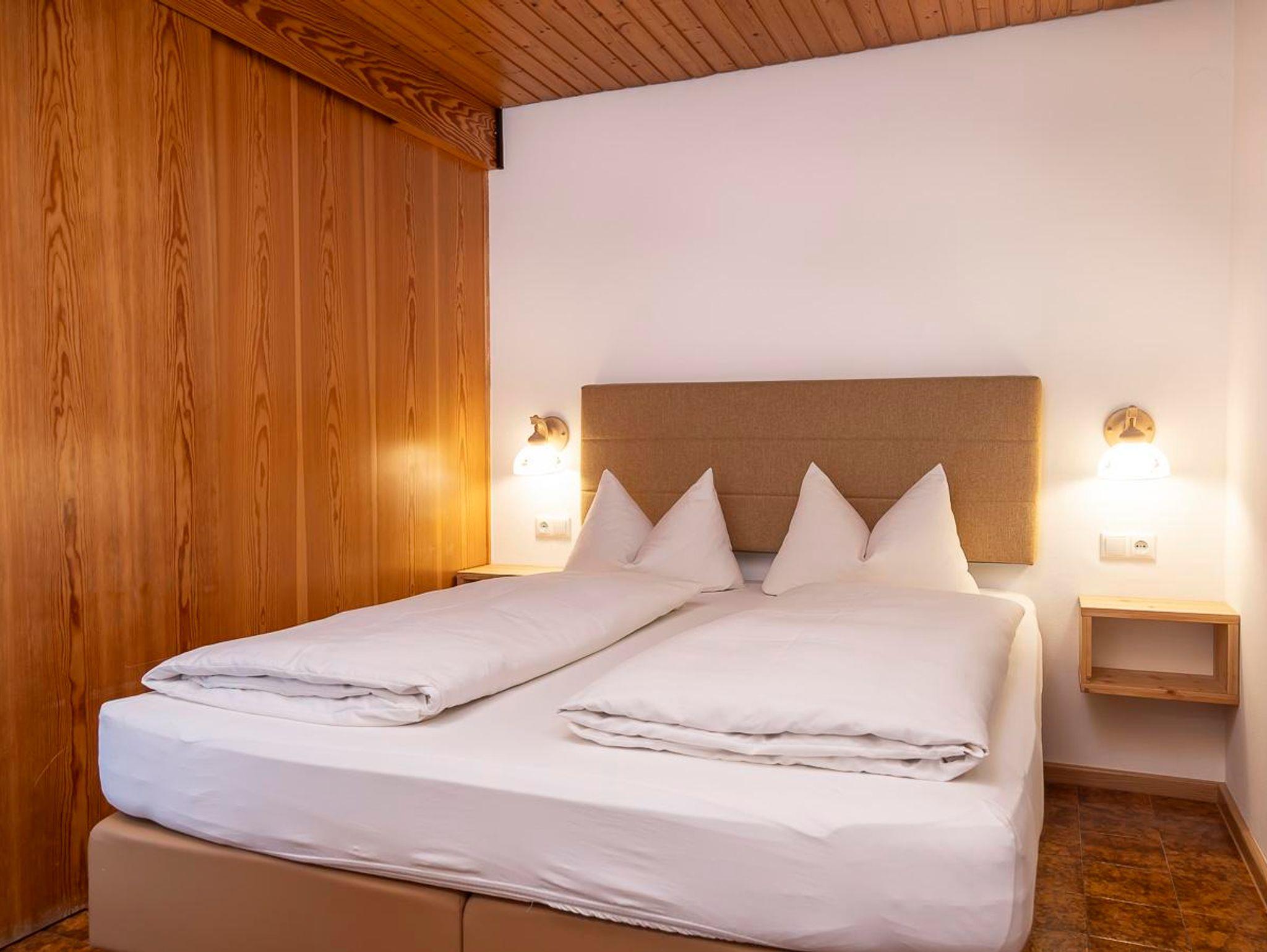 Apartment mit 47qm, großem Wohn- und Schlafbereich separat abtrennbar durch eine Schiebetüre; Doppel Boxspringbett im Schlafbereich, sowie 2 Schrankbetten und Couchecke im Wohnbereich. Küche, gemütliche Essecke, großes Bad mit Doppelwaschbecken und Dusche. Im Vorraum des Apartments sep.WC, Fliesenboden mit Fußbodenheizung sowie Radiatorenheizung. Telefon, Sat-TV, Safe, W-Lan. Der große Südbalkon mit Markise oder die Südterrasse mit Liegewiese und Bergblick. Brötchen- oder Frühstücksservice.