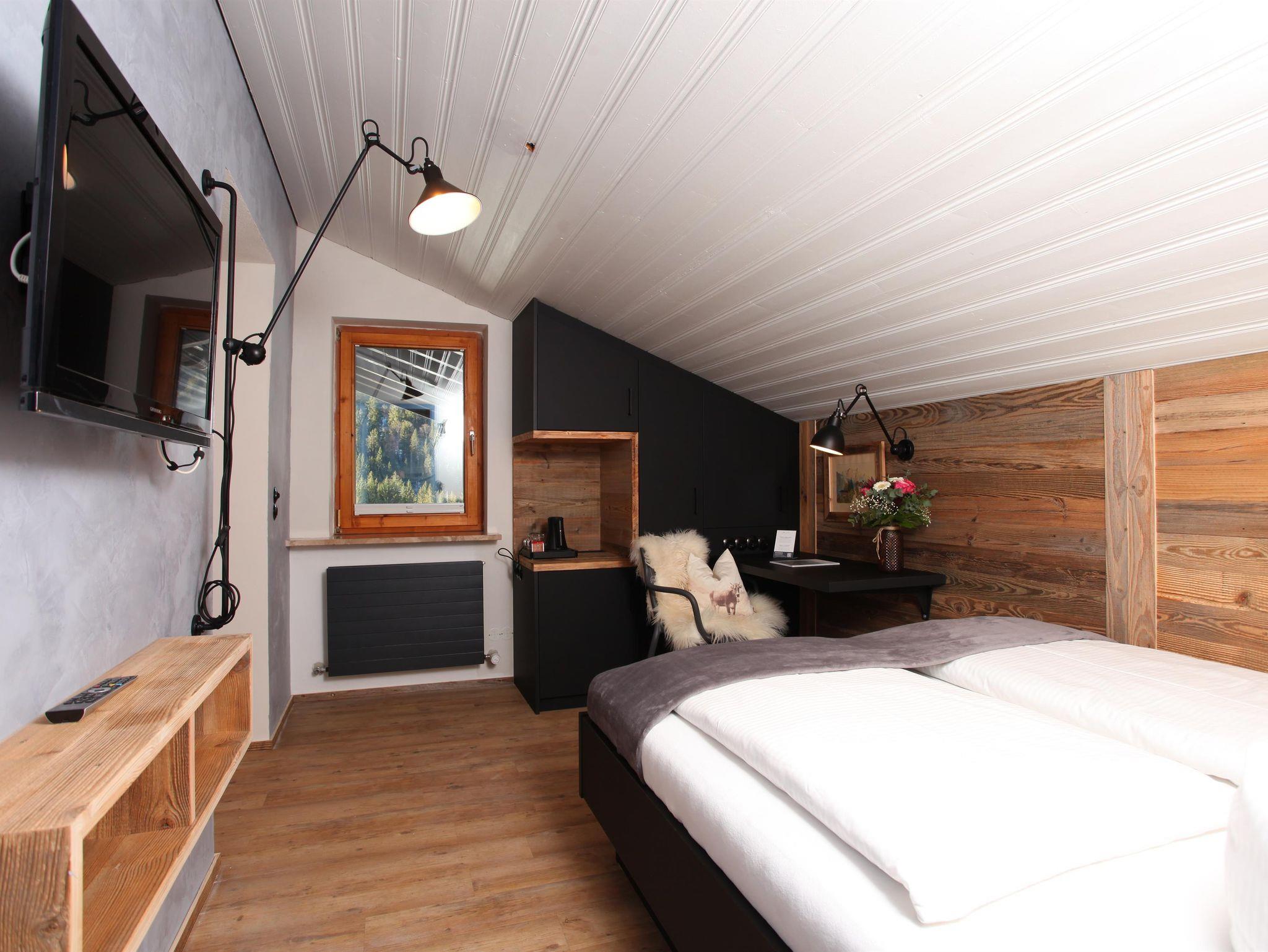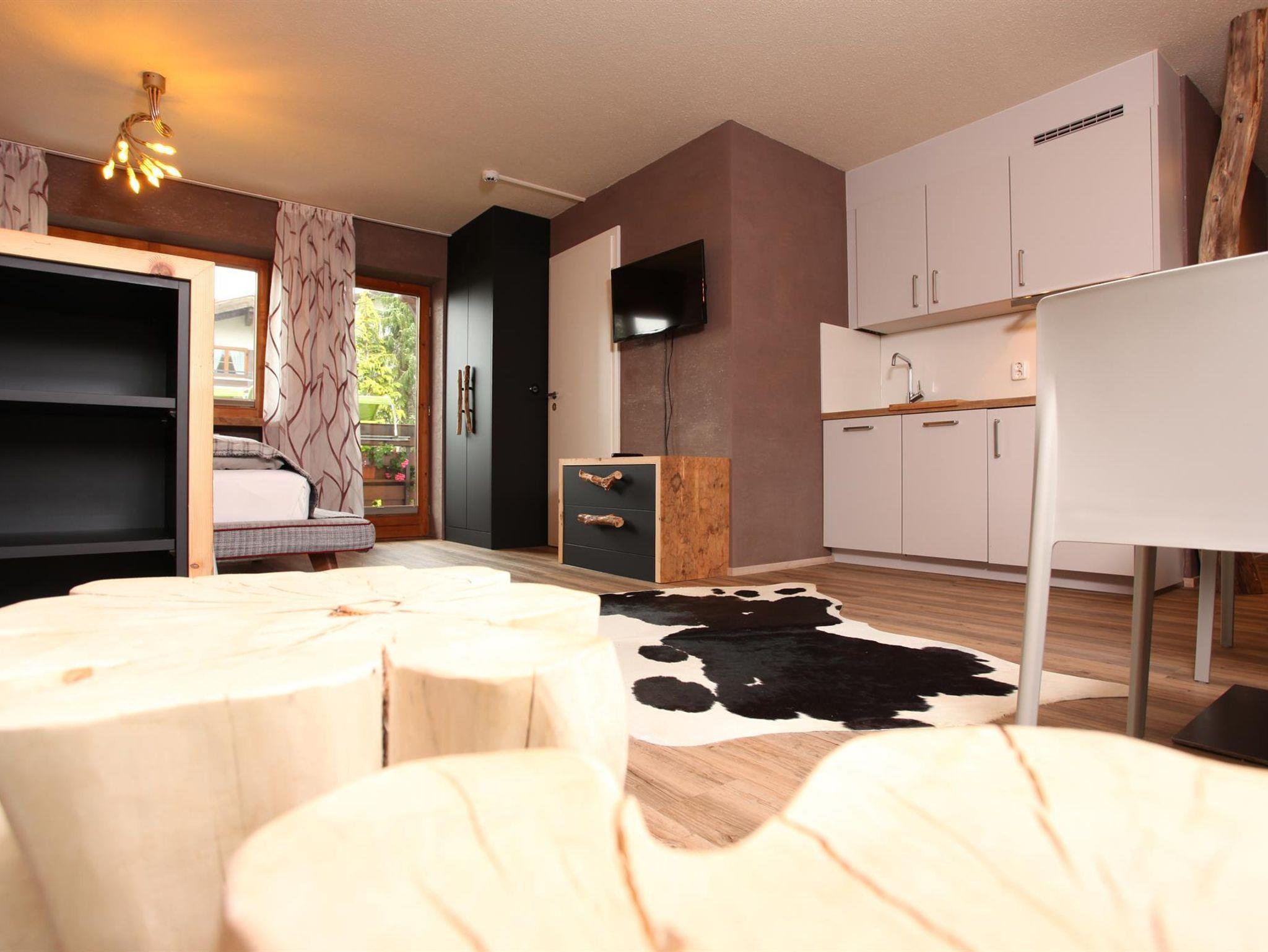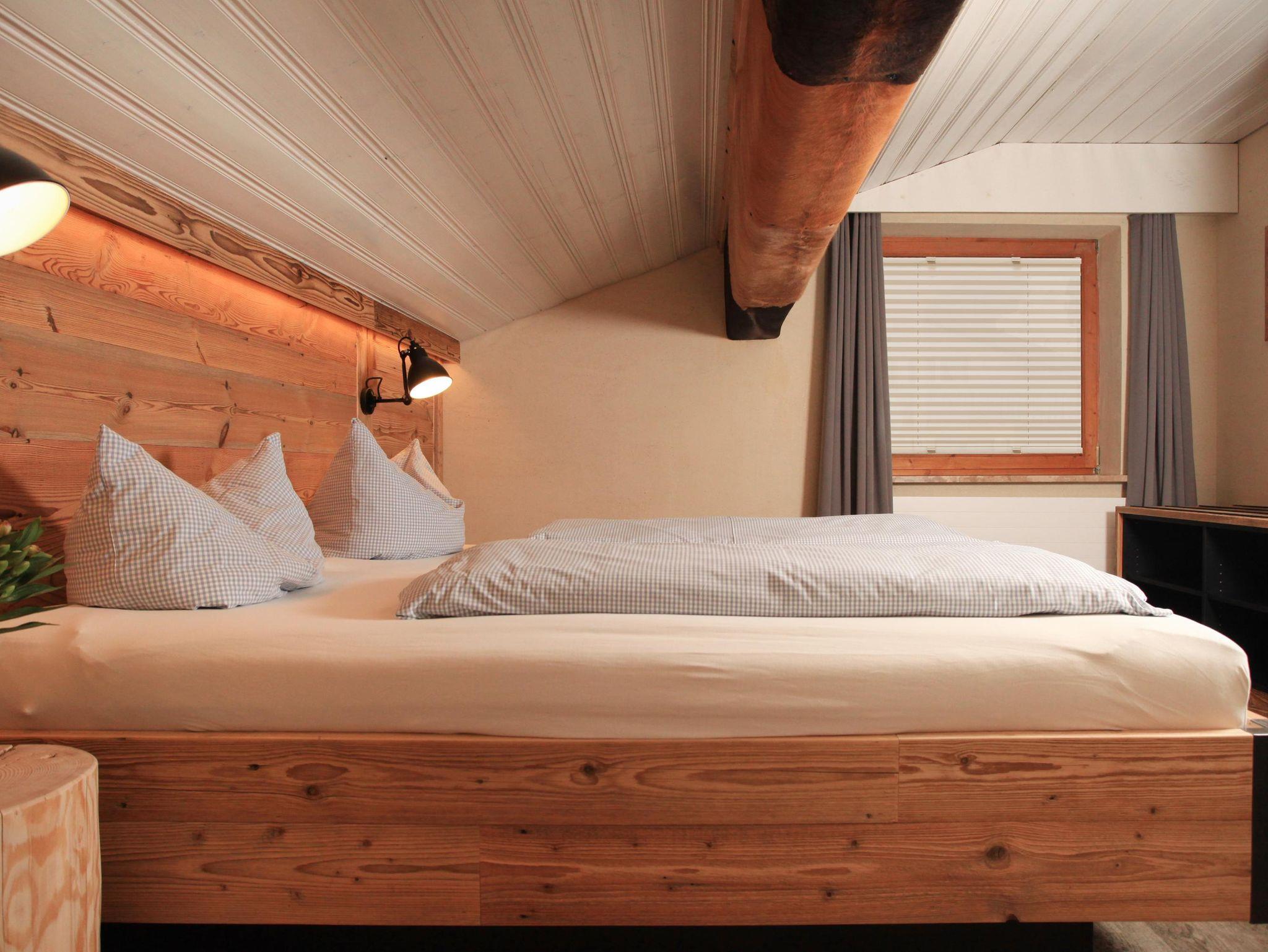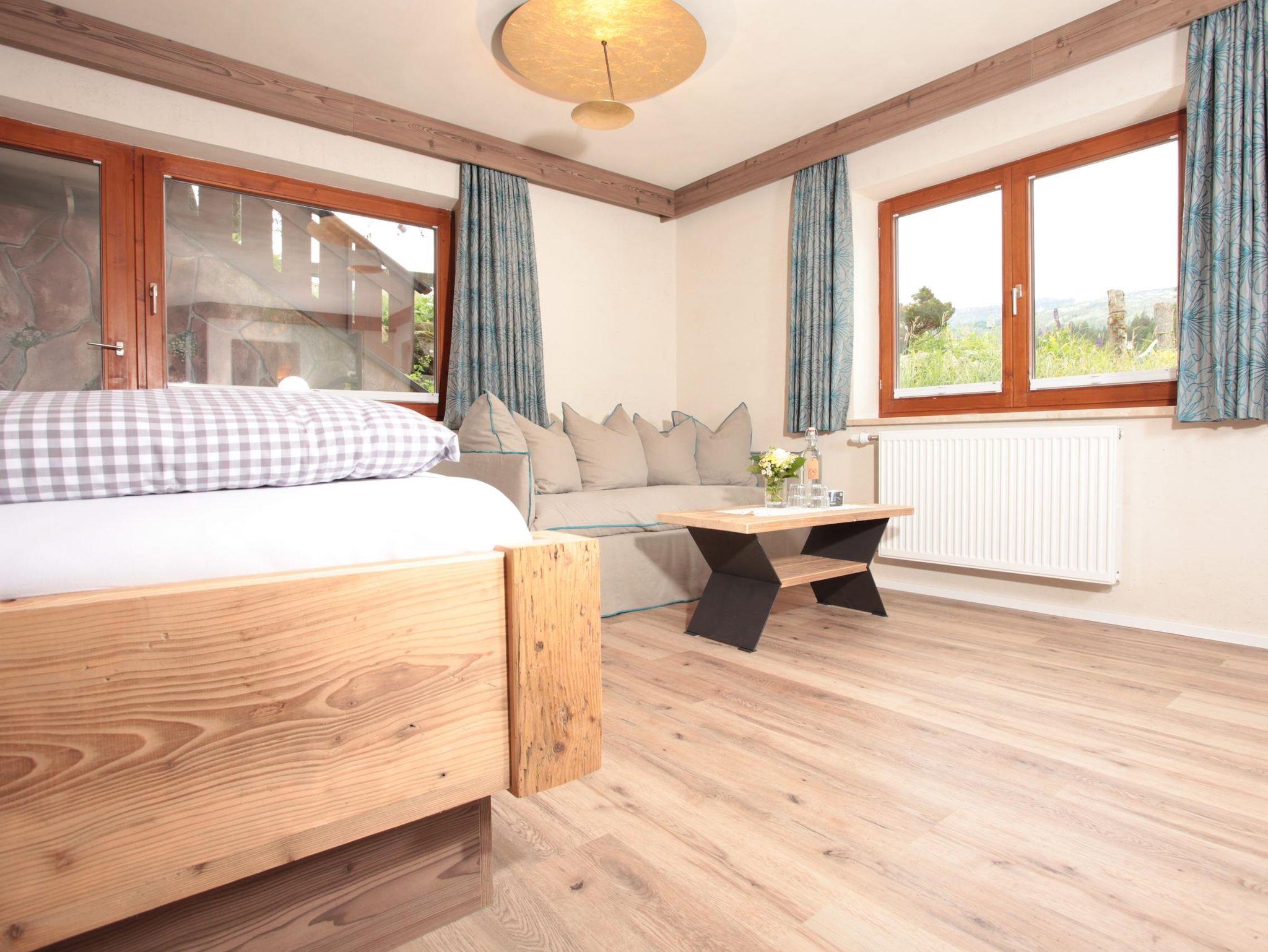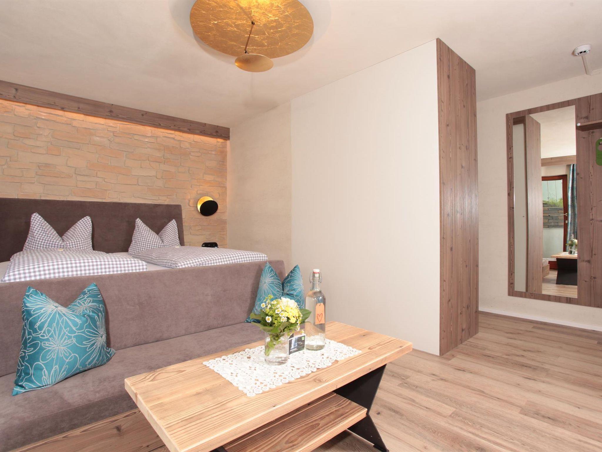 Appartement „Gipfelstürmer“ bis max. 4 Personen. Das geräumige Zimmer verbindet den Charme der Alpen mit modernem Design!Ein hochwertiges Doppelbett,gemütliche Schlafcouch für 2 Personen,Flatscreen SAT-TV,W-LAN,Safe,Radiowecker,Designerlampen, Designvinylboden, im Wohnraum integrierte moderne Ferienküche mit Spülmaschine,optische Raumtrennung zwischen Schlafbereich und Wohnbereich,Balkon nach Osten mit Blick auf die Kanzelwand,Bad mit Dusche + Regendusche/WC mit Hotelfön,35 m²