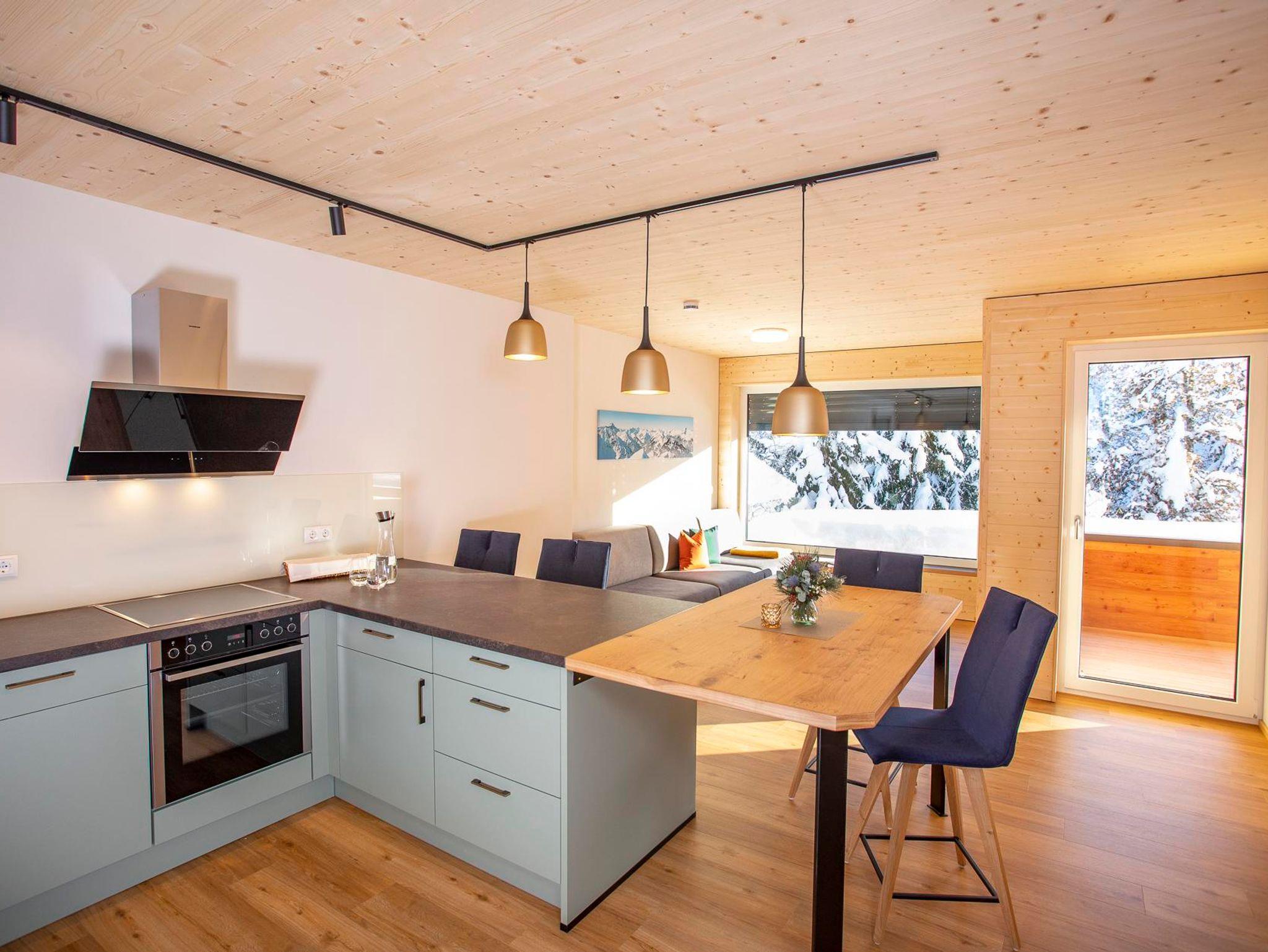 In dieser top ausgestatteten Küche kannst du nach Belieben kochen, oder eine Pizza in den Ofen schieben und auf der Couch am Panoramafenster die Füße hochlegen. Die beheizten Fußböden bieten nicht nur angenehme Wärme, sondern auch ausreichend Platz für Lego und Co. Ob du im Sommer dein Frühstück oder im Winter einen Après-Ski-Drink genießen möchtest – die großzügige Loggia ist der ideale Ort, um den Blick auf die Berge zu genießen.