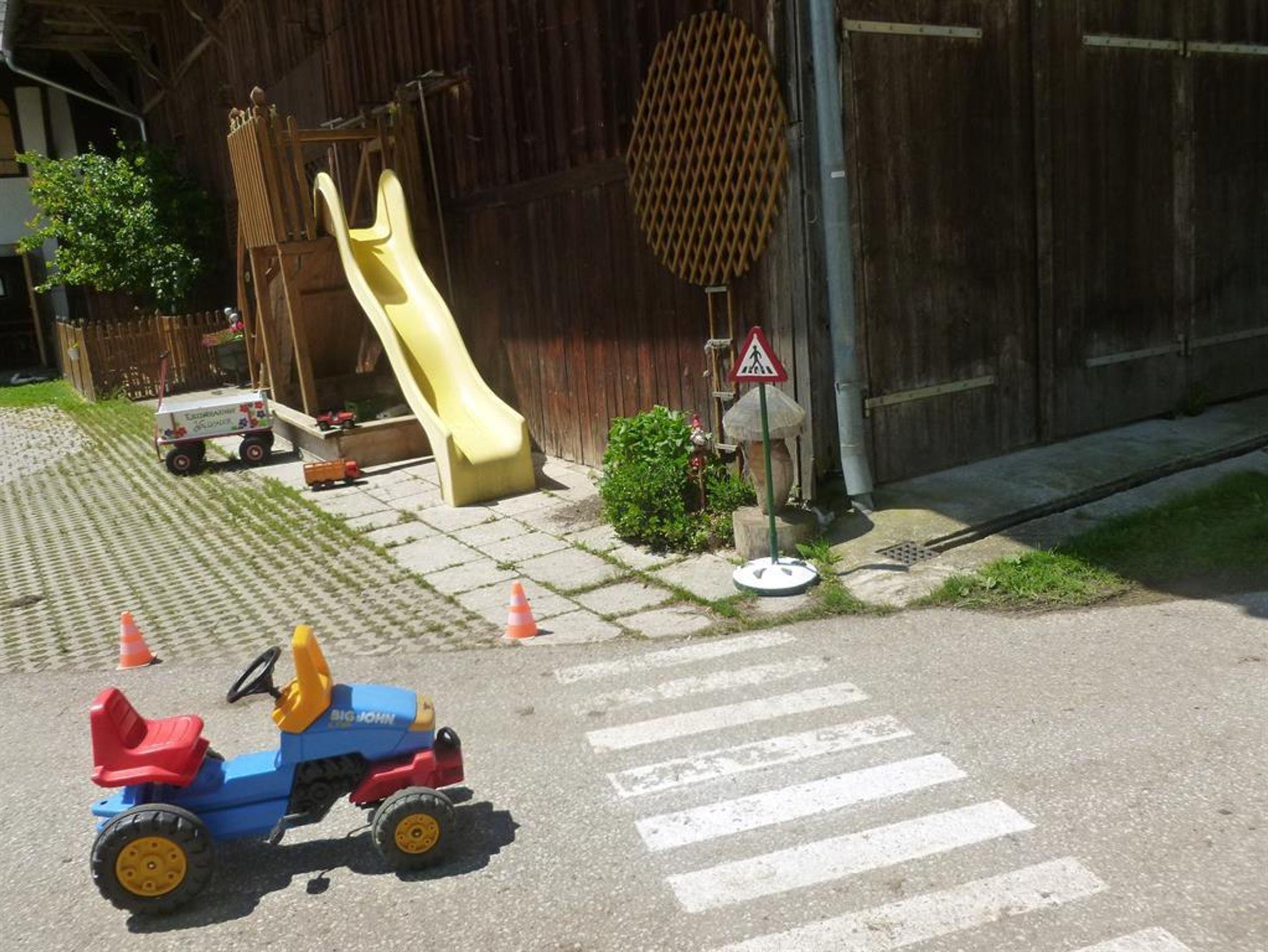 Der große Innenhof dient unseren jungen Gästen als Spielplatz für Trettraktoren, Fahrräder und Go-Karts.