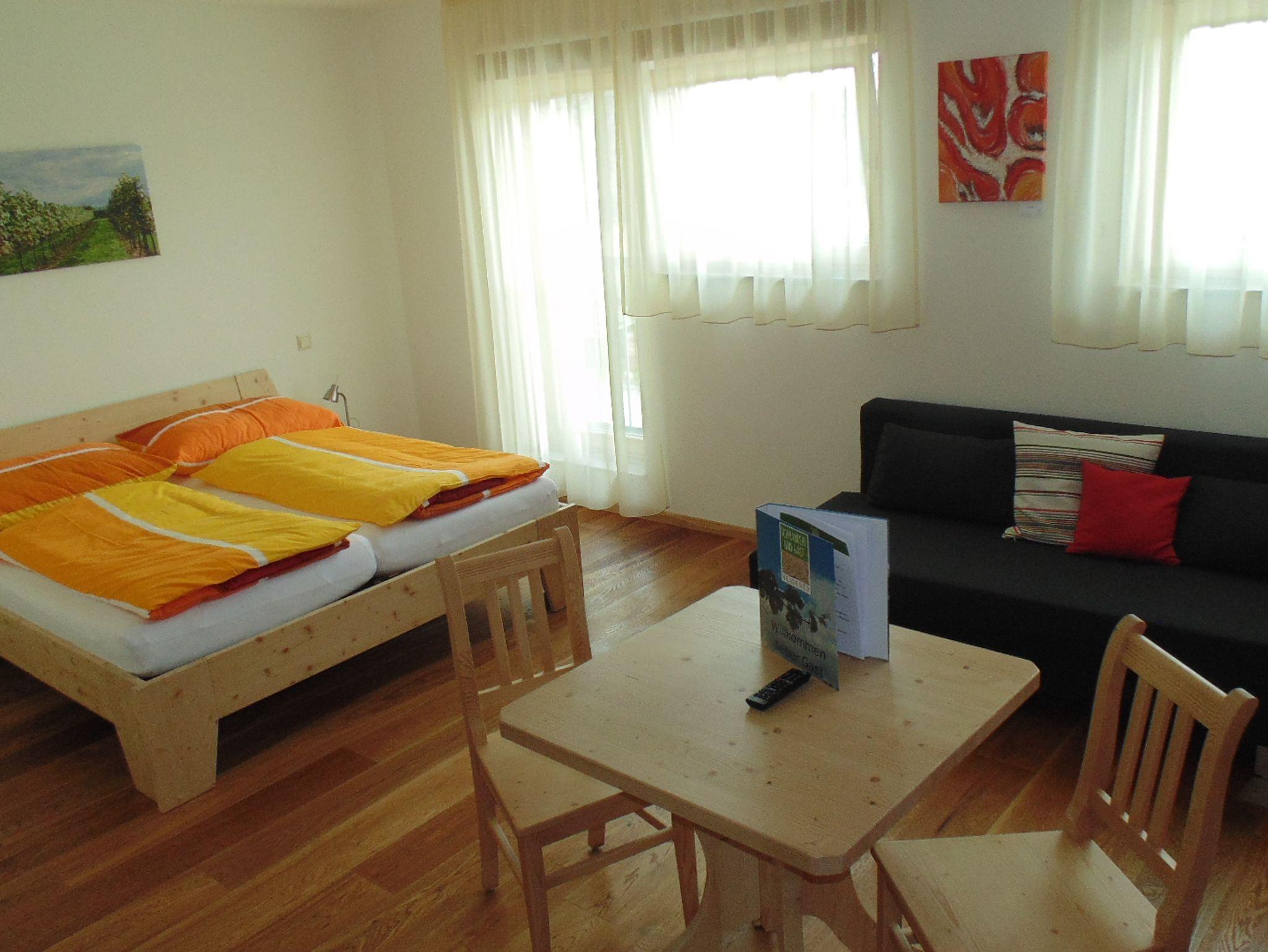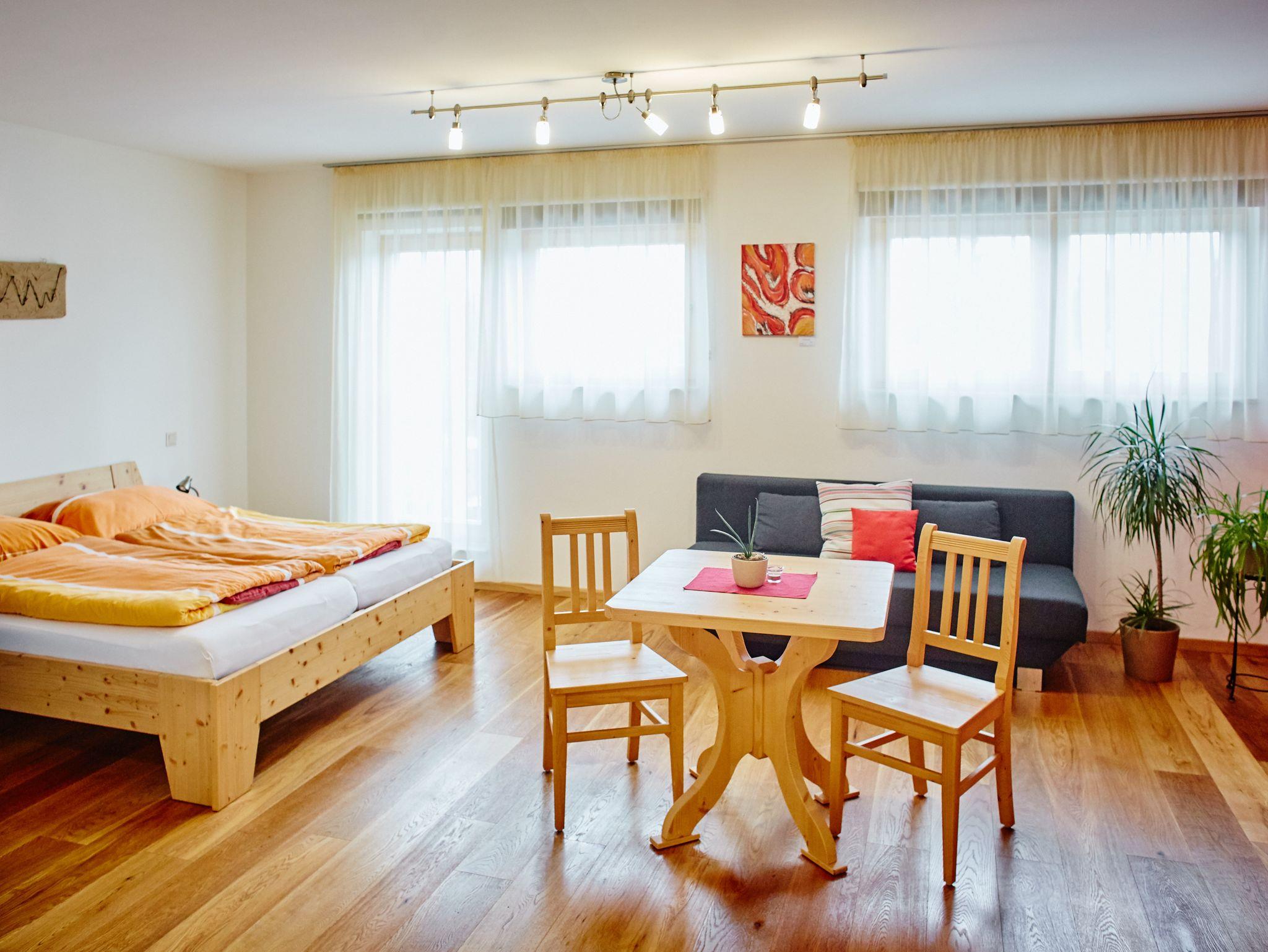 Unser geräumiges Familienzimmerzimmer Thalland liegt im Obergeschoß unseres Gästehauses. Dusche und WC finden Sie in getrennten Räumen. Auf dem gemütlichen Schlafsofa finden 1-2 zusätzliche Personen Platz. Mitreisende Kinder von 0-3 Jahren nächtigen im Bett der Eltern kostenfrei.