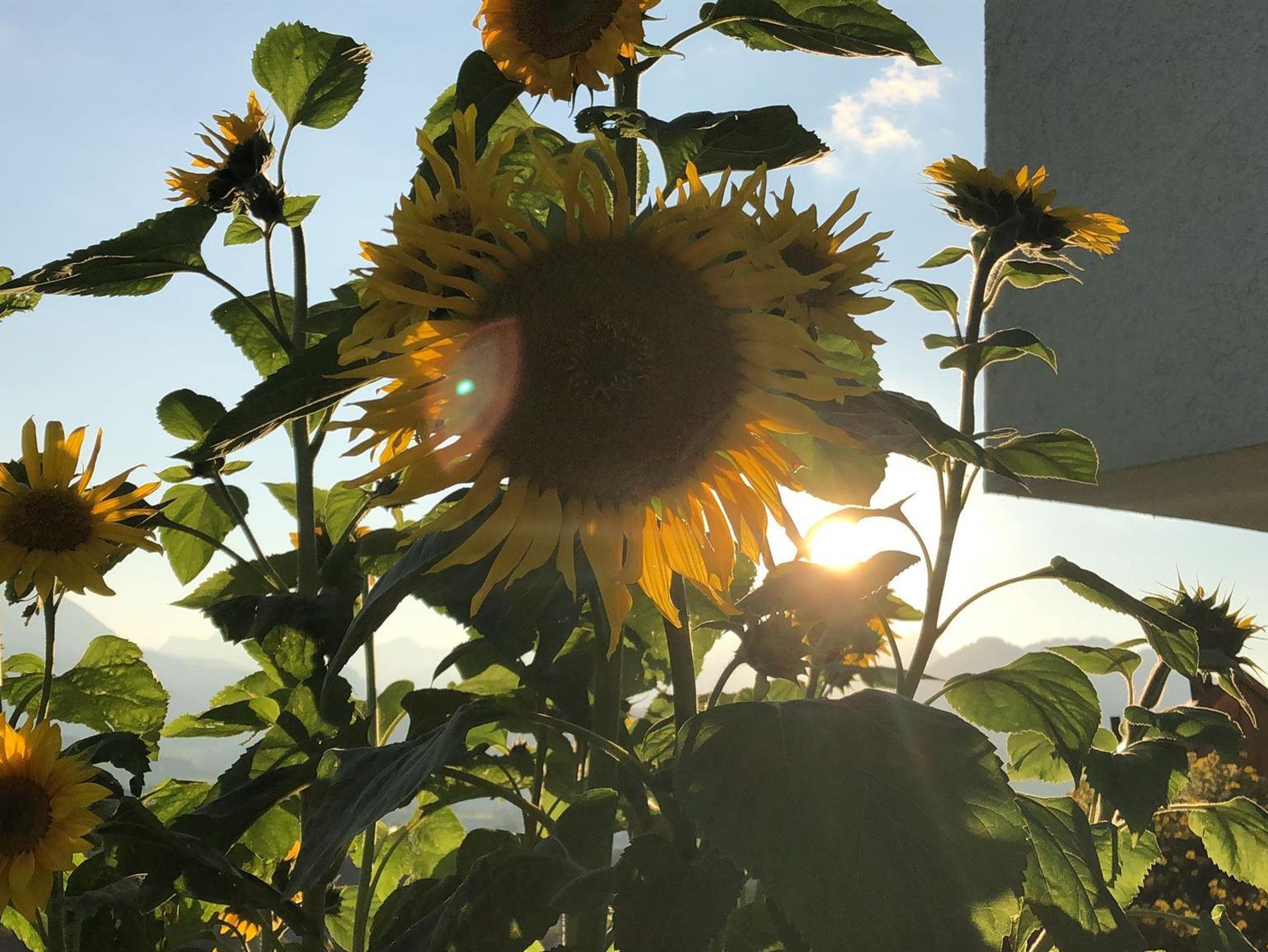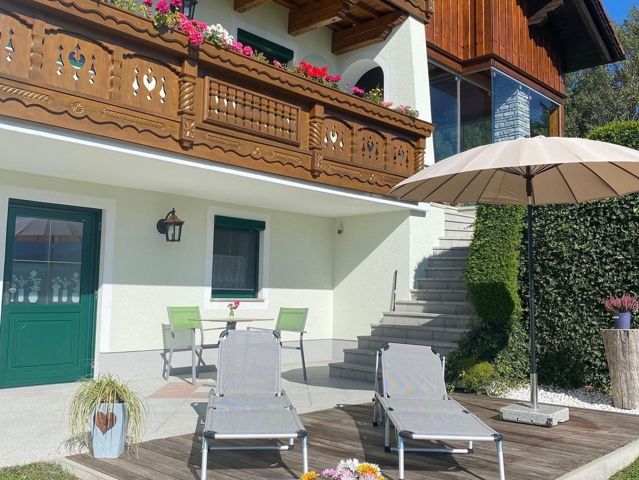 Vor der Eingangstür befindet sich die traumhafte Panorama-Sonnenterrasse mit Gartenmöbeln (Liegen, Sonnenschirm) und lädt zum Verweilen & Träumen ein!