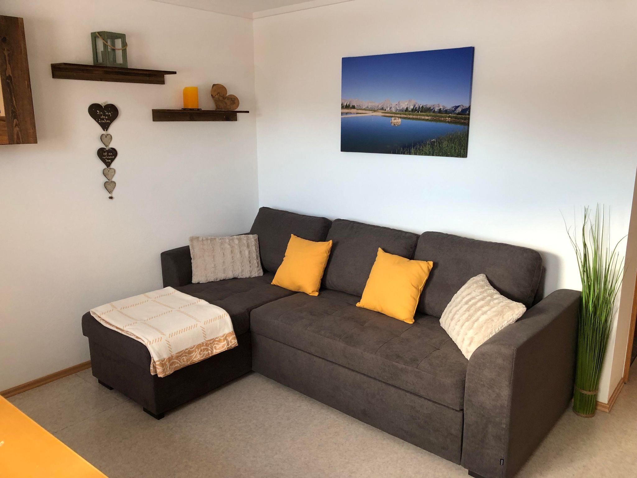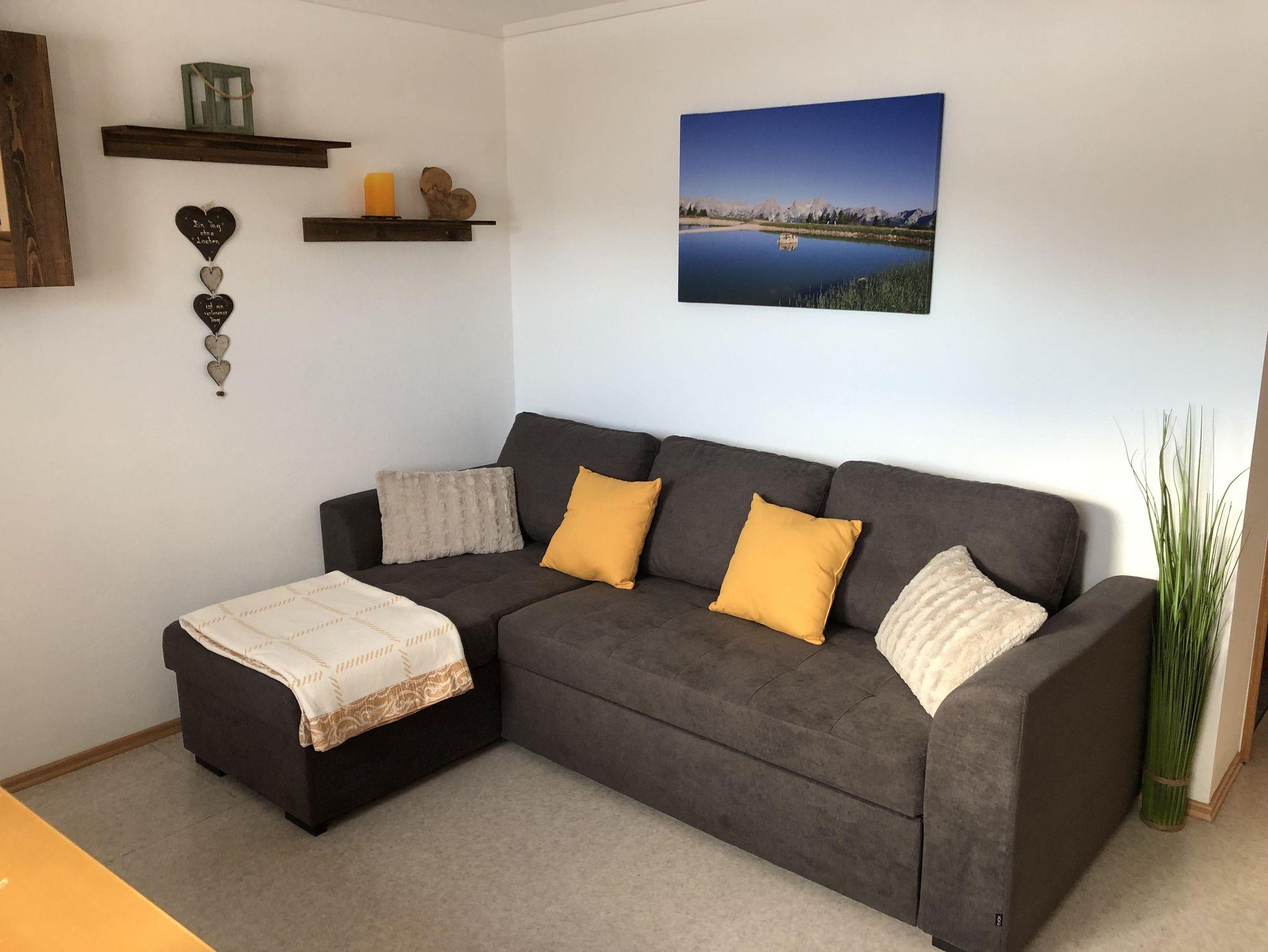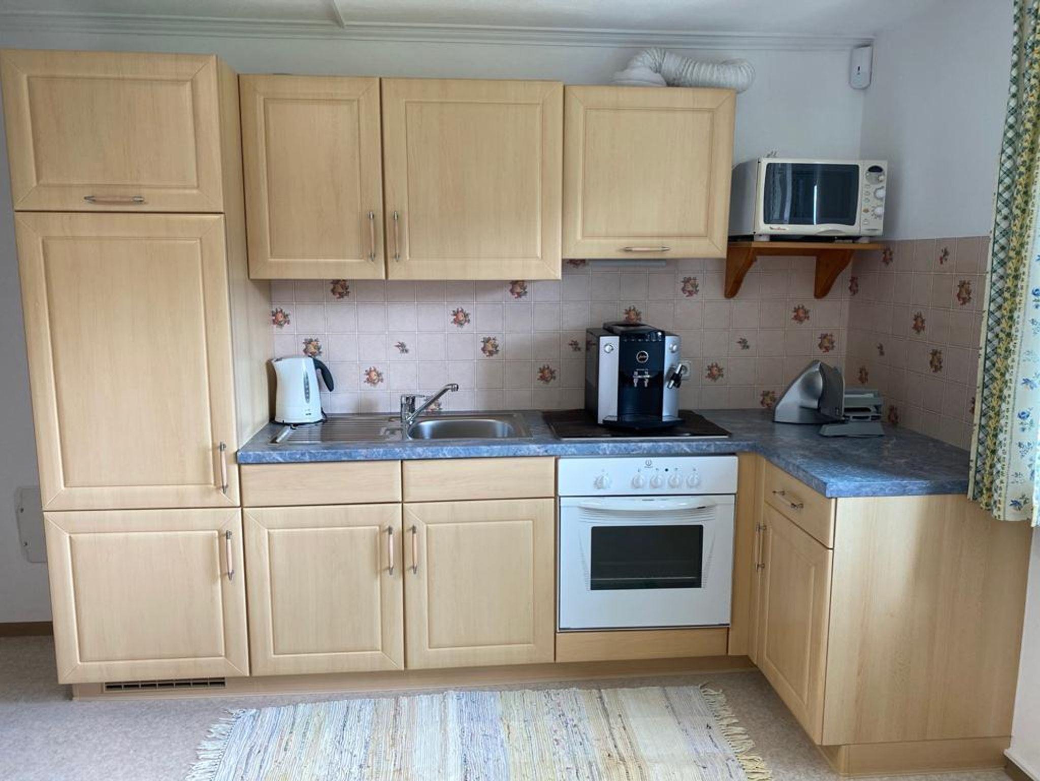 Das geräumige Apartment mit 60 m² verfügt über ein Schlafzimmer mit Doppelbett, großen Kleiderschrank, Kommode. Die Wohnküche ist mit einem Essbereich, gemütlichen Ecksofa (mit Schlaffunktion), NEU Kaminofen, Satelliten Flat-TV/Radio, gratis WLAN, Küchenblock mit Kühlschrank, Herd, Backrohr, Jura-Kaffeemaschine, Filtermaschine, Aufschnittmaschine, Toaster, Eier- und Wasserkocher, uvm. ausgestattet.