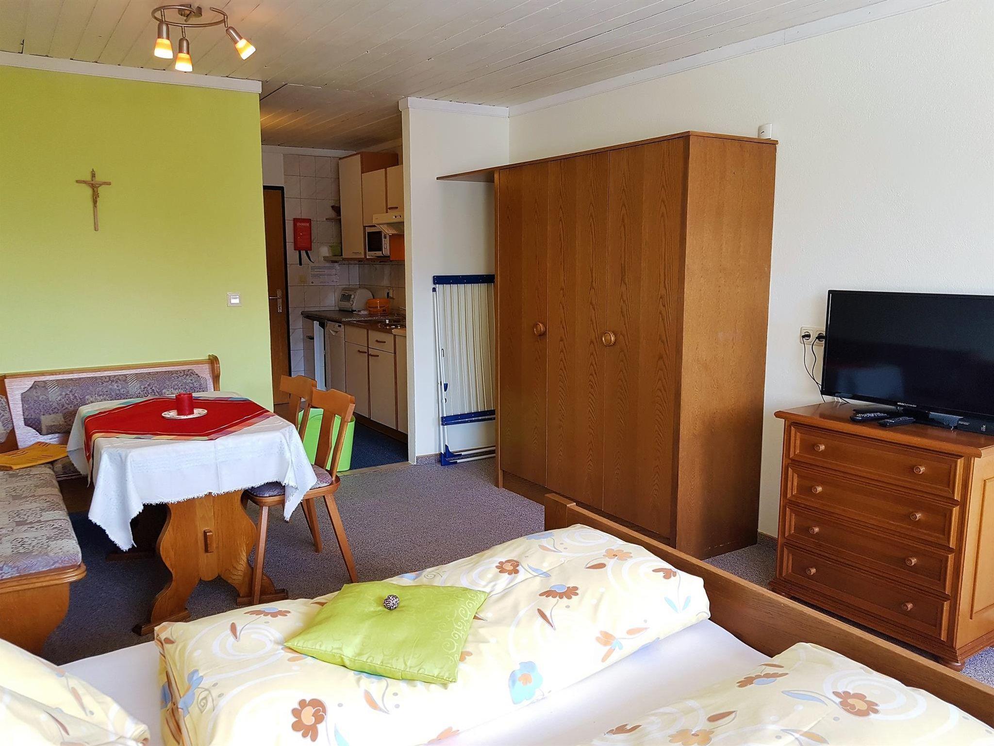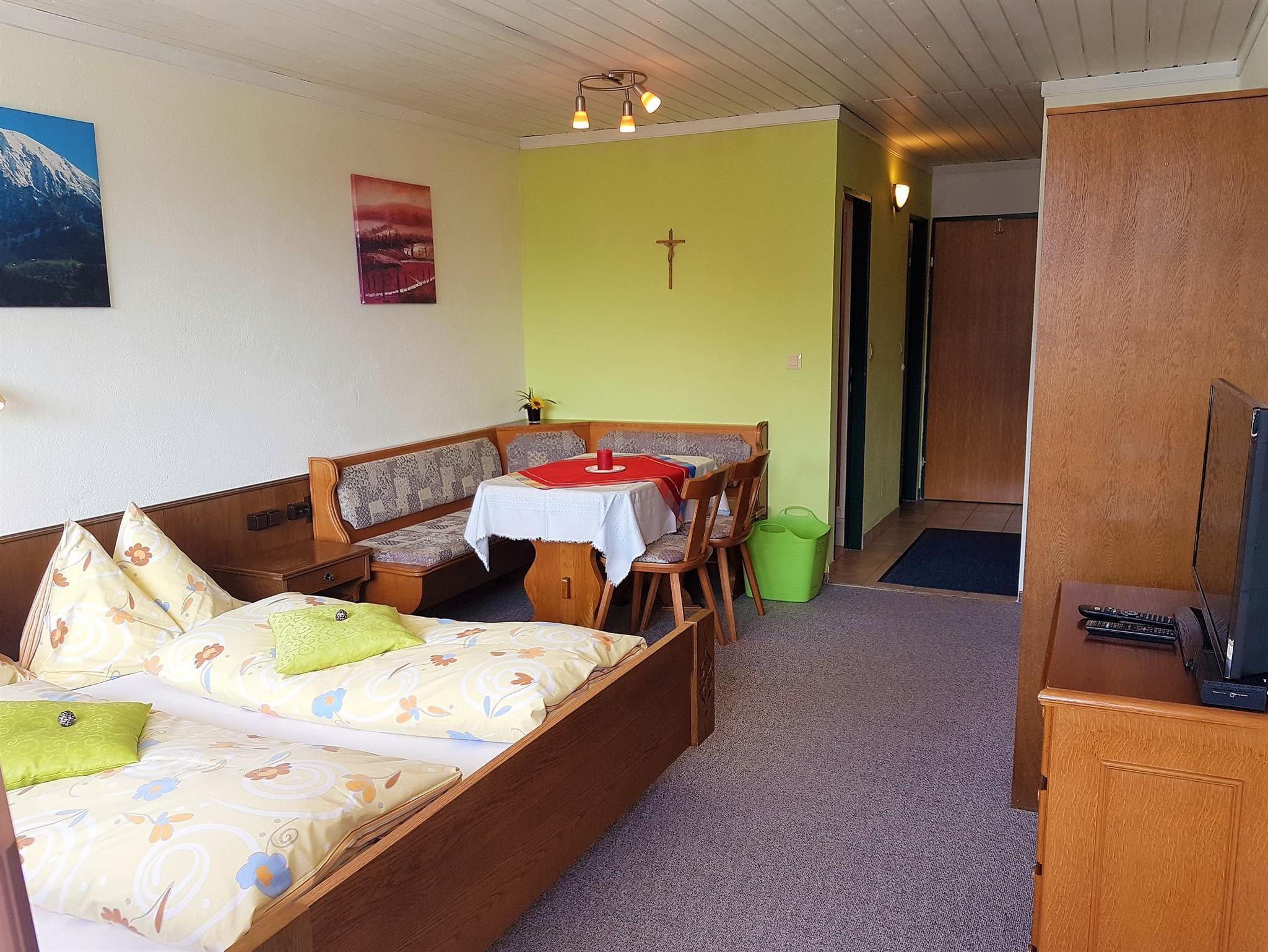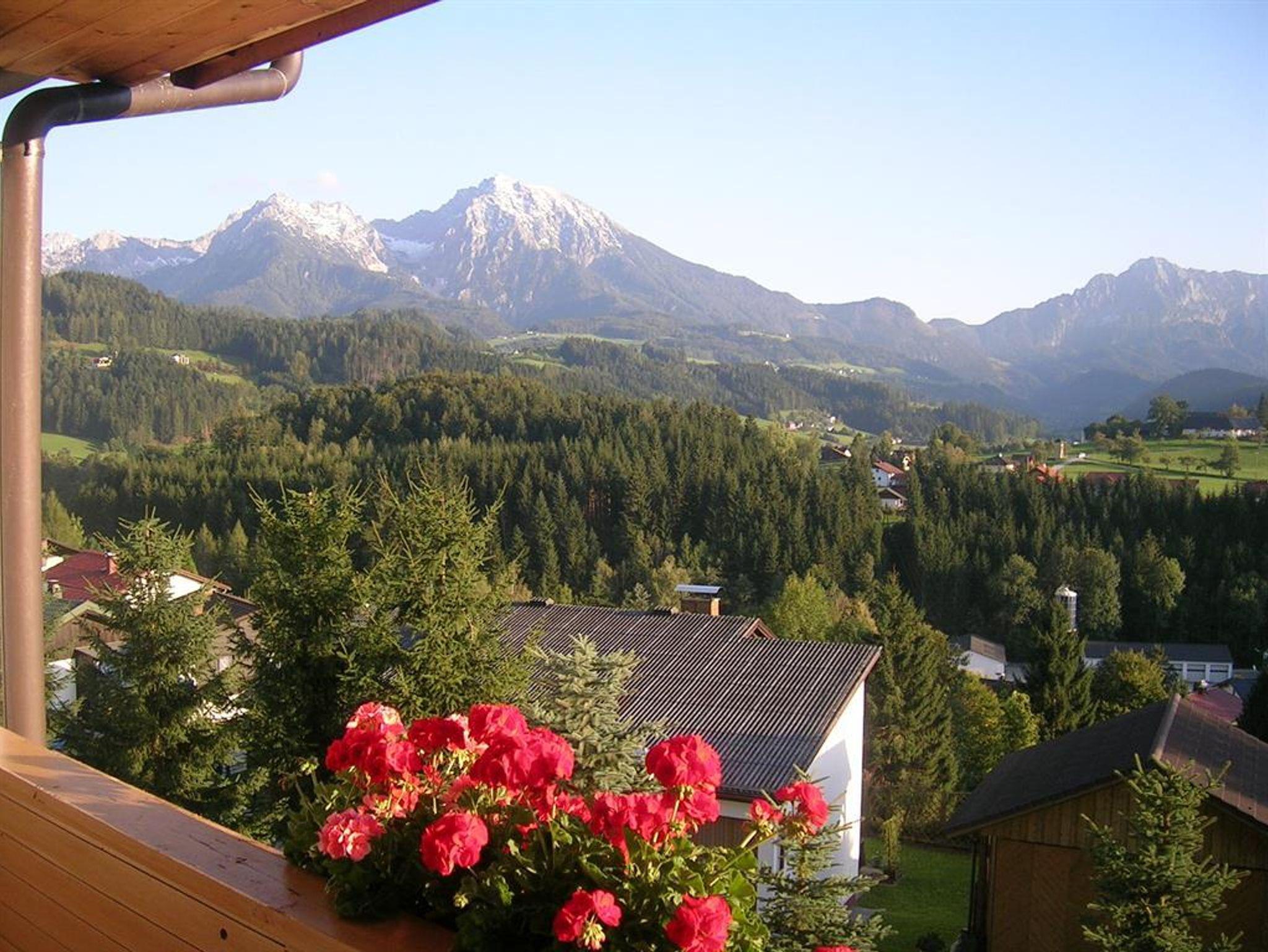 Studio für bis zu 2 Personen, mit 35 m², Kochnische, Wohn-Schlafzimmer mit Doppelbett und Eßecke, Sat-TV, Süd-Balkon, Bad mit Dusche und WC getrennt, Fön, Save; Ebenerdig und trotzdem tolle Aussicht auf die Pyhrn-Priel Region;
