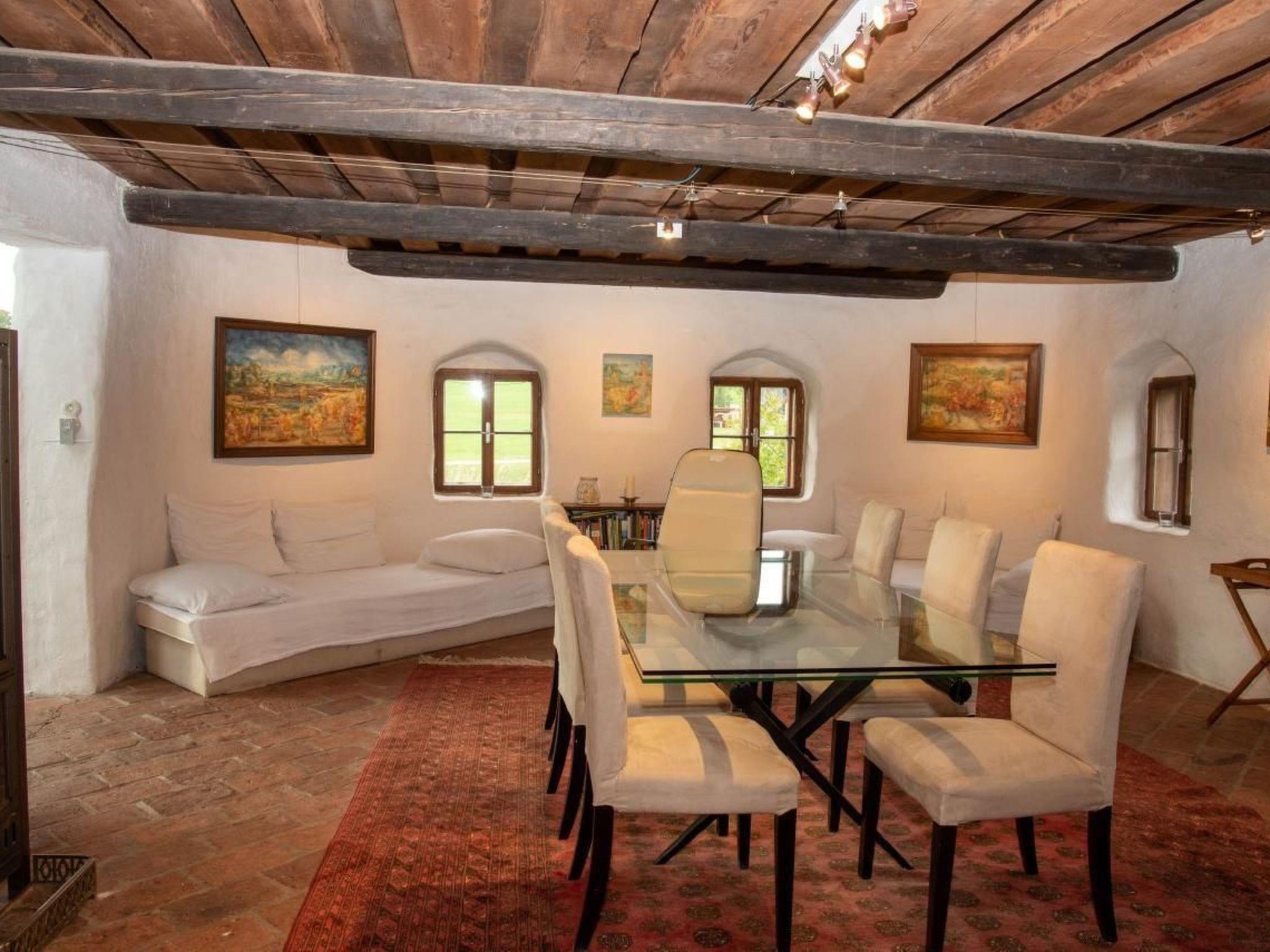 We invite everyone who has ever dreamed of spending unforgettable moments in impressive surroundings to our holiday home. Up to 10 people will find peace and quiet here or space for cycling, running, hiking, golfing, horse riding and swimming - a place to relax and recharge your batteries amidst the unmistakable landscape of the Waldviertel. Experience the magical attraction of mystical Celtic places in the immediate vicinity or visit the numerous castles, palaces and monasteries in the surrounding area.the farm is situated in an absolutely quiet location - 3 minutes from Rosenau Castle - and impresses with its 300 m² of living space through the symbiosis of 229 years old originality paired with art and modernity.there is room for up to 10 people to sleep, whereby we have also celebrated parties with over 100 friends and built a small tent camp. Three spacious bedrooms, the music room, the morning sun and the Christo room with 60 and 2 x 40 m2 for 2 to 6 people are at your disposal. The studio can be used as an additional bedroom for 2. The winter garden, bedrooms and bathtub with a view over meadows, fields and forests will make your stay an unforgettable experience, and you can pamper yourself in our sauna area with shower and pool to dive into. In the wine cellar we have collected numerous delicacies and listed them in a cellar book to indulge your senses on a spiritual level as well.in addition to a wood-burning stove in the studio which also serves as an open fireplace, the house is equipped with central heating and a brick tiled stove in the kitchen.Dishwasher, washing machine, tumble dryer, stereo systems in the bathroom, kitchen, studio and music room, as well as broadband internet connection for your laptop, satellite TV, VHS and DVD player are available.cook for yourself or take advantage of the local gastronomy - we are happy to give you tips.several modern security systems protect you from uninvited guests.Whether you are looking for a weekend "alone for two" or a holiday with children and friends, we will be happy to provide you with further information.Brief description 1Number of kitchens : 1Other rooms : winter garden, saunaSurroundingsLeisure facilities : bike hire, ski, snowboard or sledge hireSports facilities in the surrounding area : fishing, ice skating, golf course, hunting, mountain biking, cycle tours, riding stables (guests), indoor riding arena, riding arena / riding facilities, tobogganing, sailing, skiing (cross-country), skiing (alpine), surfing, tennisSurroundings 1Excursion possibilities : www.waldviertel.atGarden and outdoor facilitiesRecreational facilities at the property : SaunaGarden equipment : Garden furniture available, BarbecueServices 1Other : We will be happy to fulfil your wishes.