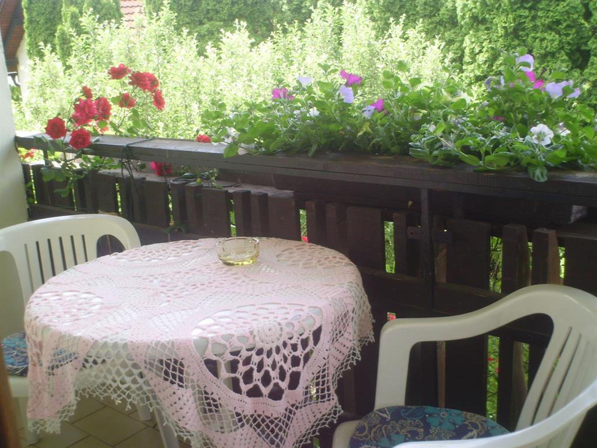 verfügt über Doppelbett, Kleiderschrank, Nachtkästchen - alles Naturholz ,Tisch mit Sitzgelegenheit,