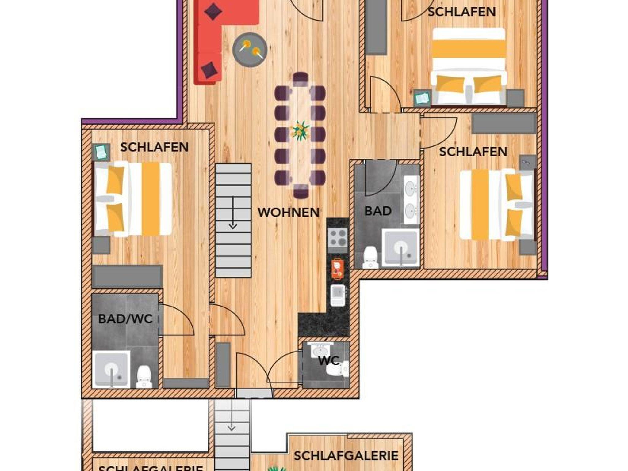 - 5 Schlafzimmer mit je einem Doppelbett
