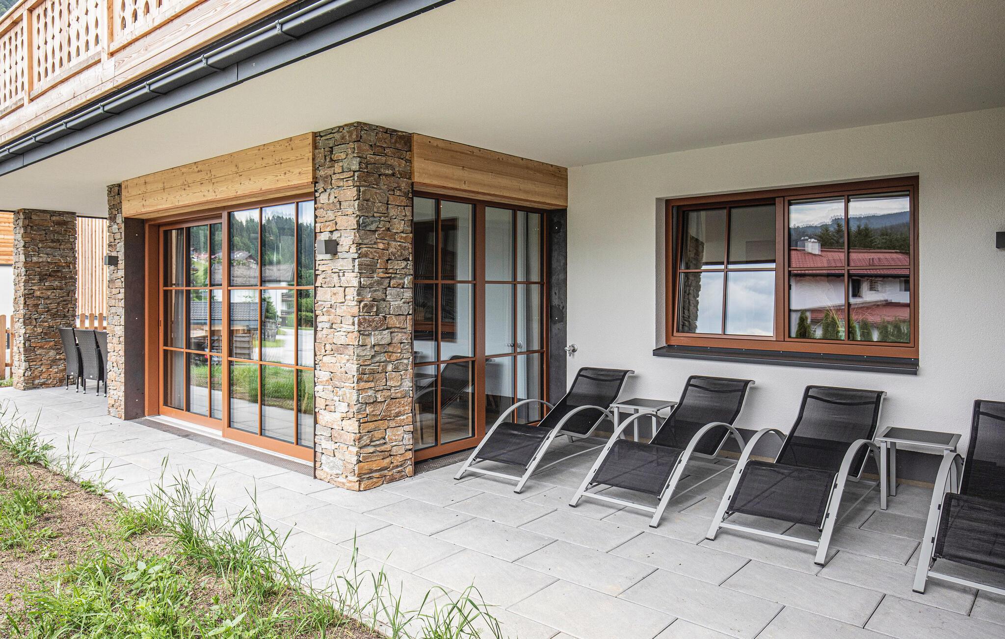 På den solrige terrasse med liggestole kan I slappe af og nyde den friske bjergluft. Saml familien til fælles måltider udenfor, og læg planer for jeres næste aktiviteter. Dette moderne feriehus rummer tre andre ferielejligheder, hvilket skaber en hyggelig, men alligevel privat atmosfære.