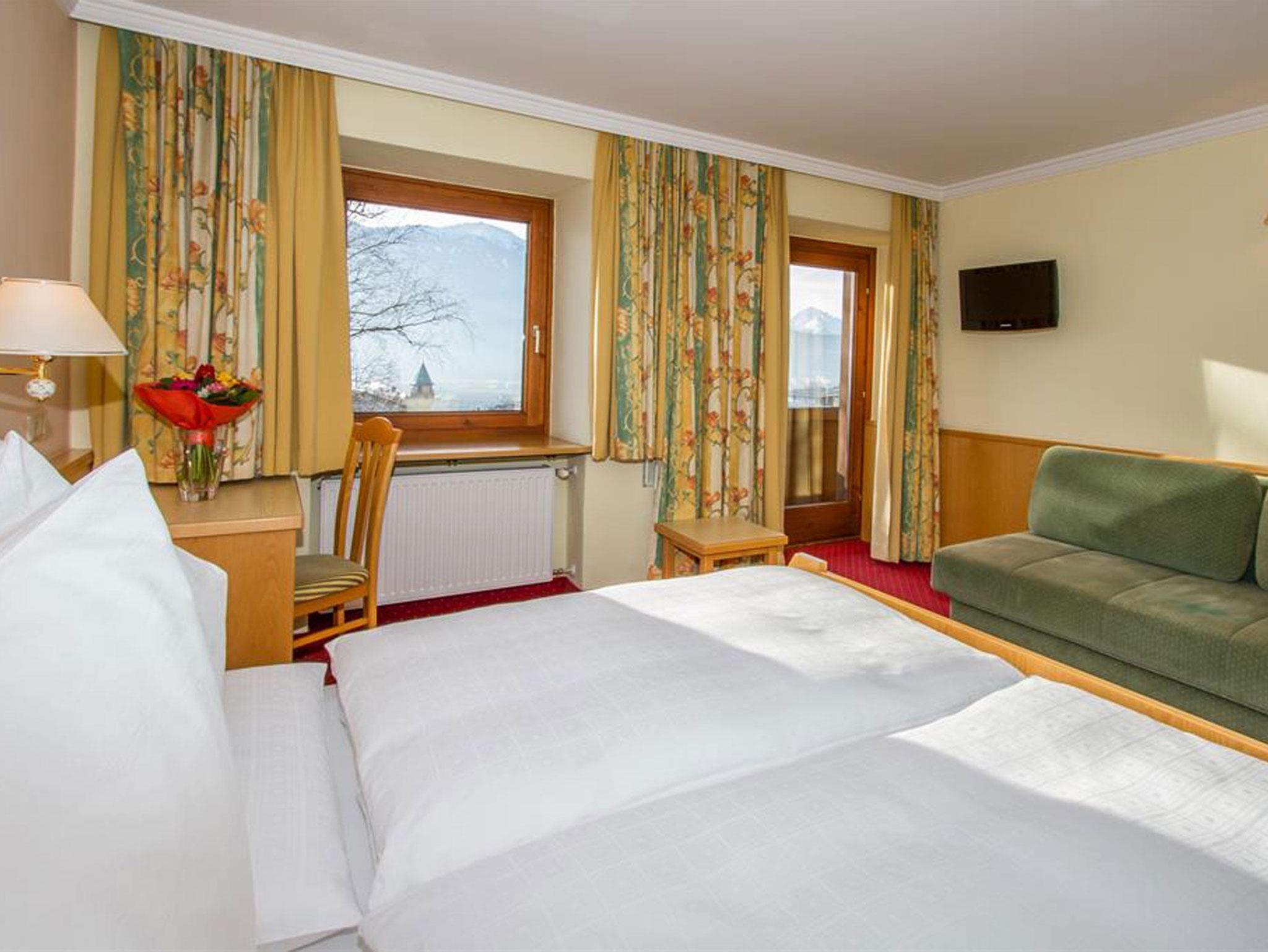 Tradition trifft auf Moderne - Sie können sich auf 30 m² wohlfühlen und Innsbruck und die Bergwelt bewundern. Ausgestattet mit einem Arbeitstisch, Telefon, SAT-TV, Klimaanlage und Safe sowie einer Couch. Badezimmer mit Dusche, Föhn und getrenntem WC.