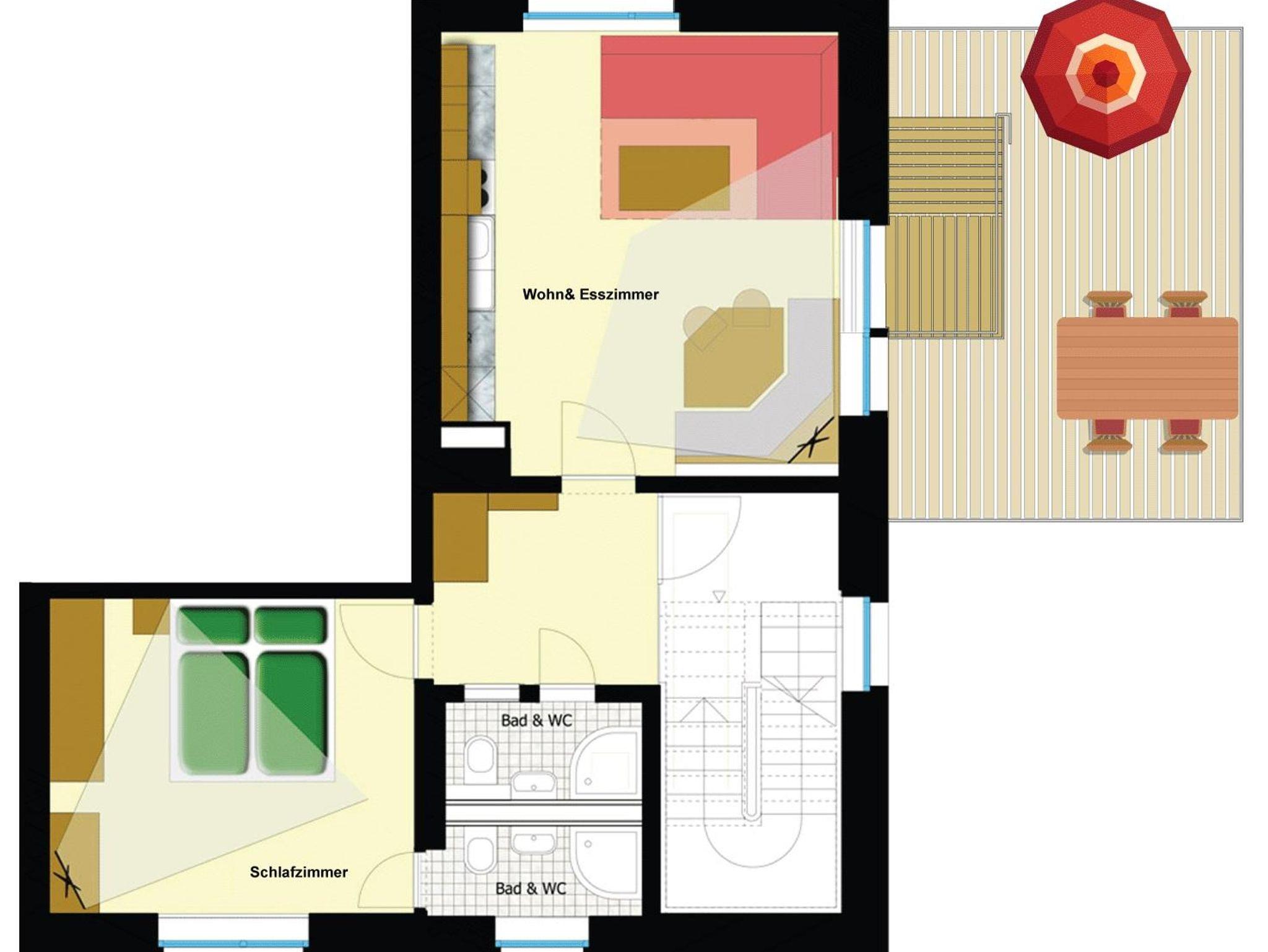 APPARTEMENT 2 INFO Appartement/ 2-4 Personen/ 50qm/ 1 Schlafraum mit Doppelbett/ 1 Wohnschlaf-raum bestehend aus großer Küche mit Geschirrspüler und Mikrowelle, Eckbankgruppe, Wohncouch mit Doppelbettfunktion /2 Bäder mit WC, WT und Dusche/ Radio/ SAT Flat TV im Wohnraum und Schlafraum/ W-Lan/ Parkplatz/ im 1.Obergeschoß Kinderbett und Hochstuhl bei Bedarf vorhanden. Wir ersuchen um Verständnis, dass Haustiere nicht gestattet sind.