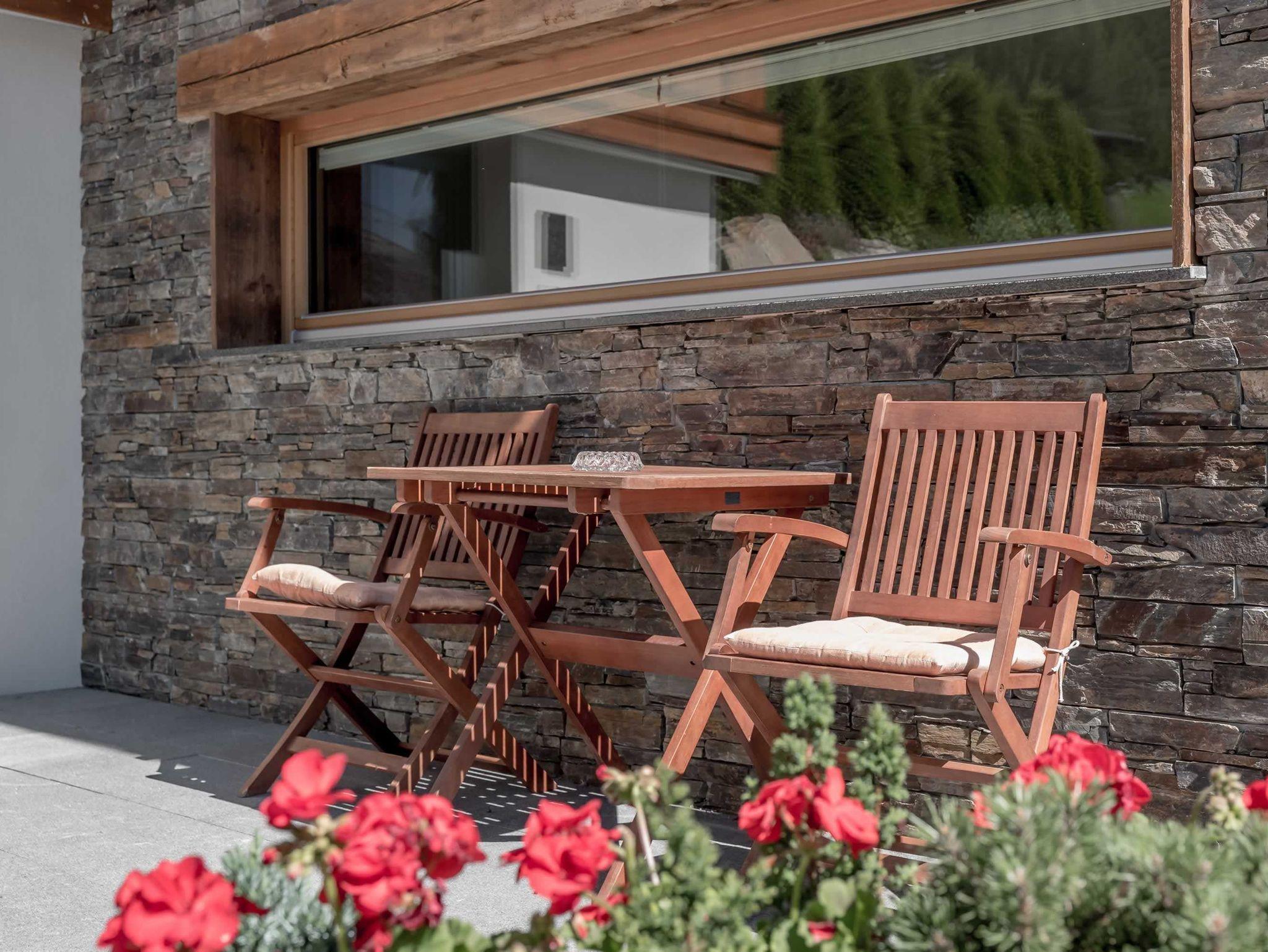 Unsere Chalets sind alle hochwertig eingerichtet mit Altholz vom Michl's Stadel, heimischen Hölzern aus den Wäldern des Ötztales sowie mit Steinmauern vom Ötztaler Granit. Das Chalet Black Stone bietet einen Vorraum, 2 Doppelzimmer mit Boxspringbetten, ein Wohn- Schlafzimmer mit Boxspringbetten für 2 weitere Personen, ein Bad mit WC und Regendusche, Föhn, ein weiteres Bad mit Badewanne, Regendusche sowie eigener Terrasse, Flat-TV in den Zimmern, Esszimmer mit Esstisch und voll ausgestatteter Küche (Backrohr mit Mikrowellenfunktion, Ceranfeld mit 4 Platten, Spülmaschine, Kühlschrank mit Gefrierfach, Wasserkocher, Geschirr), Safe, Terrasse, Balkon.