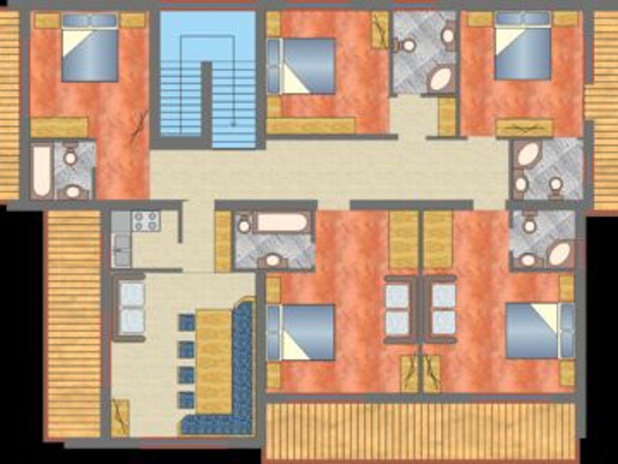 Das 105 m² Apartment befindet sich im 1ten Stock und bietet ein gemütliches Wohnzimmer mit SAT-TV, sowie eine voll ausgestattete Küche. Die 4 Badezimmer verfügen über 2xDusche, 2xWanne+4xWC. Die 4 Super-king size Betten+das Schlafsofa laden zum Entspannen in ruhiger Umgebung ein. Genieß tollen Blick von den 3 Balkons.