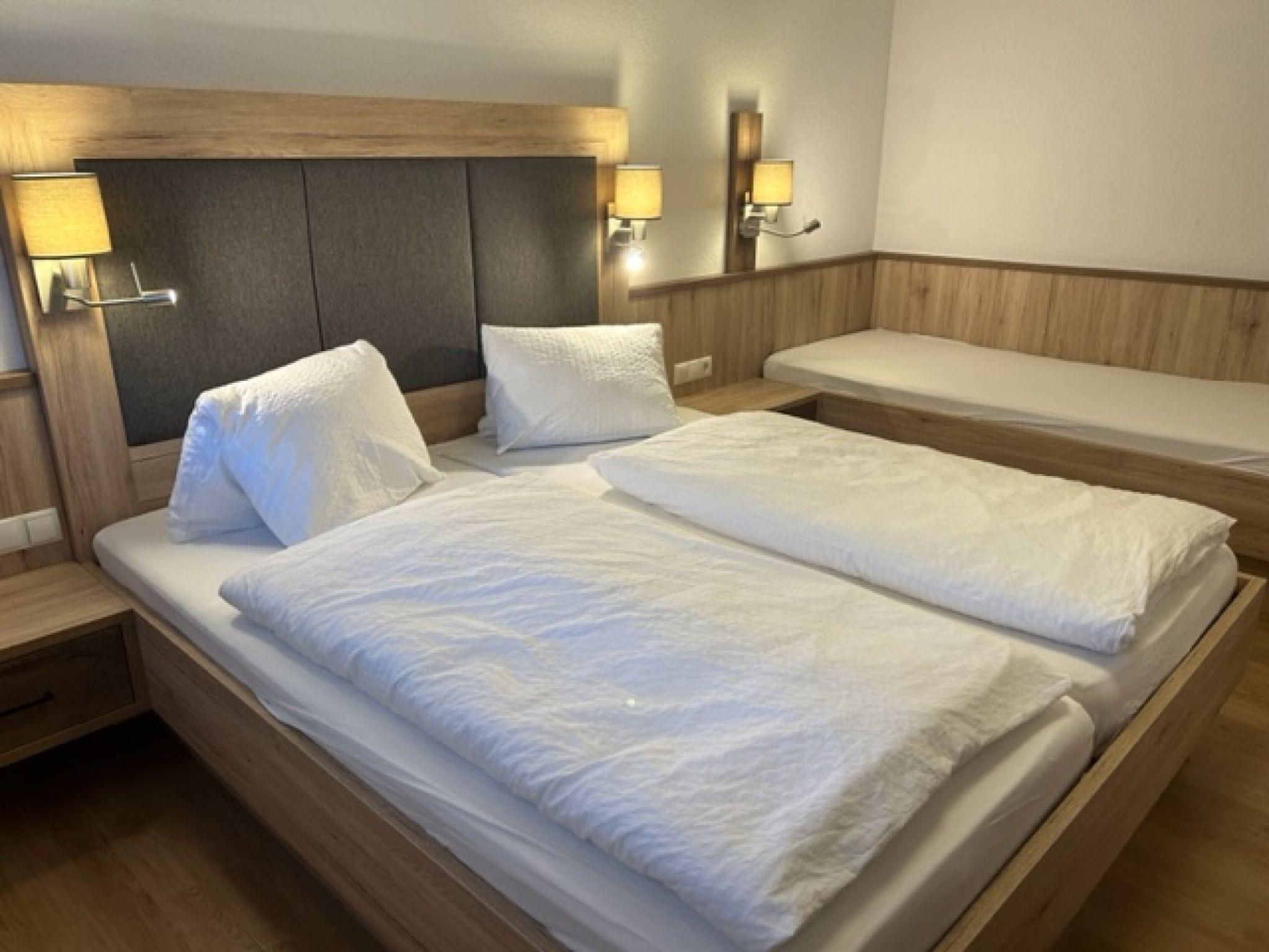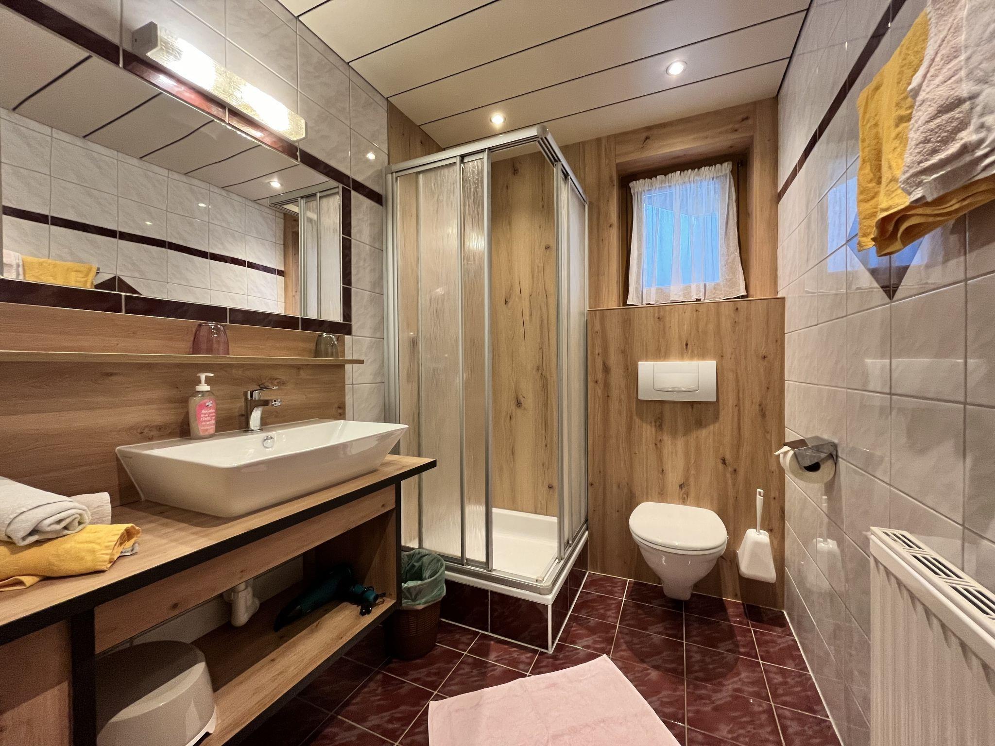 "Moosbichl", 4-room apartment 100 m2, on the ground floor. Practical furnishings: living/dining room with dining table and satellite TV. 3 rooms, each room with 1 bed, 1 double bed and shower/WC. Small kitchen (oven, dishwasher, 4 ceramic glass hob hotplates, kettle, microwave, electric coffee machine). Oil heating. Carpet. Panoramic view. Facilities: children's high chair, baby cot for up to 2 year olds (extra). Internet (WiFi, free). Please note: non-smokers only.