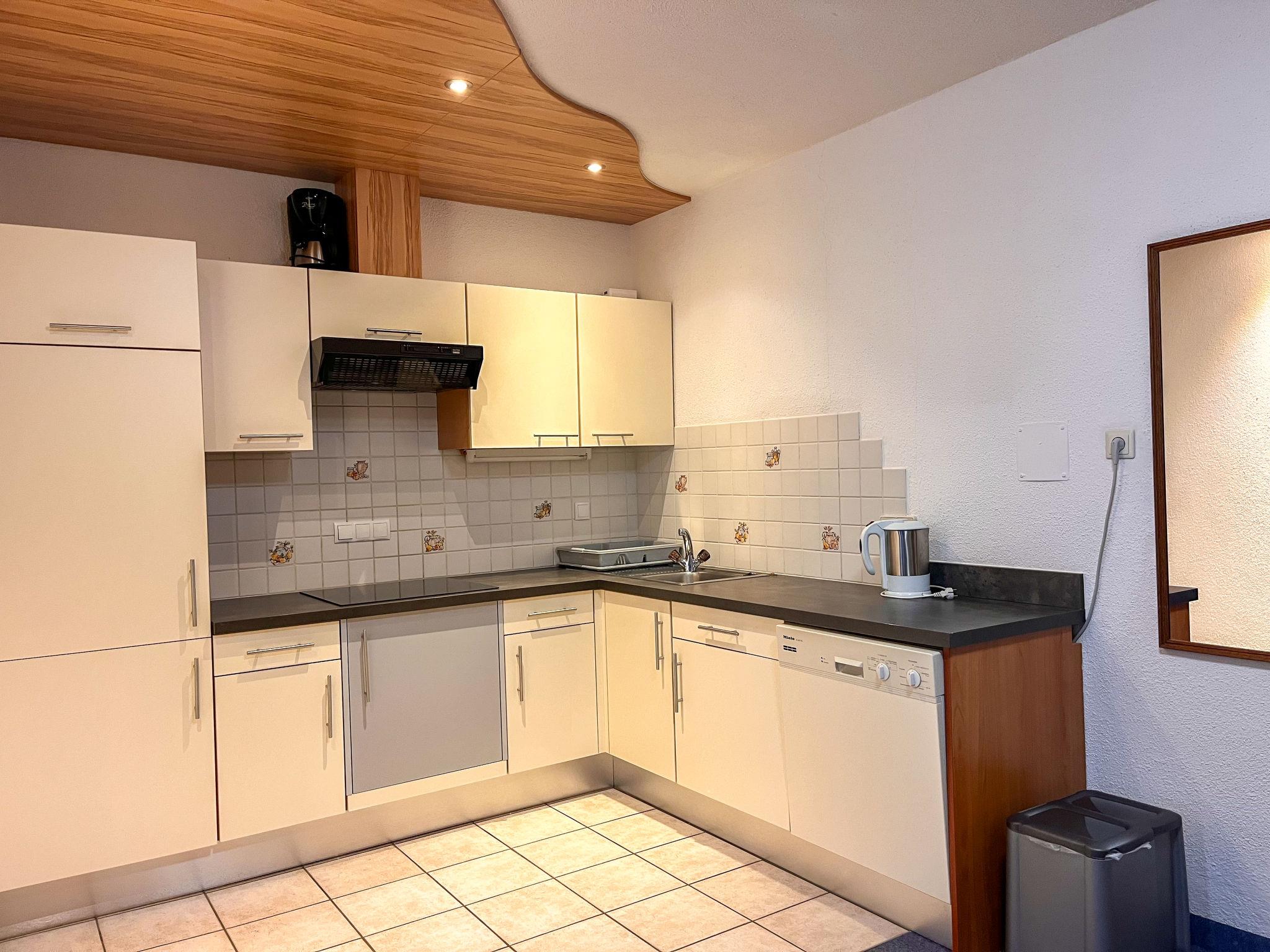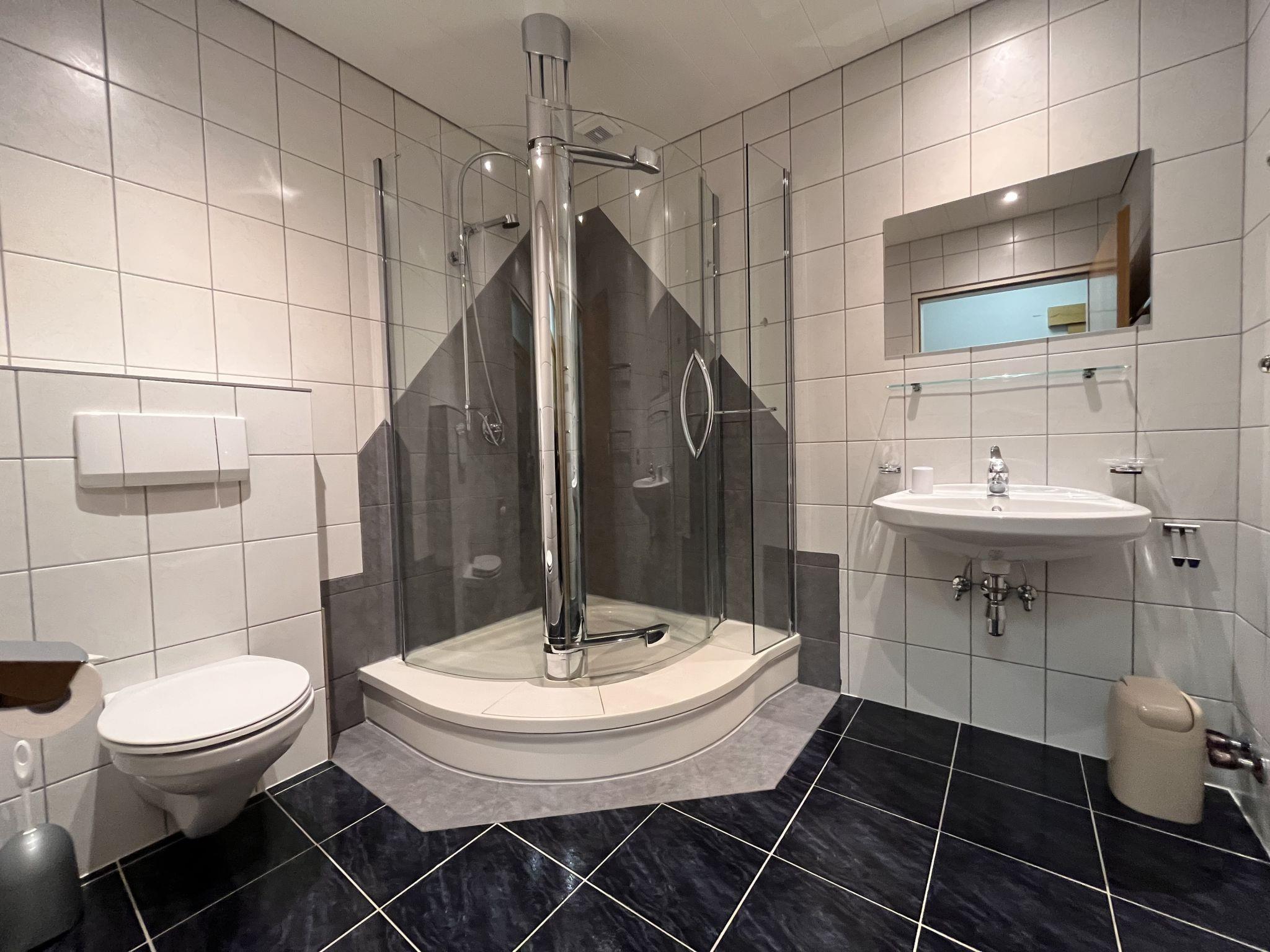 "Wildmoos", 4-room apartment 100 m2, lower ground floor. Practical furnishings: living/sleeping room with 1 bed, dining table, satellite TV and radio. 1 room with 1 double bed and shower/WC. 1 room with 2 beds. 1 room with 1 bed and 1 double bed. Kitchenette (dishwasher, 4 ceramic glass hob hotplates, toaster, microwave, electric coffee machine). Shower/WC, sep. WC. Underfloor heating. Facilities: safe. Internet (WiFi, free). Please note: non-smokers only. Private entrance. Note: two rooms have basement windows (no view).