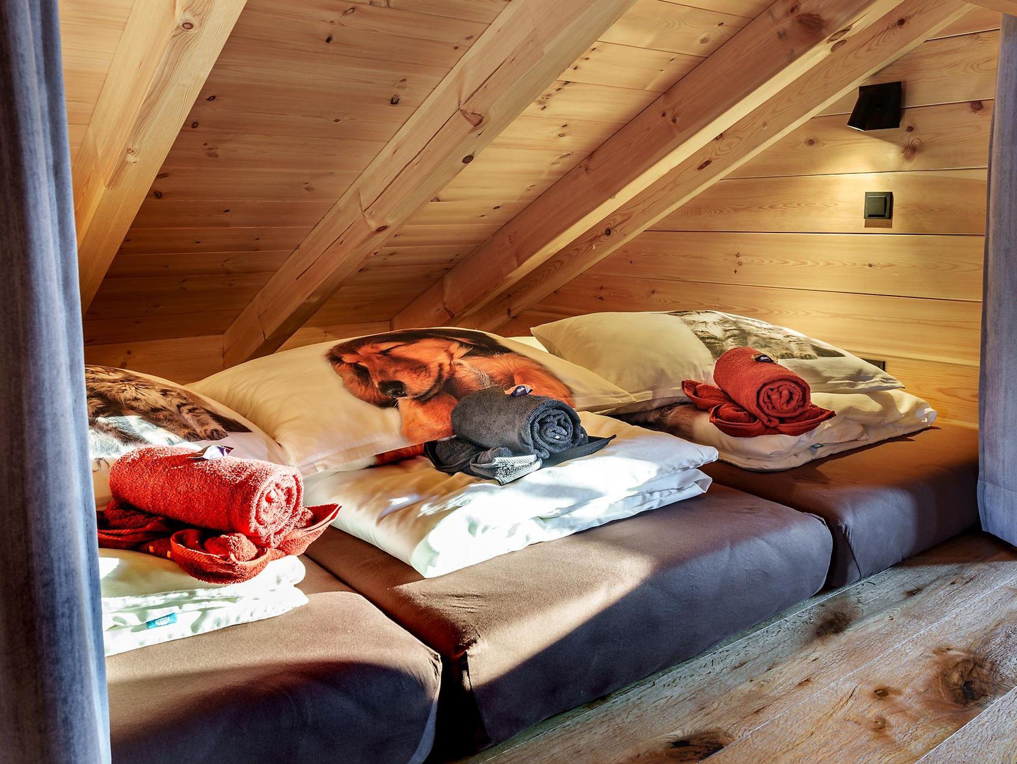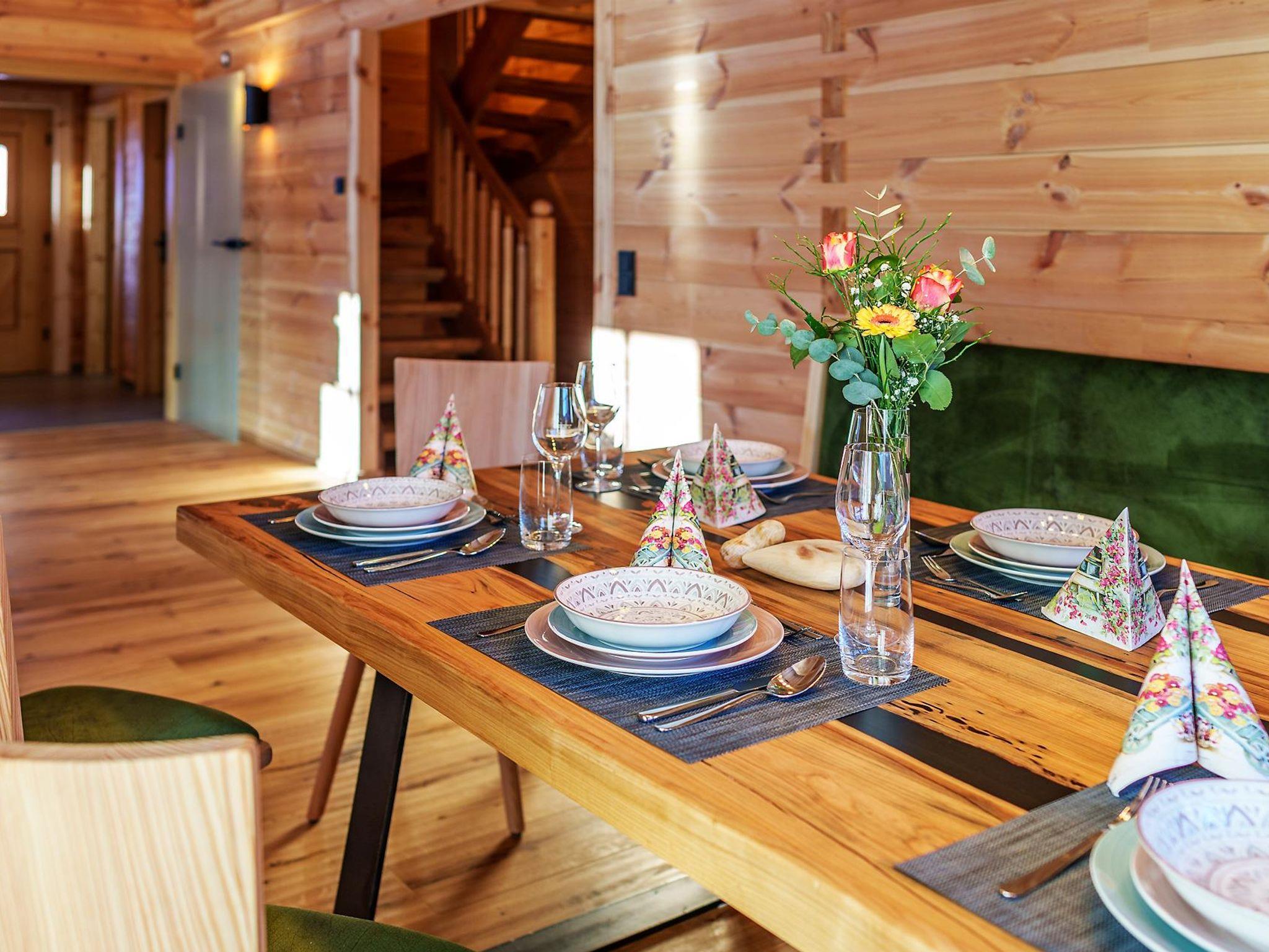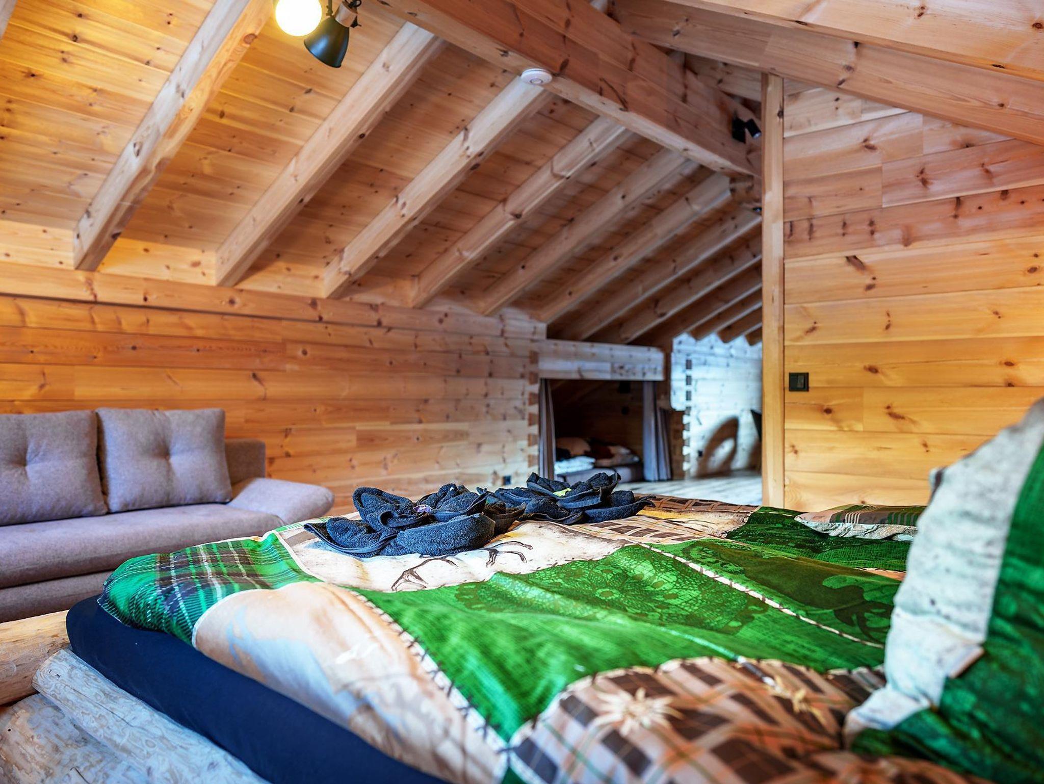 Unser Chalet bietet auf 130 m² Wohnfläche gemütlich Platz für bis zu 8 Personen. Neben 3 Schlafzimmern gibt es einen gemütlichen Wohnbereich mit vollausgestatteter Küche, Essecke, Couch und Holzofen sowie Bad mit Dusche, WC.