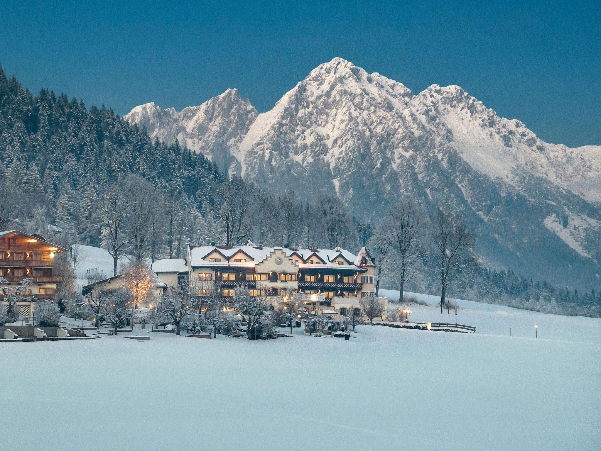 Mitten im Grünen und fernab der großen Sta¨dte liegt das Hotel AlpenSchlössl auf einer malerischen Hochebene in So¨ll am Wilden Kaiser in Tirol. Umgeben von unberu¨hrter Natur und umrahmt von sonnenbeschienener Landschaft und stillen Wa¨ldern ist unser familiengefu¨hrtes 4-Sterne-Hotel ein Refugium der Ruhe inmitten der Tiroler Bergwelt.