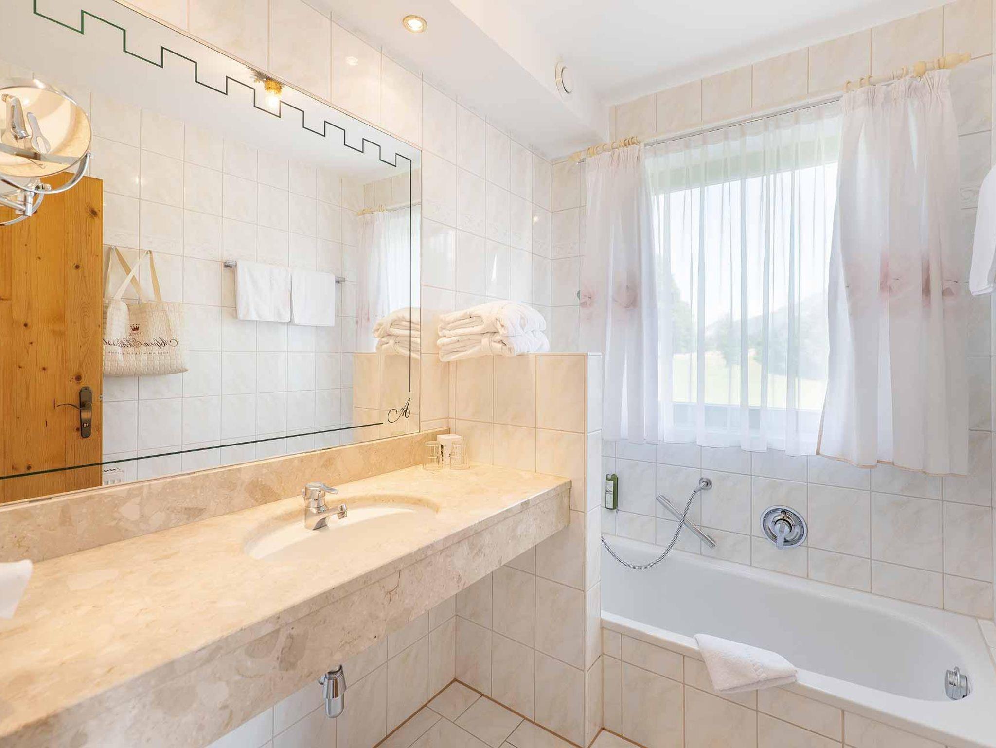 Wir bieten kostenfreies WLAN, SAT-TV mit Fernsehprogramm, Telefon, Radio, Zimmersafe, Schlössltasche mit Saunatüchern und Wellness-Slippern sowie kuschelige Bademäntel für Ihre Urlaubstage im AlpenSchlössl.