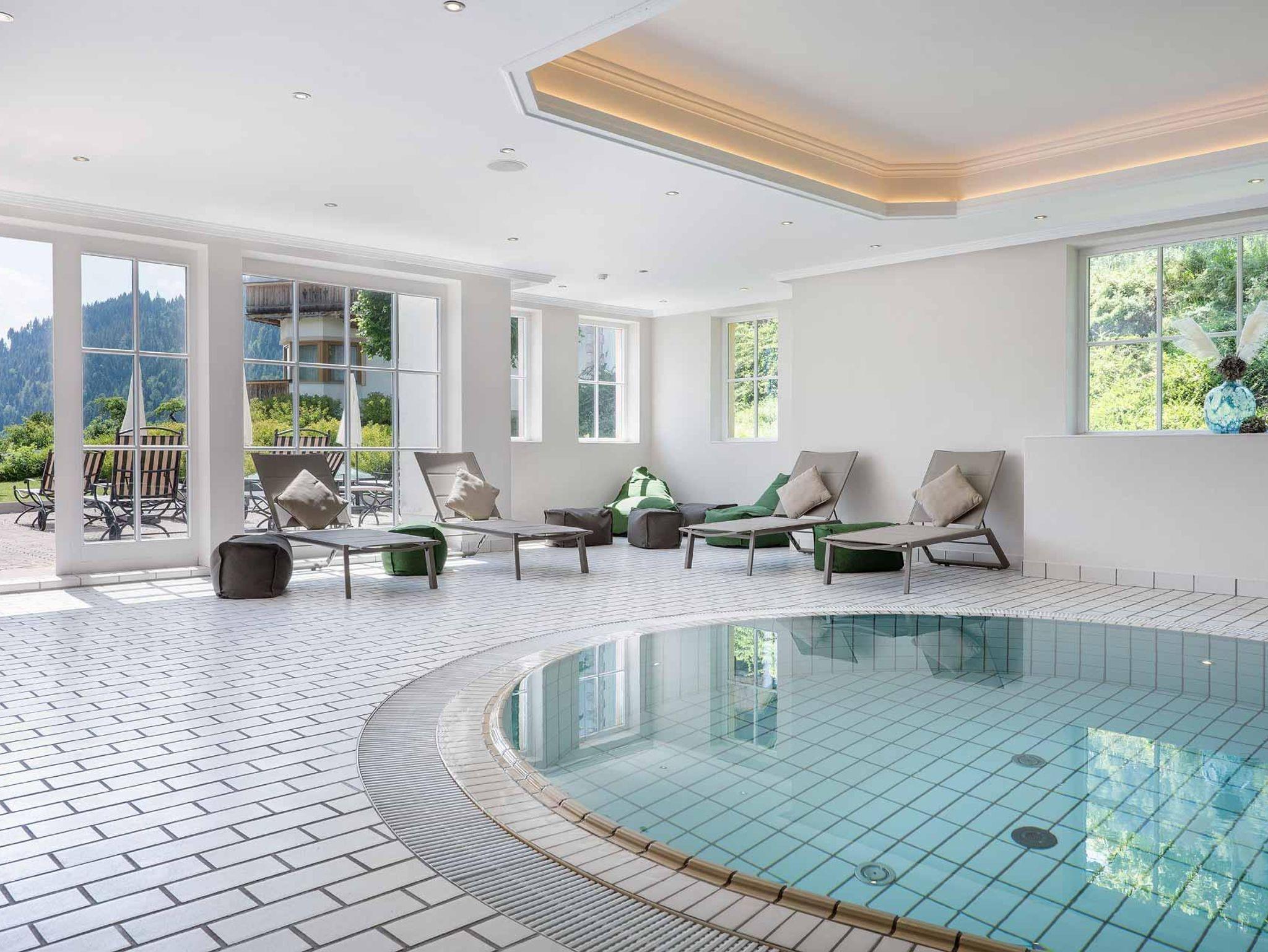 Während Ihres Aufenthalts haben Sie freien Zugang zu unserem Wellnessbereich mit Hallenbad, Sauna, Sanarium, Dampfbad, Regenbogen Dusche, Infrarotkabine, Ruheräume, geräumigen Ruhekojen, Freibad im Schlösslgarten (Sommer).