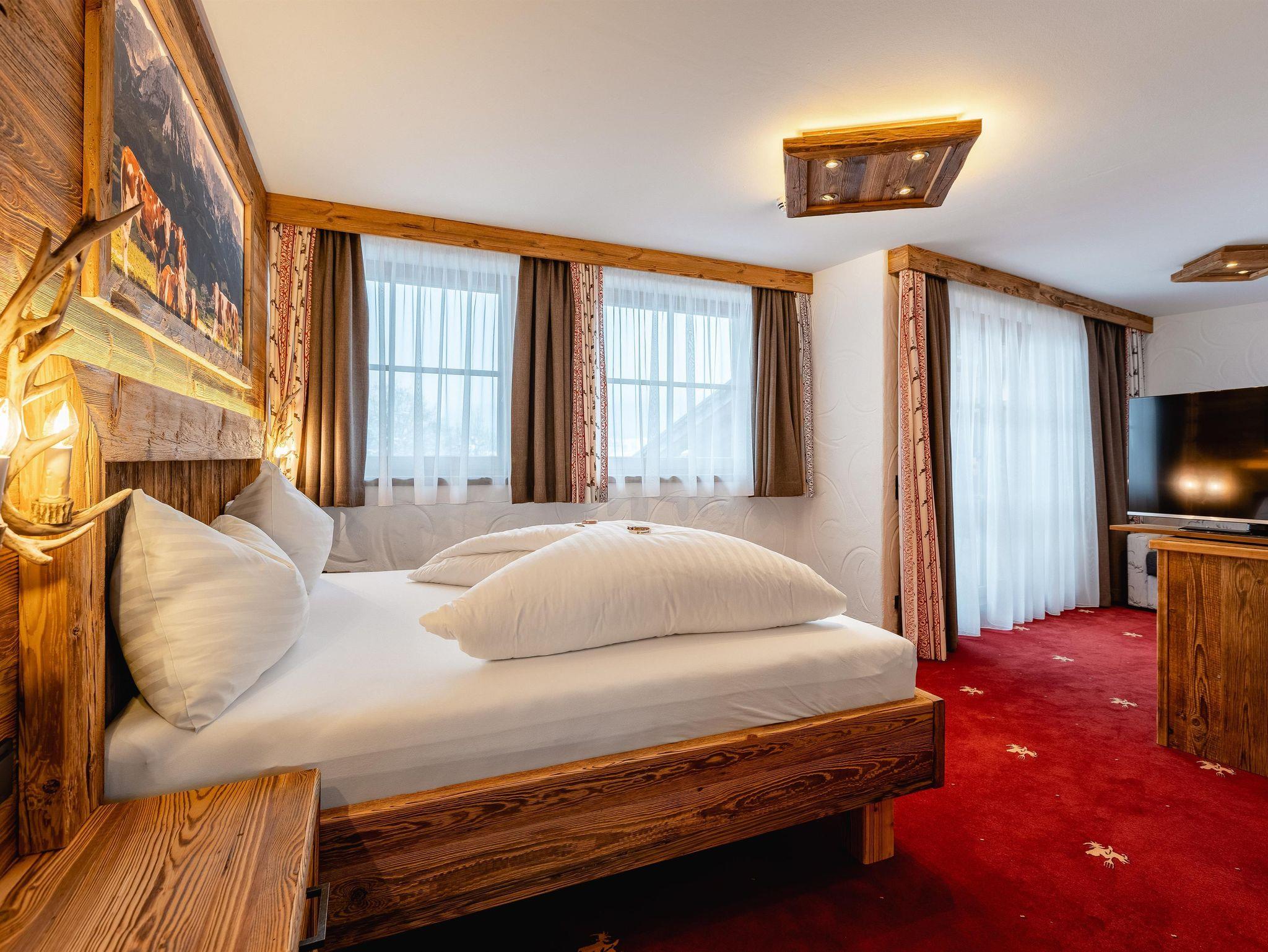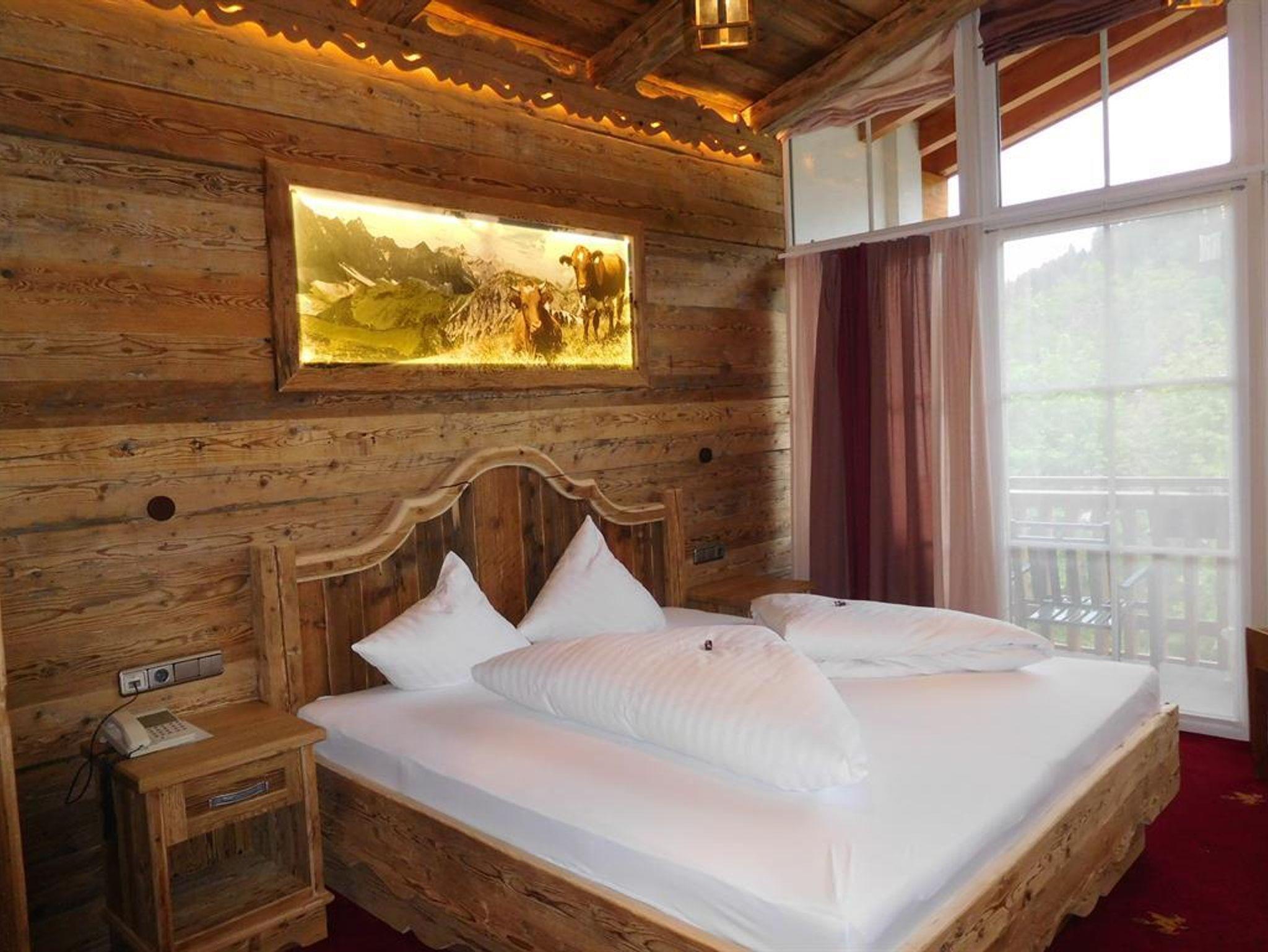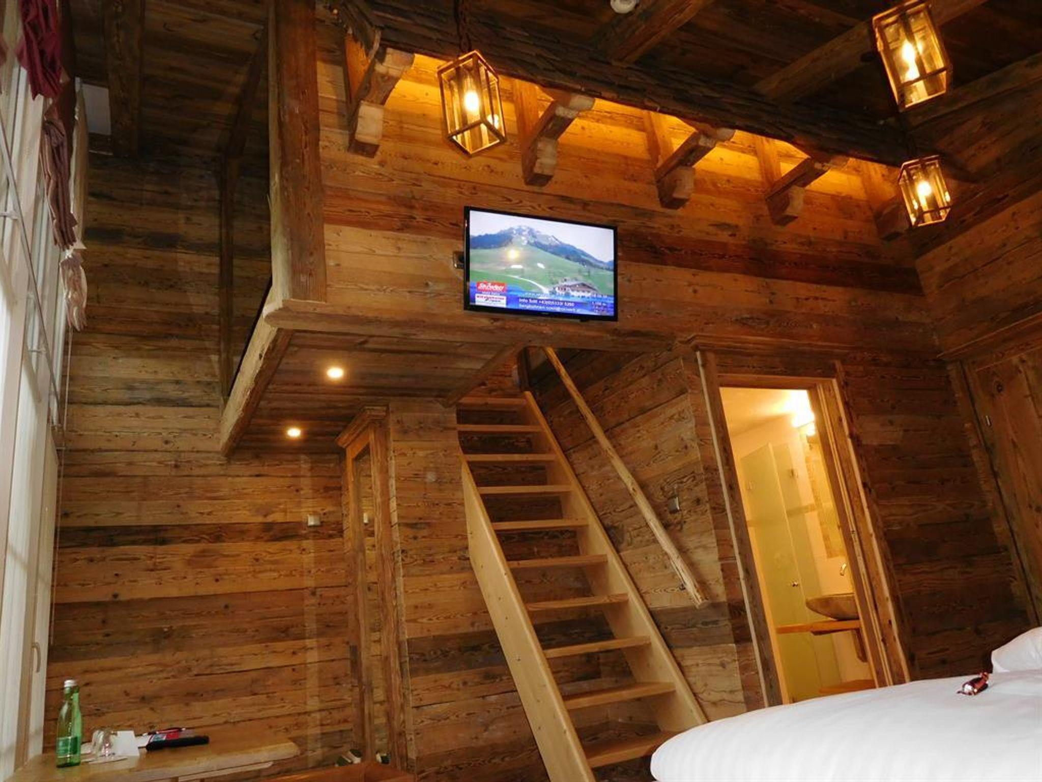 NEU ab Sommer 2016: Almkammer Hexenblick rustikal eingerichtetes Familienzimmer (ca. 25m²), die Kinder schlafen im Halbstock darüber im Baumhausstil, der über eine Holzleiter zur erreichen ist mit Balkon, Badezimmer mit Dusche & WC (getrennt), Haarfön, Zimmersafe, 2x Flat-TV, Telefon