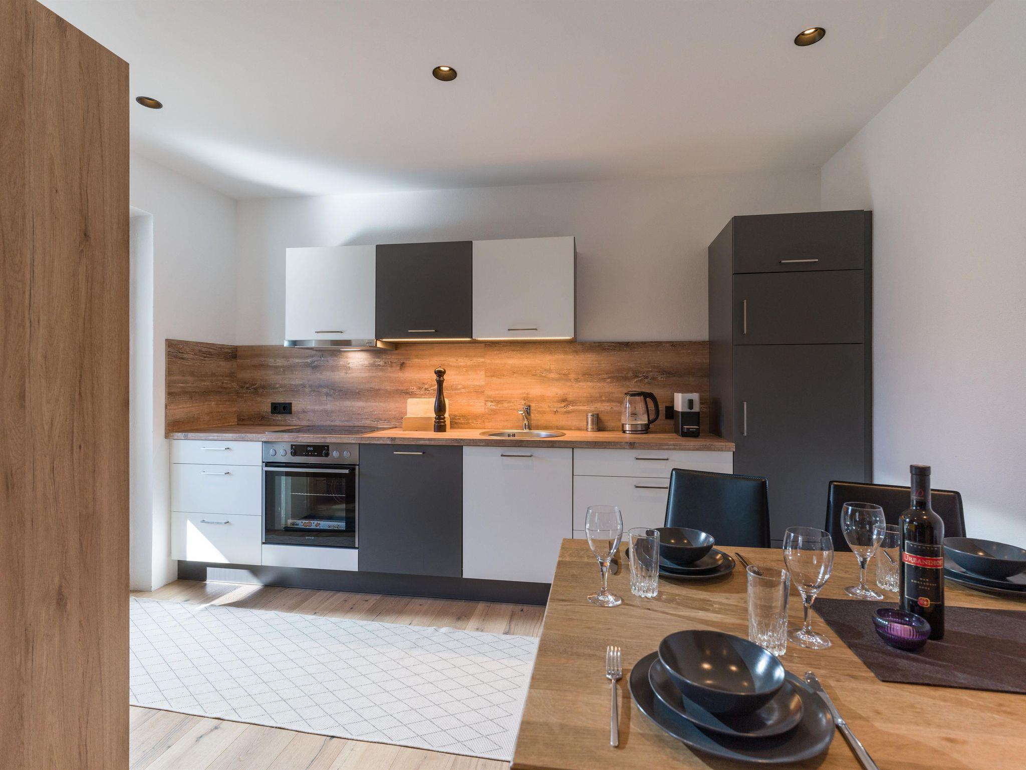 Das Appartement ist neu und modern, alles ist sehr sauber und in einwandfreiem Zustand. Das Fahrzeug bekommt einen eigenen Car-Port und steht auch bei schlechtem Wetter sicher und geschützt. Es gibt Unterstellmöglichkeiten für Fahrräder oder Ski und Schlitten. Das Objekt befindet sich oberhalb einer frequentiert befahrenen Landstraße, das sollte man vorab bedenken, die Fenster und die Tür sind aber so dicht, dass man im geschlossenen Zustand gar nichts hört. Vor dem Appartement befindet sich eine Terrasse, die genügend Sitzgelegenheiten und einen Sonnenplatz bietet, auch ein Grill ist vorhanden, sowie ein großer Sonnenschirm. Die Ausstattung ist fast komplett, wir empfehlen dem Vermieter noch einen Toaster und eine normale Kaffeemaschine anzuschaffen, diese Geräte fehlten leider, die Kapsel-Kaffeemaschine ist bei hohem Kaffeekonsum ehr unpraktisch. Die Vermieter sind sehr nett und helfen bei allen Fragen und geben auch gute Tipps für Ausflüge und sonstige Möglichkeiten. Man kann sich hier einfach willkommen und gut aufgehoben fühlen.