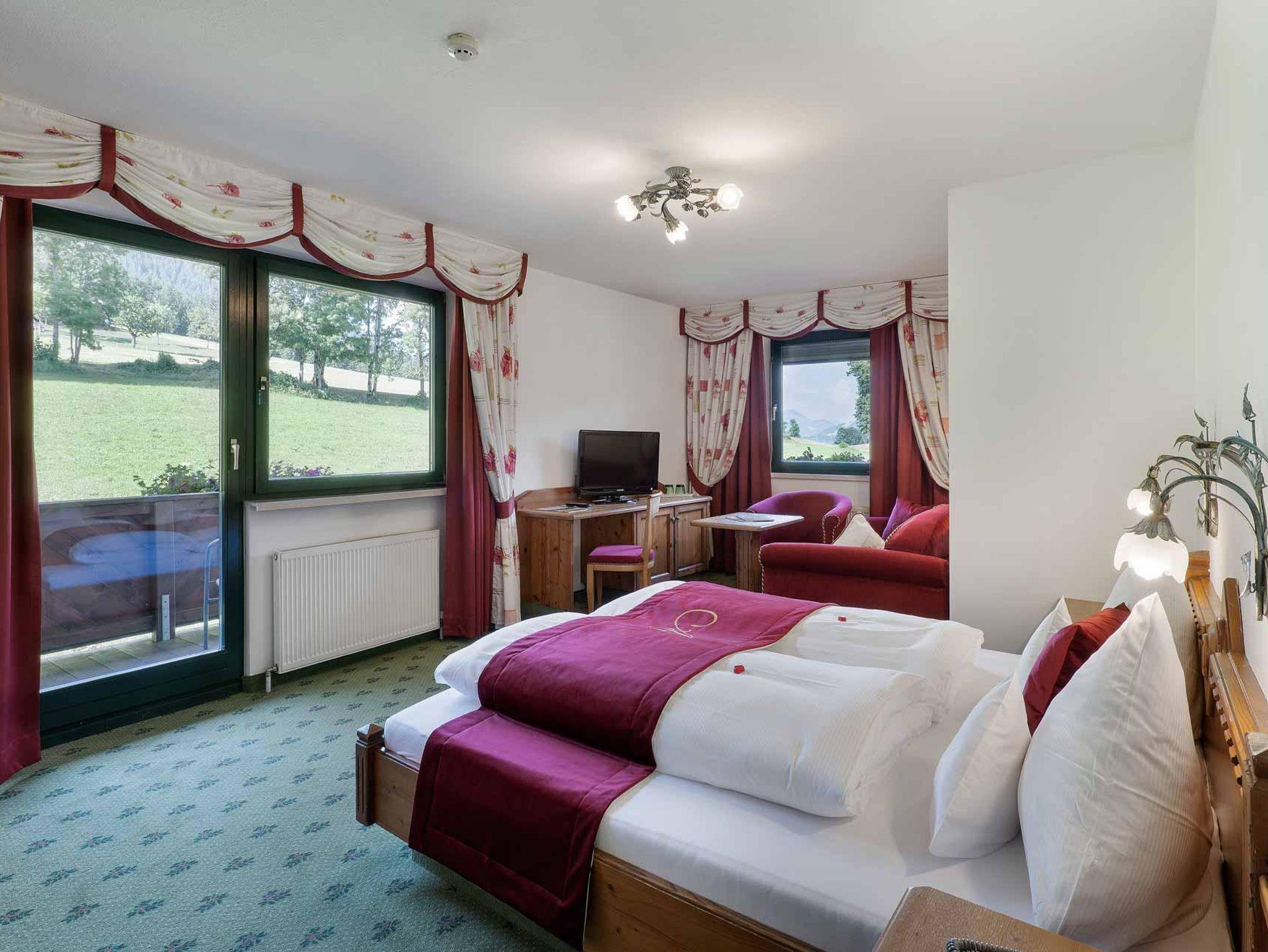 Von unserem südseitig ausgerichteten Zimmer genießen Sie Ruhe und den bezaubernden Blick auf Tirols Aussichtsberg - die Hohe Salve sowie den Schlösslgarten. Lassen Sie den Alltag hinter sich und entspannen Sie in Ihrem gemütlichen Familienzimmer.