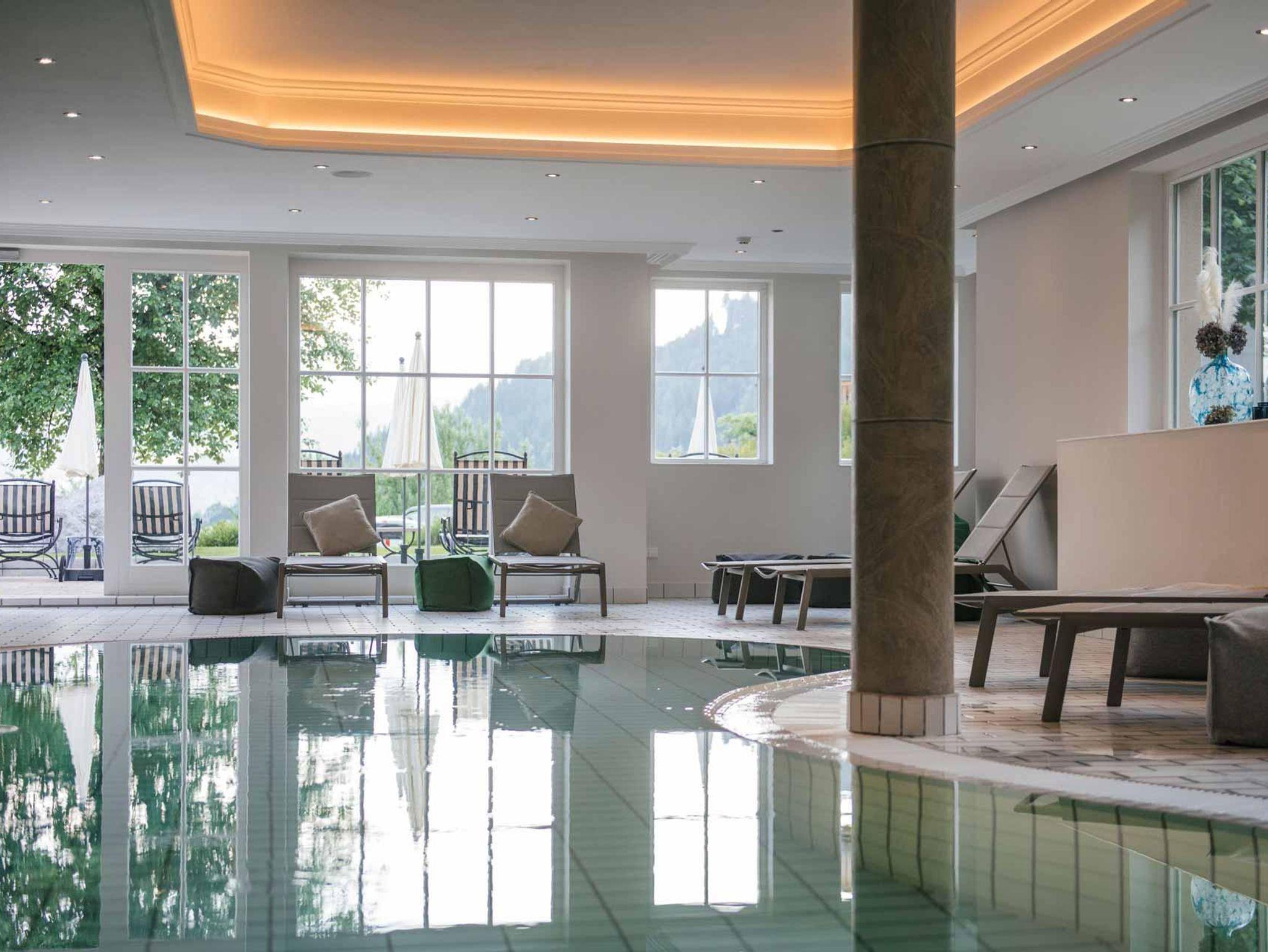 Während Ihres Aufenthalts haben Sie freien Zugang zu unserem Wellnessbereich mit Hallenbad, Sauna, Sanarium, Dampfbad, Regenbogen Dusche, Infrarotkabine, Ruheräume, geräumigen Ruhekojen, Freibad im Schlösslgarten (Sommer).