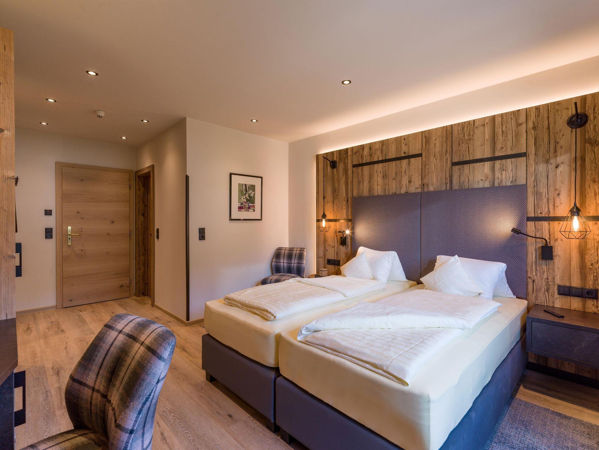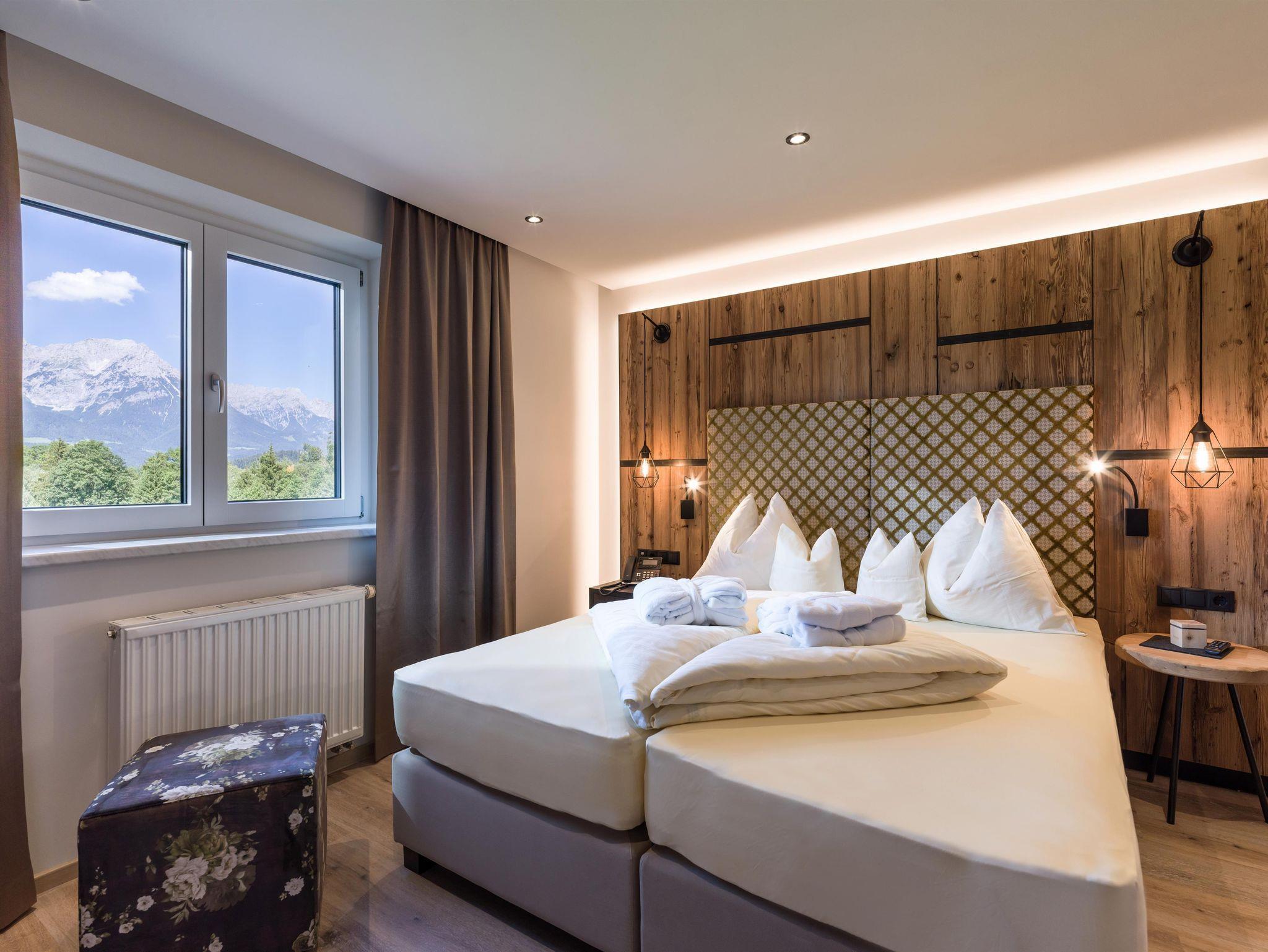 Unser Doppelzimmer Bergblick (ca. 22m²) ist komfortabel ausgestattet mit DU/WC, Föhn, Safe,