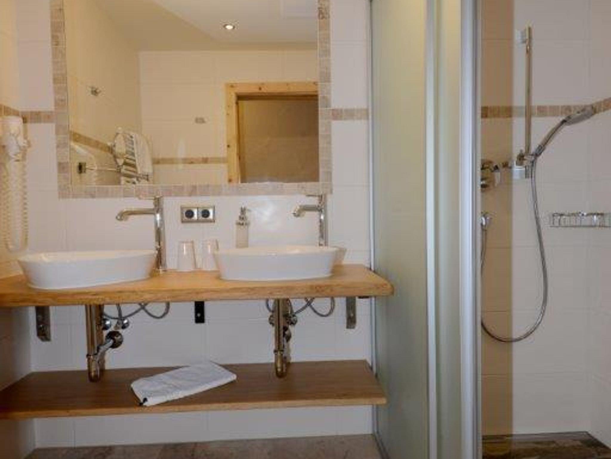 neues geräumiges ZIRBEN-Doppelzimmer, mit Zusatzbett möglich Badezimmer mit Dusche und WC (getrennt), Haarfön, Zimmersafe, Flat-TV, Telefon, W-Lan