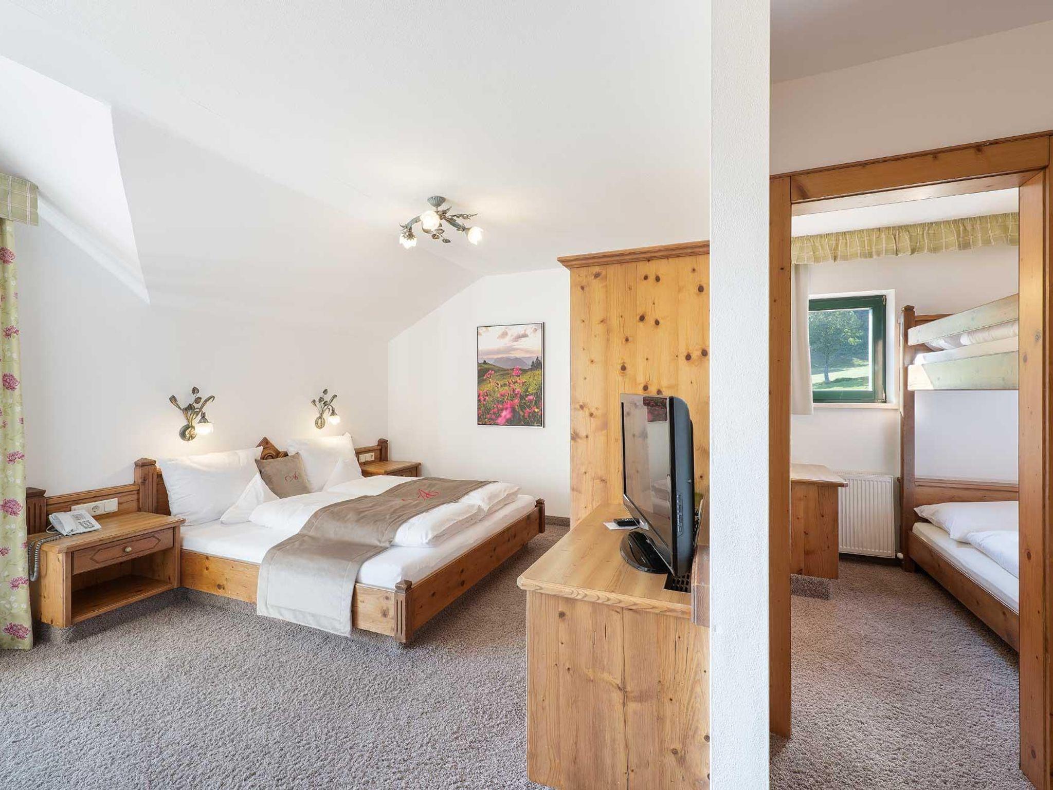 Ein gemu¨tliches Zimmer oder Suite in den Bergen beziehen unsere Ga¨ste im Hotel AlpenSchlössl. In jedem Fall kommen sie in den Genuss einer außergewo¨hnlich scho¨nen Gegend. Auch unseren herzlichen Schlo¨sslservice lassen wir ihnen immer zuteil werden, ob beim genussreichen Fru¨hstu¨ck auf der großzu¨gigen Sonnenterrasse, bei einem heiteren Gespra¨ch an der Rezeption oder bei einem edlen Tropfen an unserer Hotelbar.