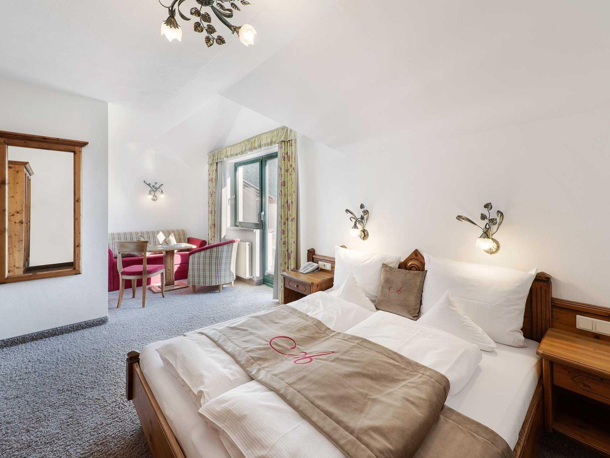 Ein gemu¨tliches Zimmer oder Suite in den Bergen beziehen unsere Ga¨ste im Hotel AlpenSchlössl. In jedem Fall kommen sie in den Genuss einer außergewo¨hnlich scho¨nen Gegend. Auch unseren herzlichen Schlo¨sslservice lassen wir ihnen immer zuteil werden, ob beim genussreichen Fru¨hstu¨ck auf der großzu¨gigen Sonnenterrasse, bei einem heiteren Gespra¨ch an der Rezeption oder bei einem edlen Tropfen an unserer Hotelbar.