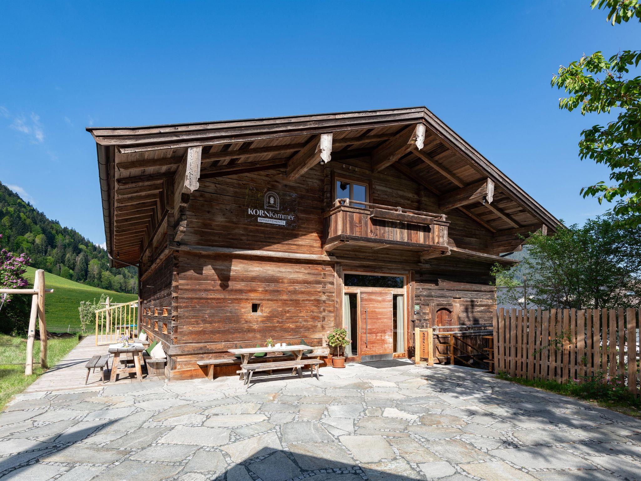 Genießen Sie die schönste Zeit des Jahres in der einzigartigen Kornkammer am Fuße der Hohen Salve, eingebettet in die majestätischen Tiroler Berge, umgeben und etwas versteckt von atemberaubender Natur. Die Kornkammer besticht durch ihre außergewöhnliche Architektur in einem über 500 Jahre alten Getreidekasten, der die Elemente von Glas, Altholz und modernen Designs auf unkonventionelle Weise verbindet – anders und einzigartig. Ein Haus mit Geschichte, ein Haus, das lebt, und ein Ort für besondere Wohlfühlmomente. Tauchen Sie ein in die Natur und die Kornkammer, lassen Sie sich inspirieren und genießen Sie einen unvergesslichen Urlaub. Die ruhige, aber zentrale Lage in der Nähe der Talstation der Hexenwasser-Gondel bietet reichlich Platz für Kinder und Erwachsene. Während die Kinder nach Herzenslust spielen und toben, können die Erwachsenen in entspannter Atmosphäre relaxen, die Aussicht genießen oder in Ruhe ein Buch lesen. Im Winter wird die Kornkammer zum Ski-In/Ski-Out-Paradies – schnallen Sie die Ski direkt vor der Haustür an