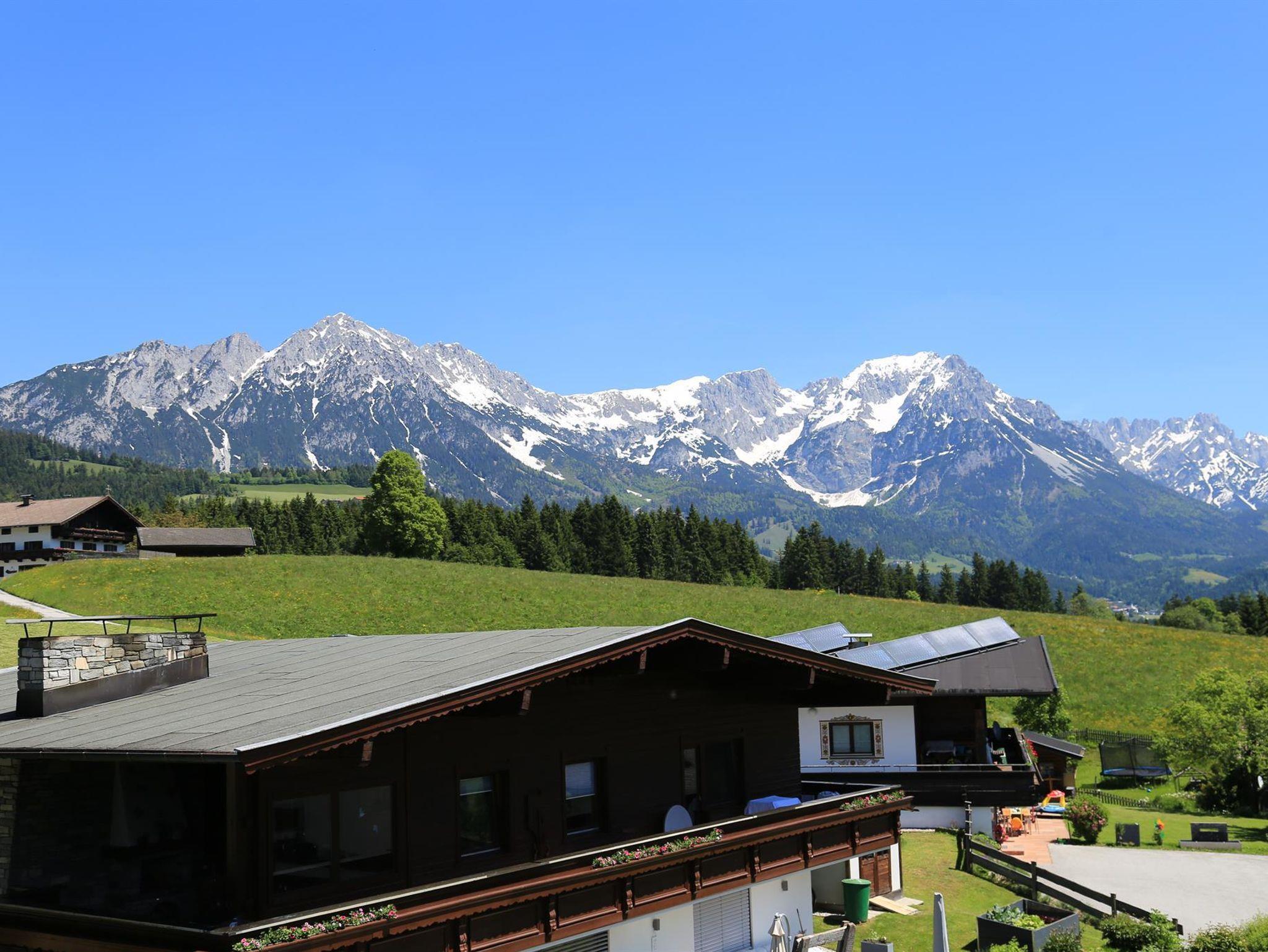 Unser neu gebautes Appartement, welches sich auch hervorragend als Singleappartement eignet, befindet sich auf einer Anhöhe von welcher aus man einen herrlichen Blick auf die Bergwelt Wilder Kaiser, den Bandstadl wo sich auch das bekannte Bergdoktorhaus befindet sowie das Skigebiet Hohe Salve genießen kann.