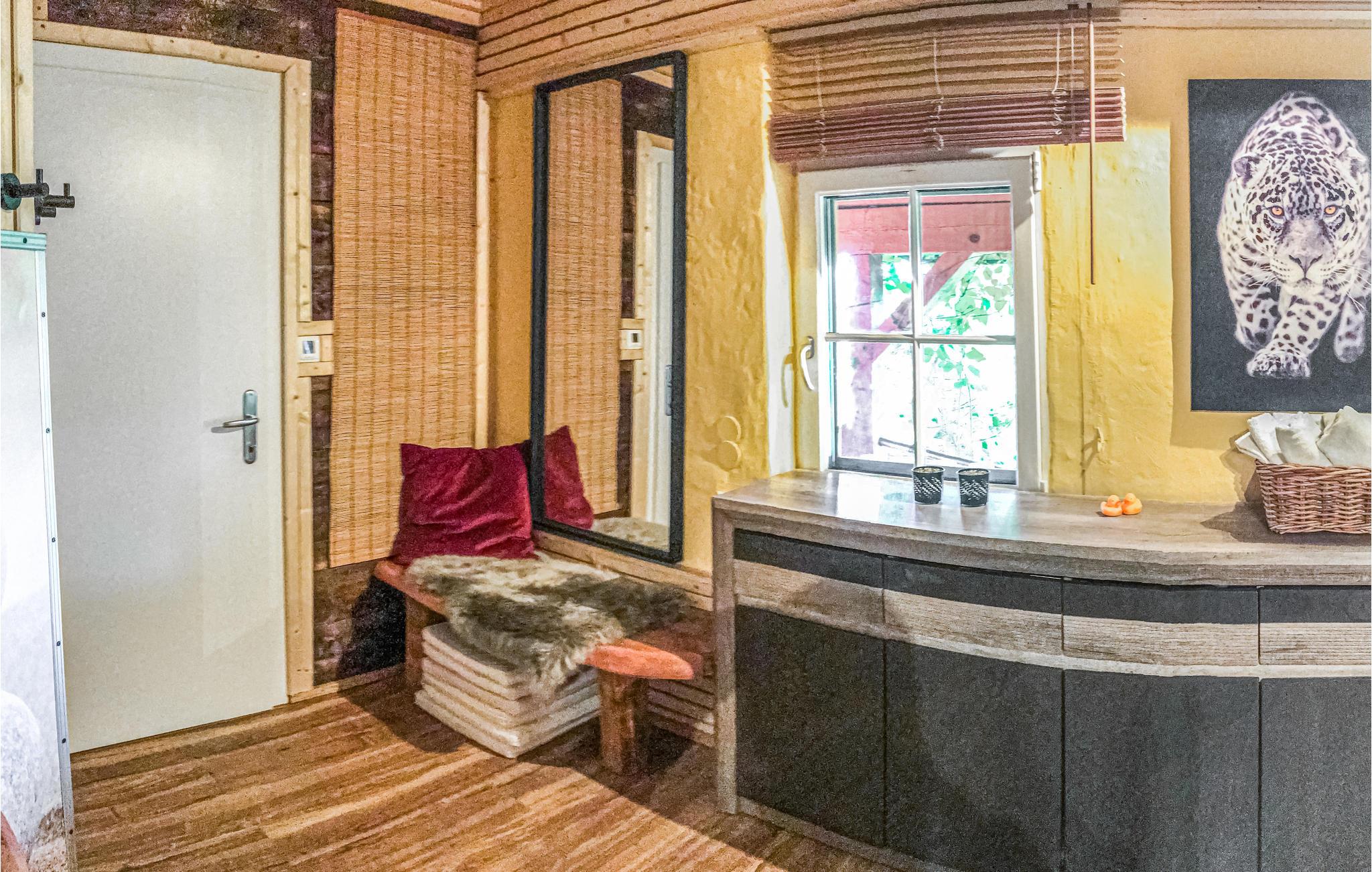 Med udsigt over Riegersburg Slot byder dette meget roligt beliggende kælderhus i den steiriske vulkanregion jer velkommen. Lad jer fortrylle af udsigten i en stilfuld, rustik atmosfære, og glæd jer til at slappe af i saunaen og nyde hyggelige aftener ved kakkelovnen. Gør det behageligt med en kop te i udestuen og nyd tiden sammen.